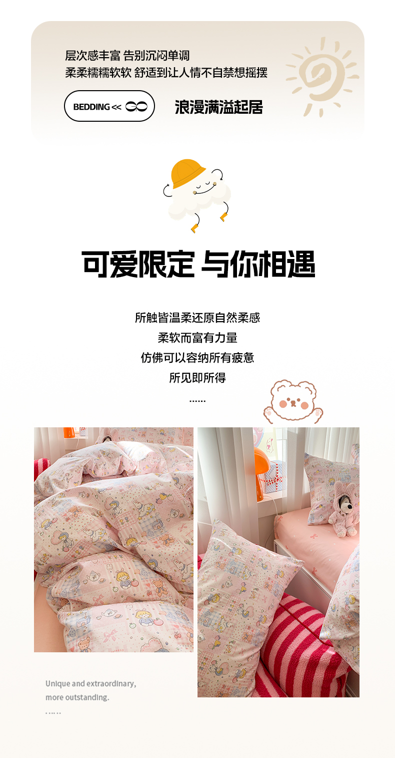 (总)澳萝拉 2023新款全棉印花四件套会员减5元,嗨迪诺,可爱多多,可可朵朵,兔兔莓莓,熊熊的面包,安绘里,豹纹棕熊,草莓花园,粉心小熊,简单生活,快乐星球,蓝心小熊,时尚熊,贪吃鲨,甜心花园,甜心小兔,童话镇,元气小熊,薄荷奶绿,黑糖乳酪,花语仙踪,秘密花园,暖时光,童趣园,野餐森林,元气花花,元气橘,云上花园,呆萌狗,古灵精怪,乖乖兔,好事发生,花朵兔兔,花园漫步,焦糖布丁,爵士汪,奇幻星球,糖果兔兔,甜甜圈,小确幸,小甜心,心动甜心,星际兔,游乐园,云朵兔兔,芝芝汪