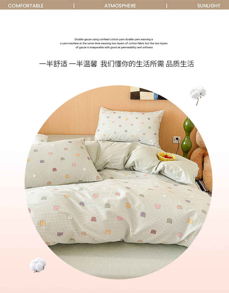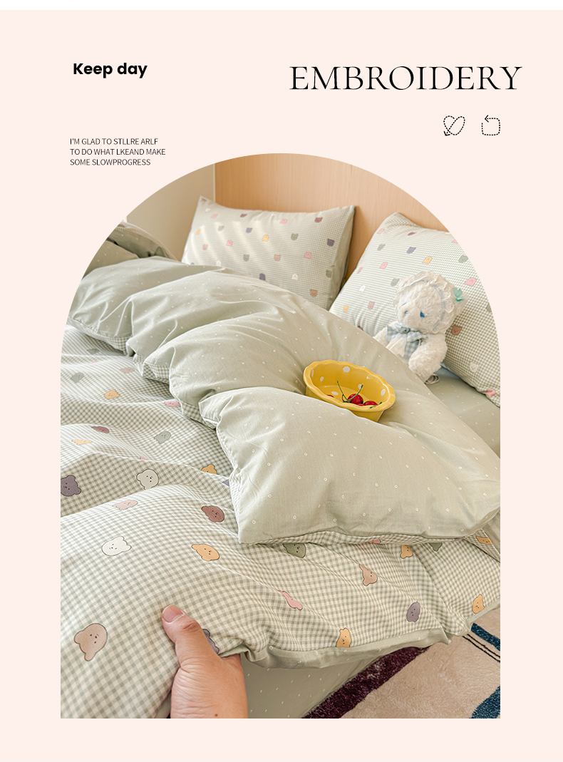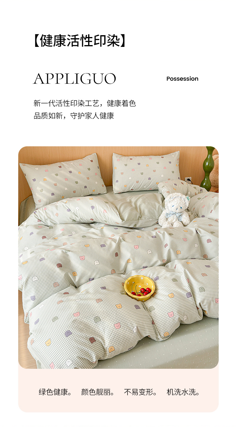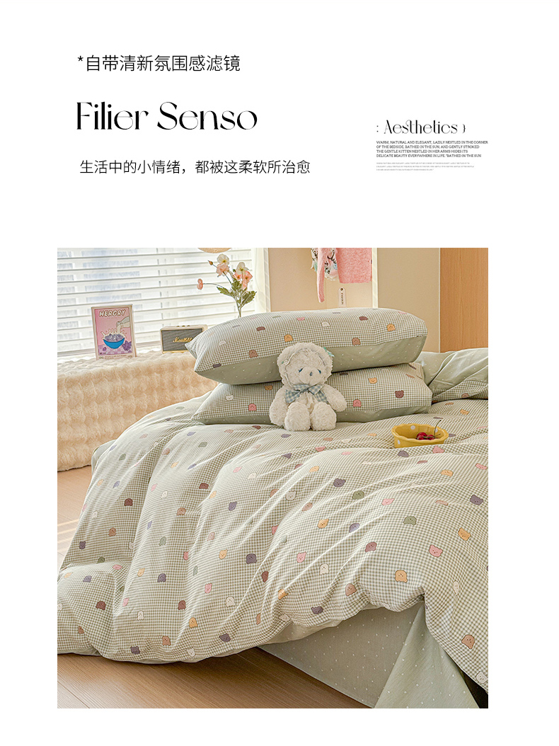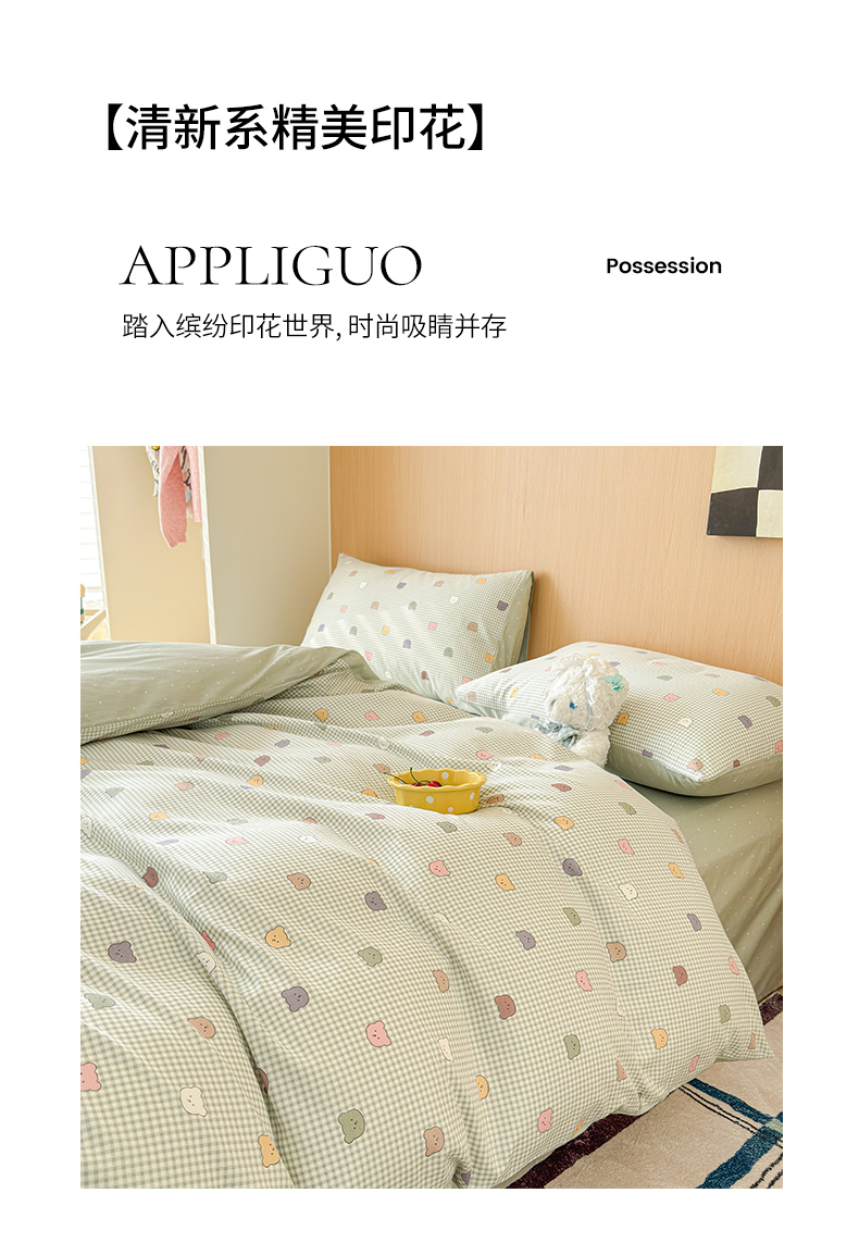 感遇全棉软萌清新四件套 饼干小熊