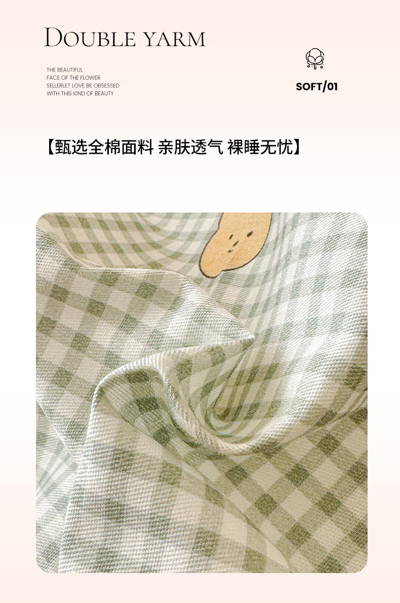 (总)感遇家纺 2025新款小清新甜系全棉四件套,百丽兔,波点小女孩,点点小狗,复古樱桃,格子草莓,格子樱桃,花间牧歌,灰条猫咪,奶绿,宁夏,森林小熊猫,甜心波点