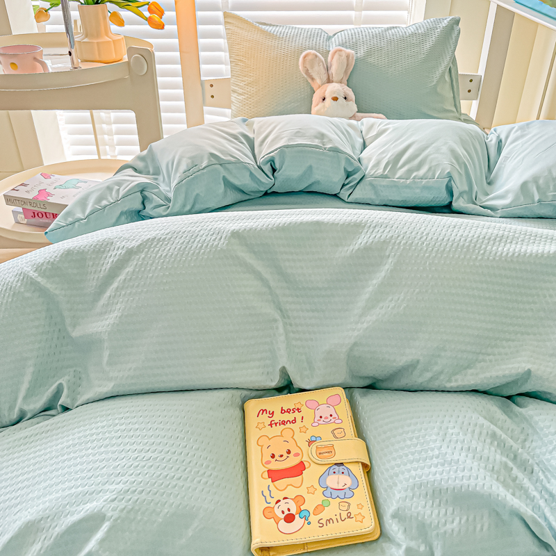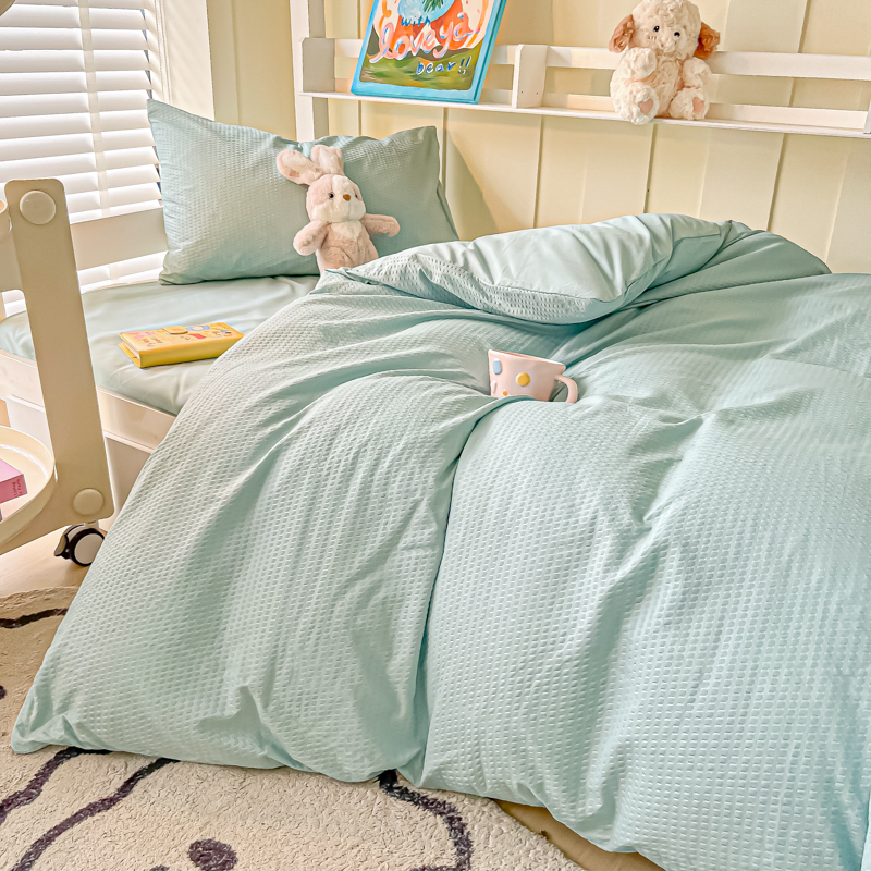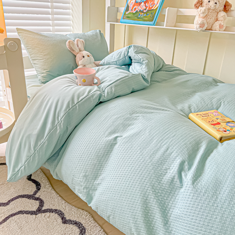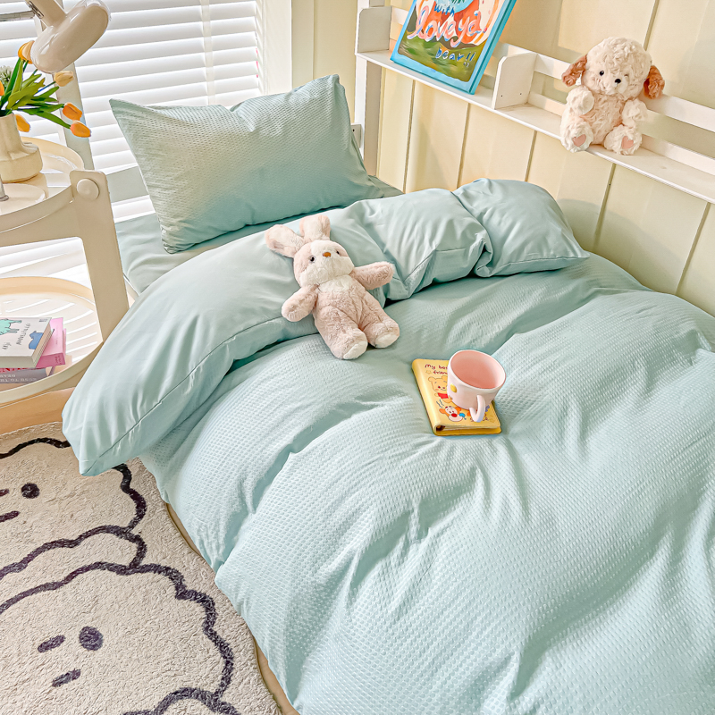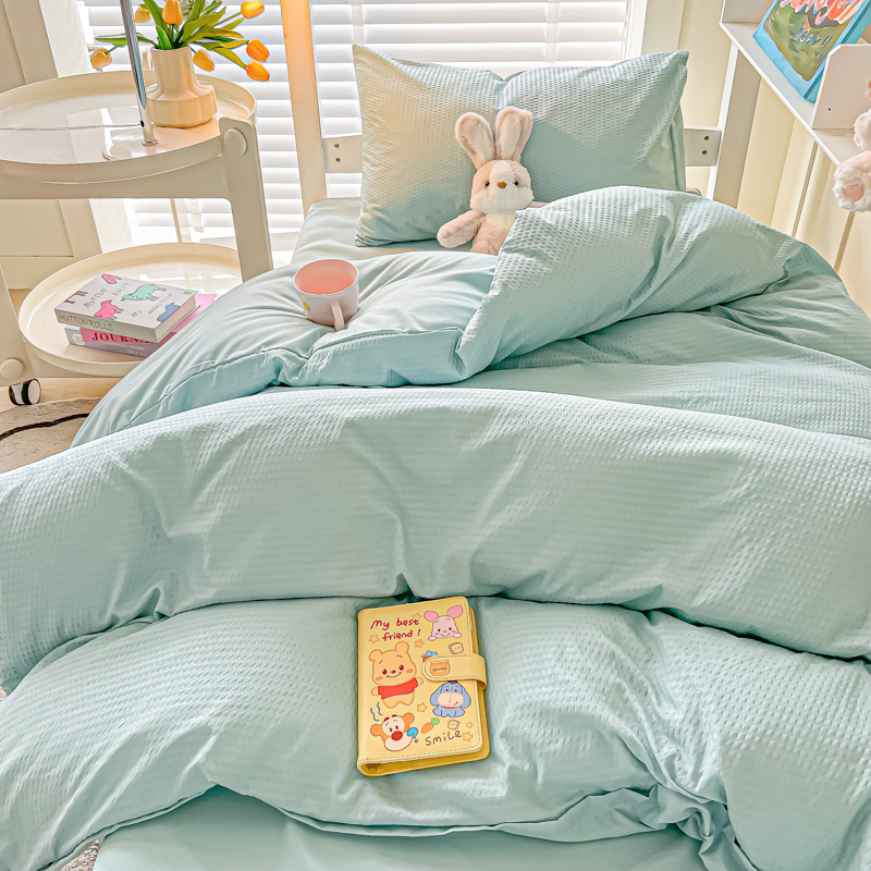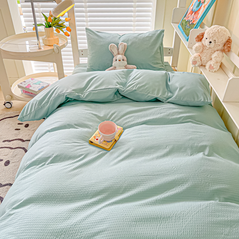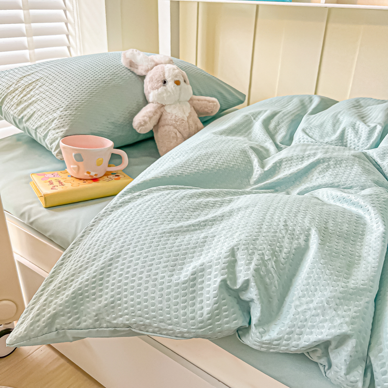 当前位置: 91家纺网 > 商品网购 > 床品套件 > 四件套 > 水洗棉四件套 > 悦织湾家纺 2025新款华夫格压泡亲肤学生宿舍三件套单人床轻奢时尚四件套 华夫格-湖水绿