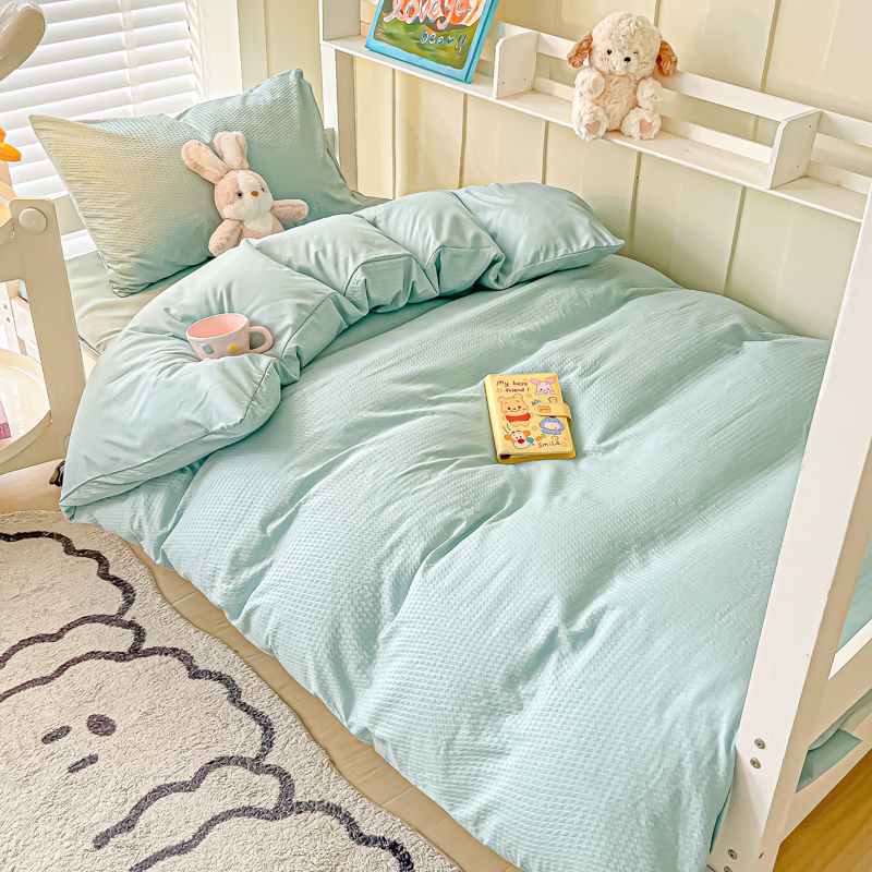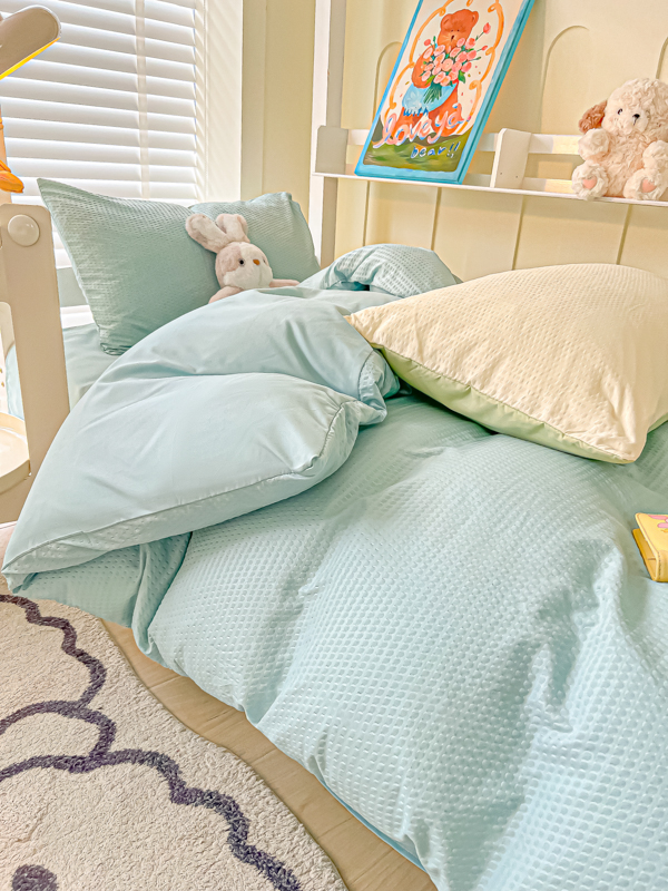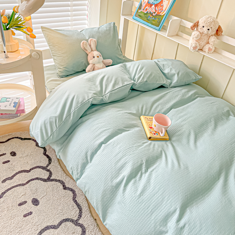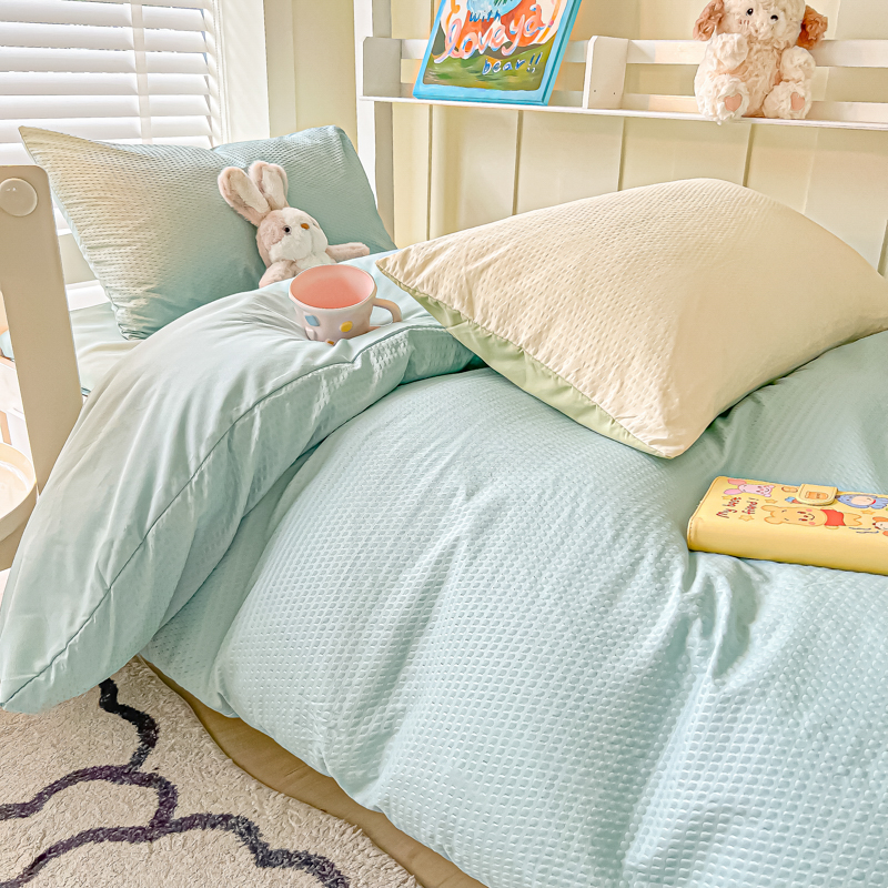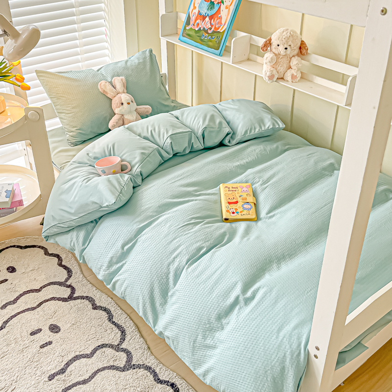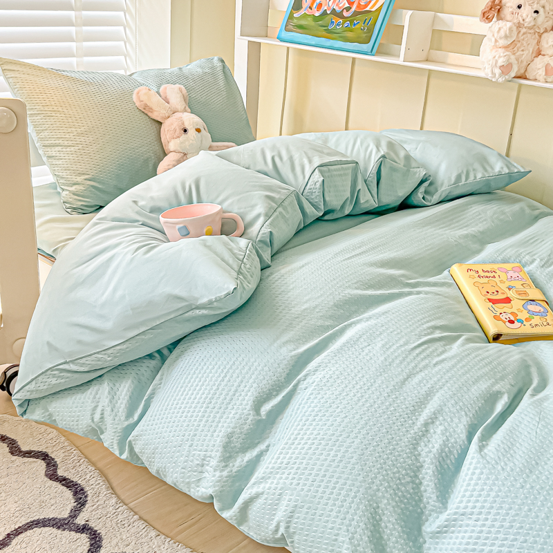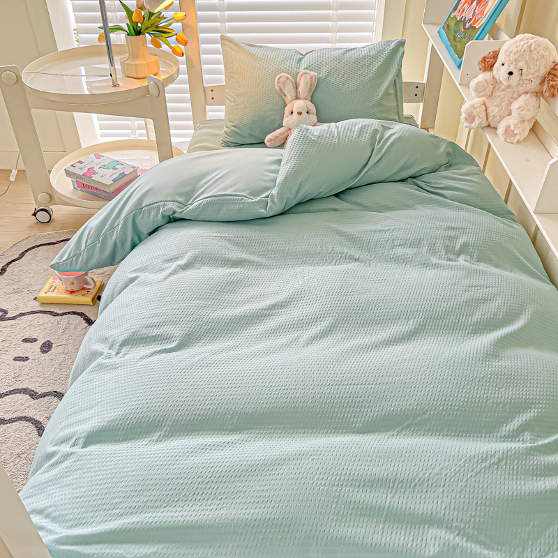当前位置: 91家纺网 > 商品网购 > 床品套件 > 四件套 > 水洗棉四件套 > 悦织湾家纺 2025新款华夫格压泡亲肤学生宿舍三件套单人床轻奢时尚四件套 华夫格-湖水绿