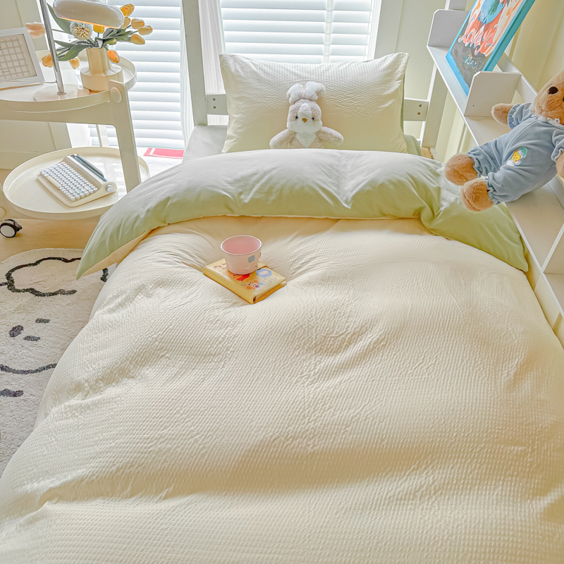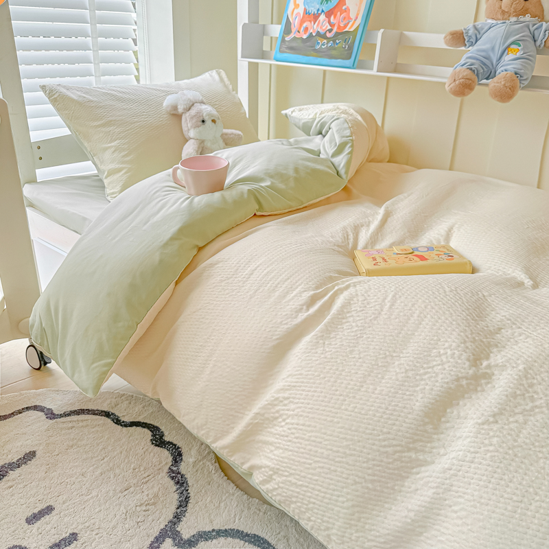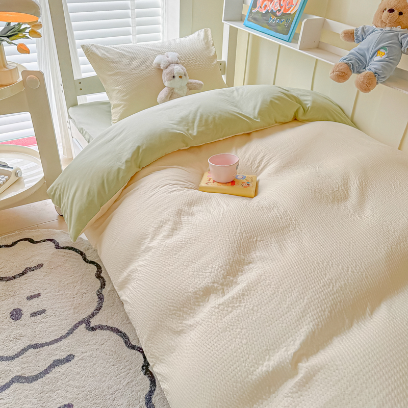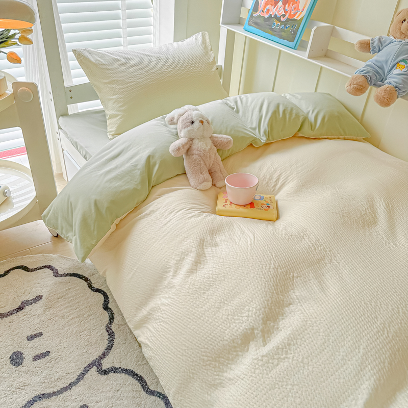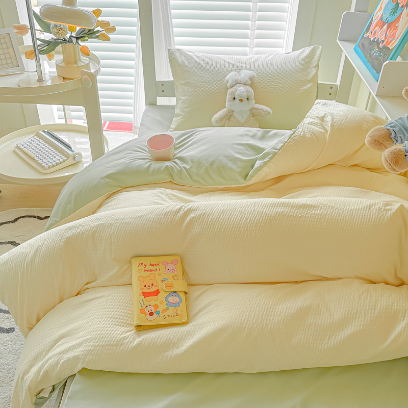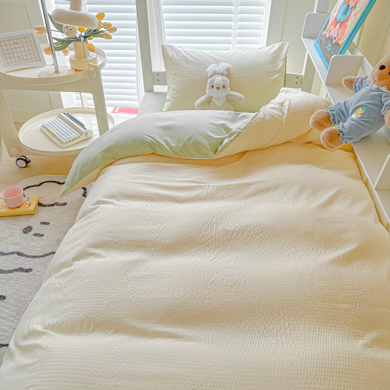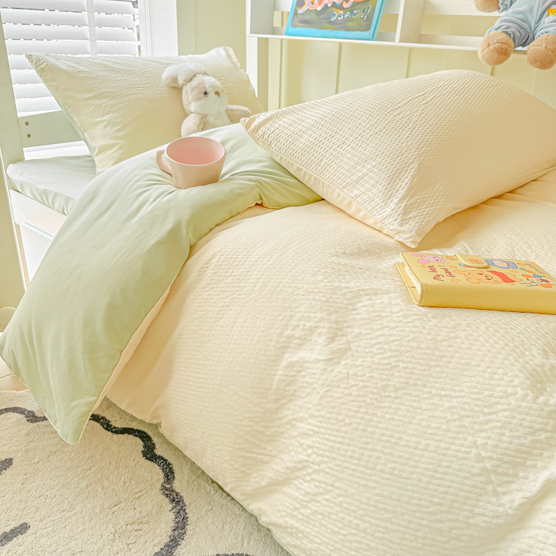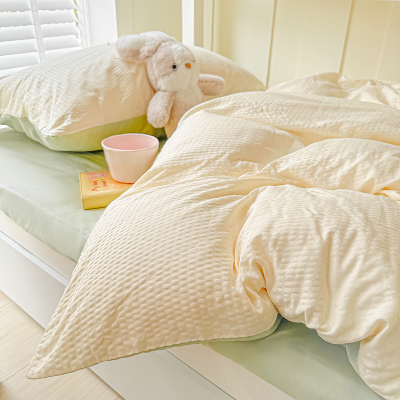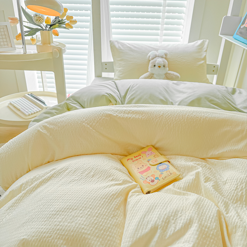 当前位置: 91家纺网 > 商品网购 > 床品套件 > 四件套 > 水洗棉四件套 > 悦织湾家纺 2025新款华夫格压泡亲肤学生宿舍三件套单人床轻奢时尚四件套 华夫格压泡-芝士+果绿
