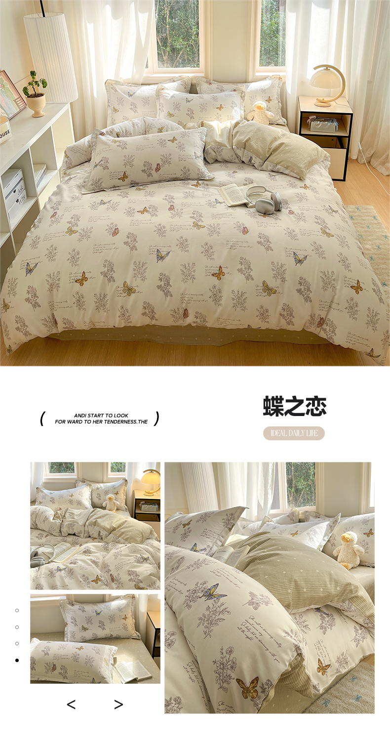 当前位置: 91家纺网 > 商品网购 > 床品套件 > 四件套 > 全棉普通四件套 > 涵宸家纺 2025新款全棉印花四件套 F蝶之恋
