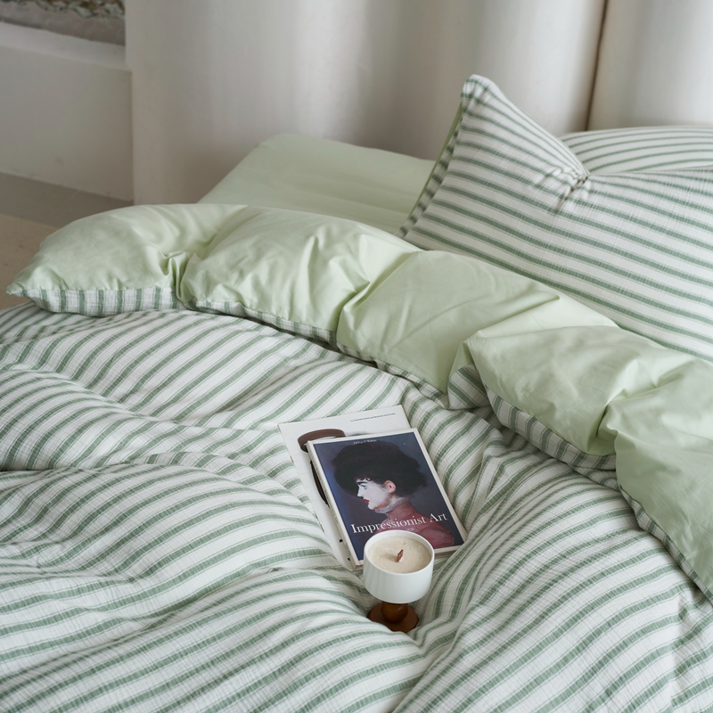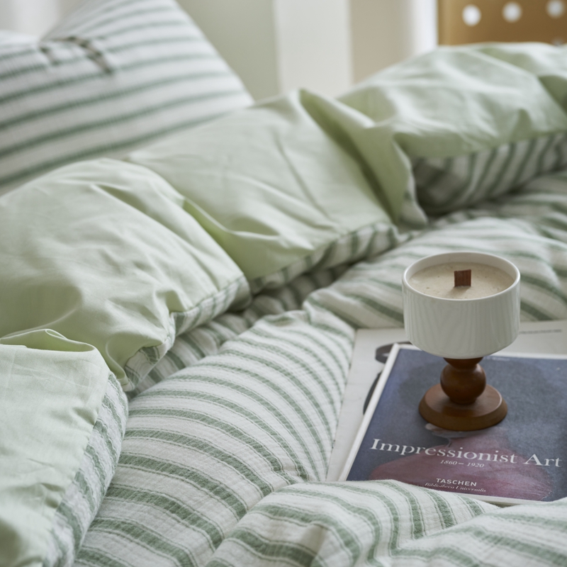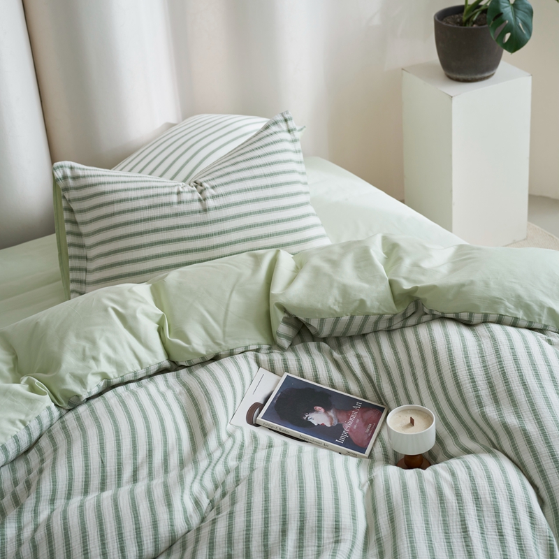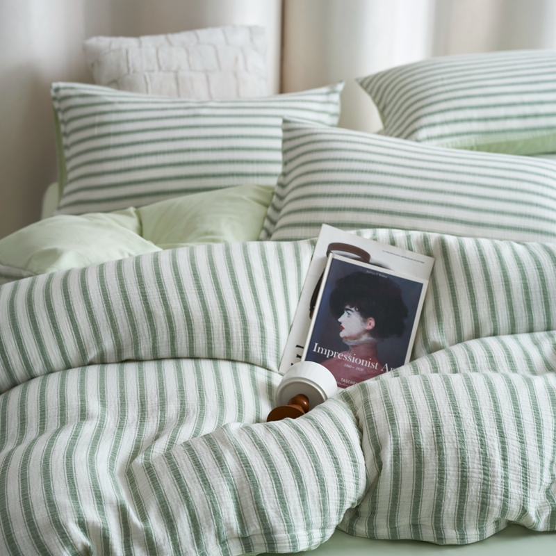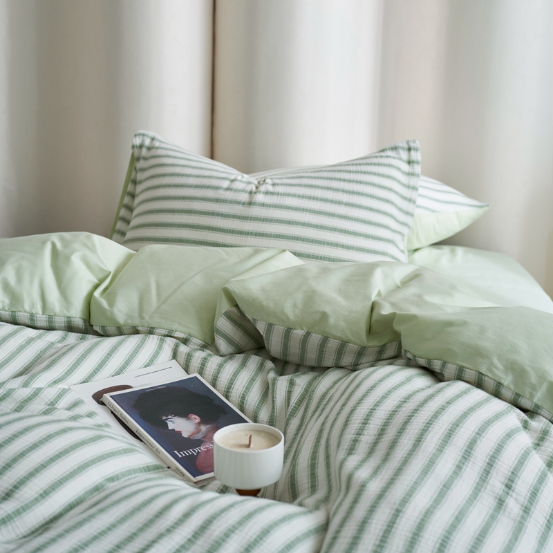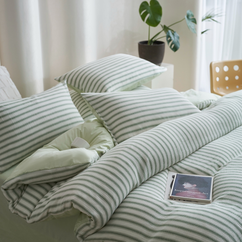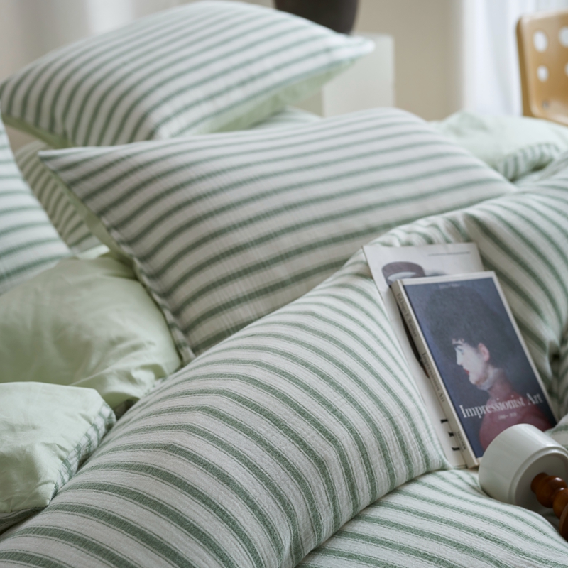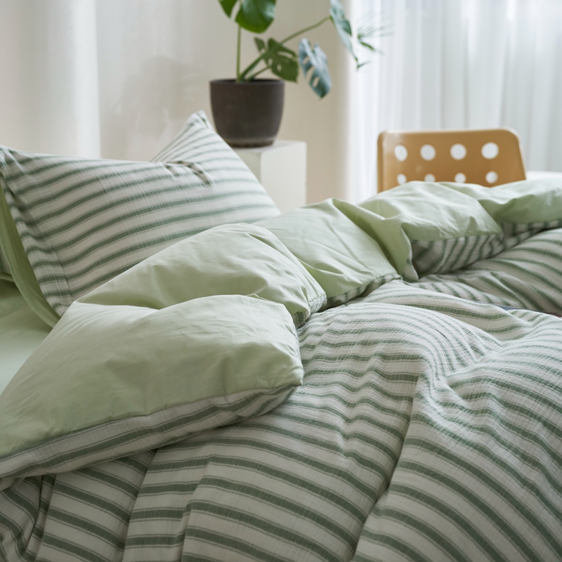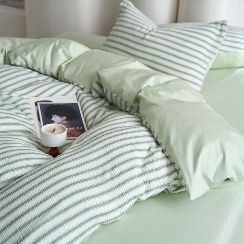 当前位置: 91家纺网 > 商品网购 > 床品套件 > 四件套 > 全棉普通四件套 > 金丝鸟家纺 2025新款全棉皱皱纱系列四件套 皱皱纱条纹绿