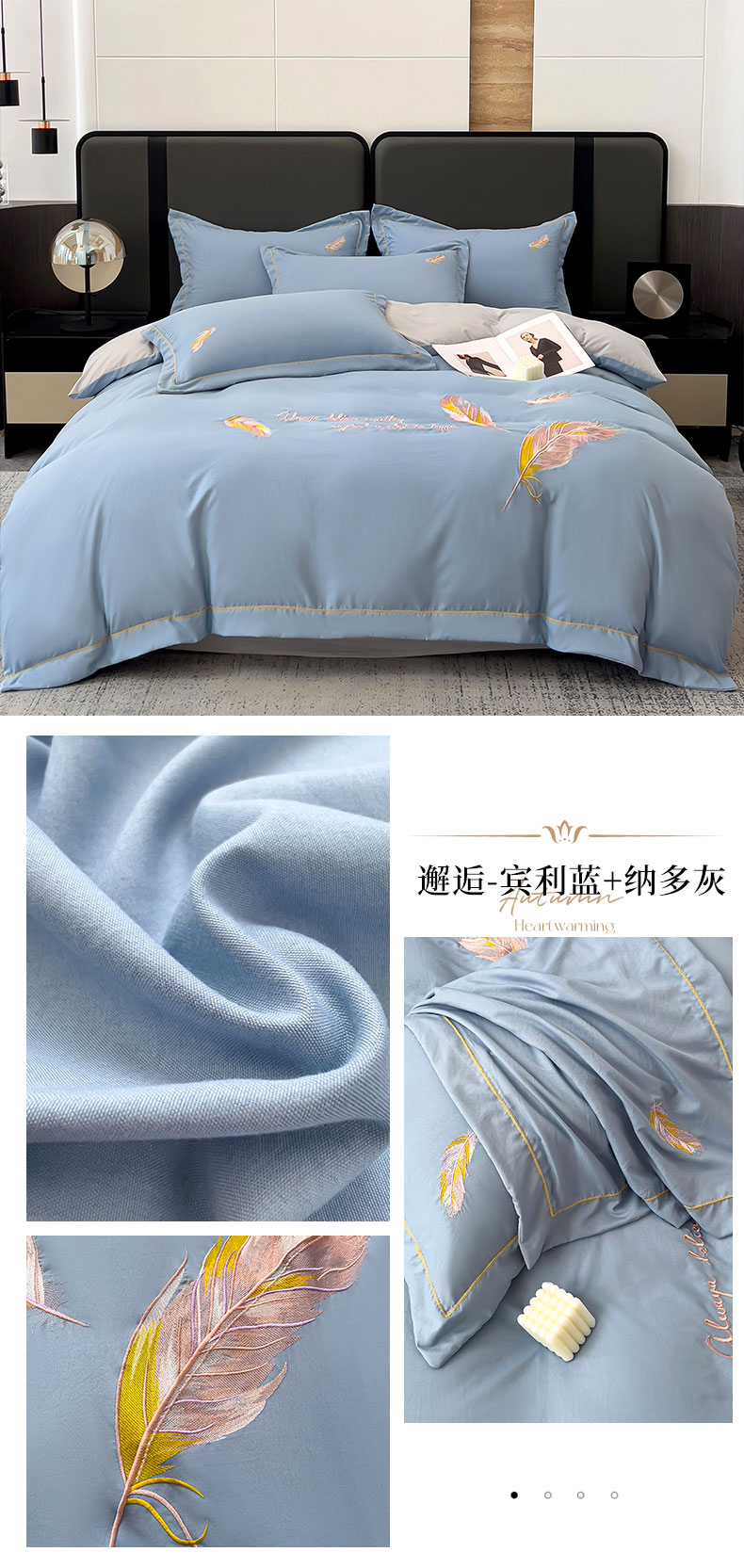 商品名称:(总)灰鲸 2025新款A类轻奢水洗棉刺绣四件套-邂逅