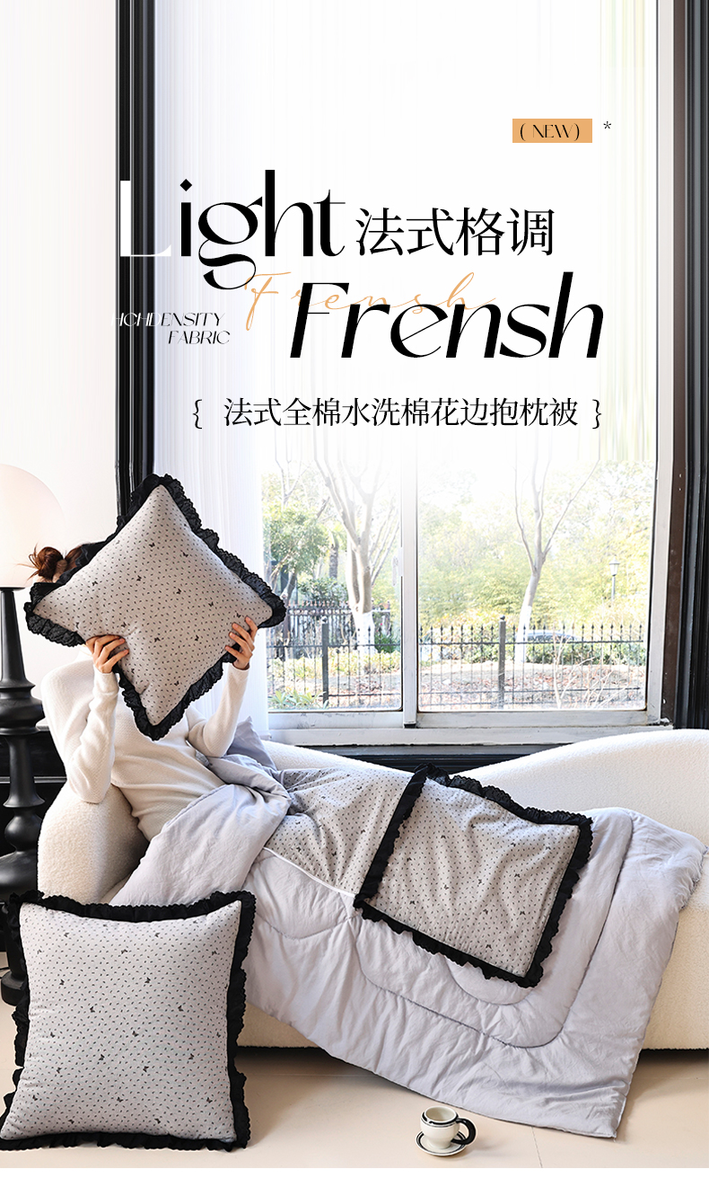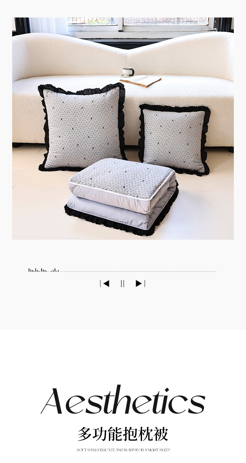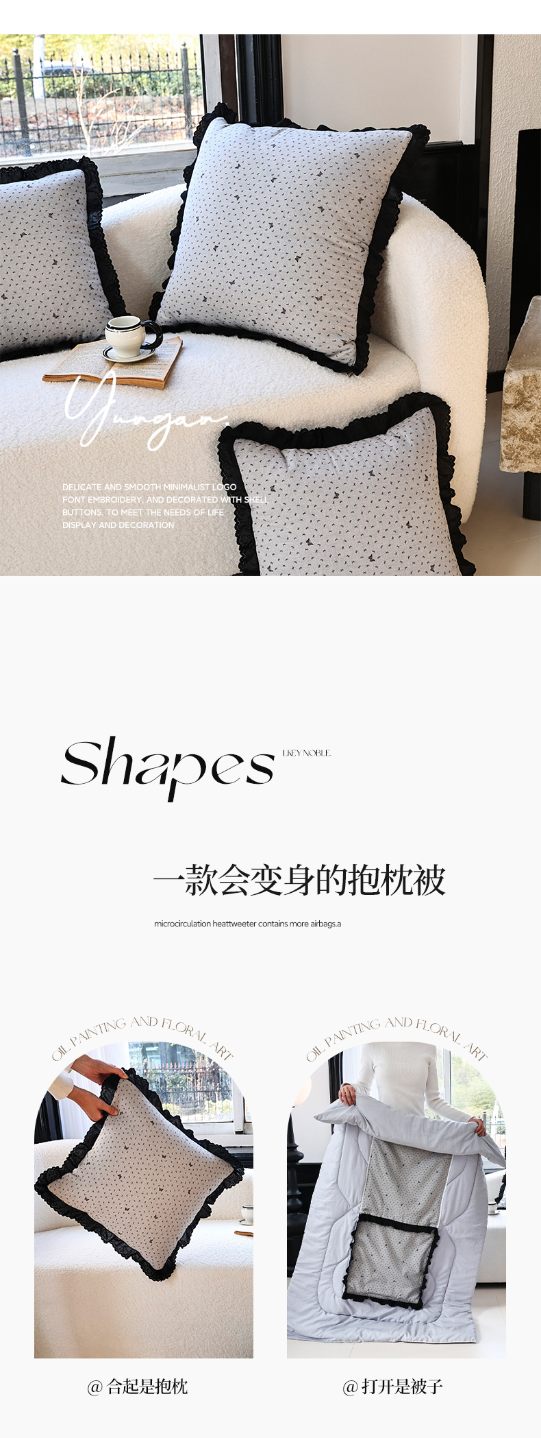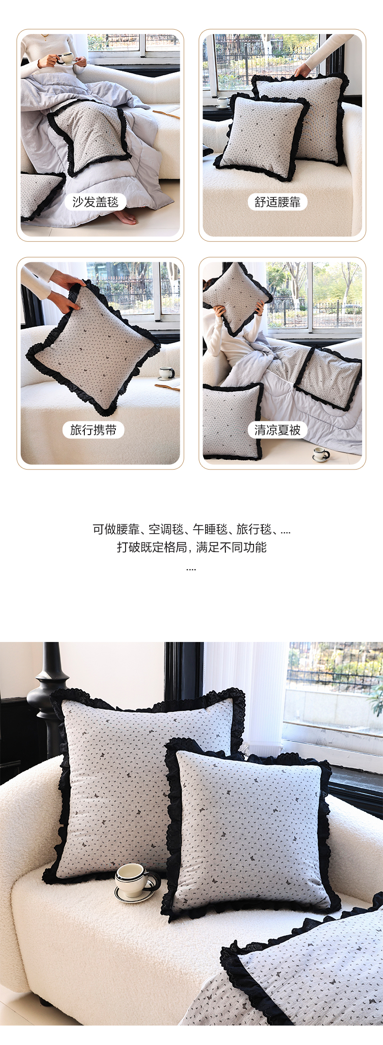 番茄+ 2025新款法式全棉黑花边抱枕被系列 蝶梦黑