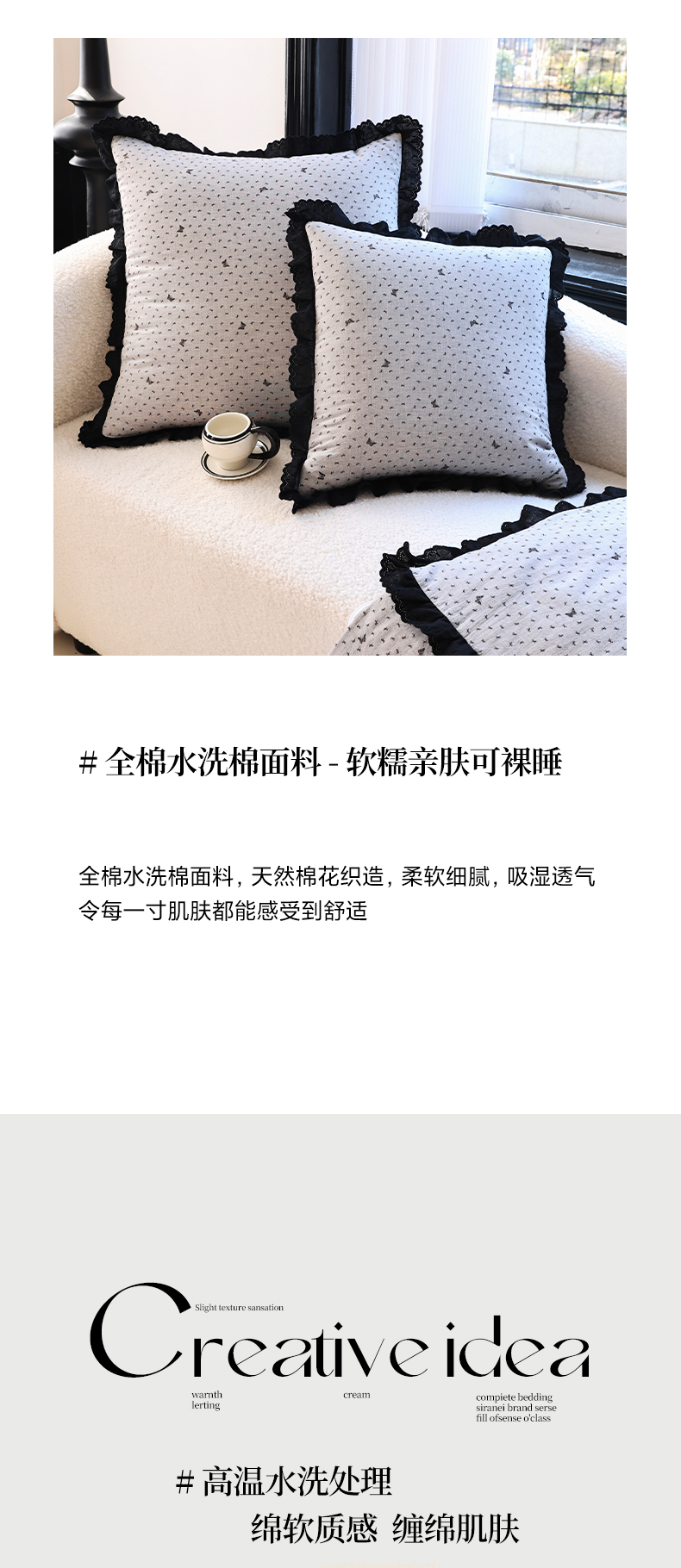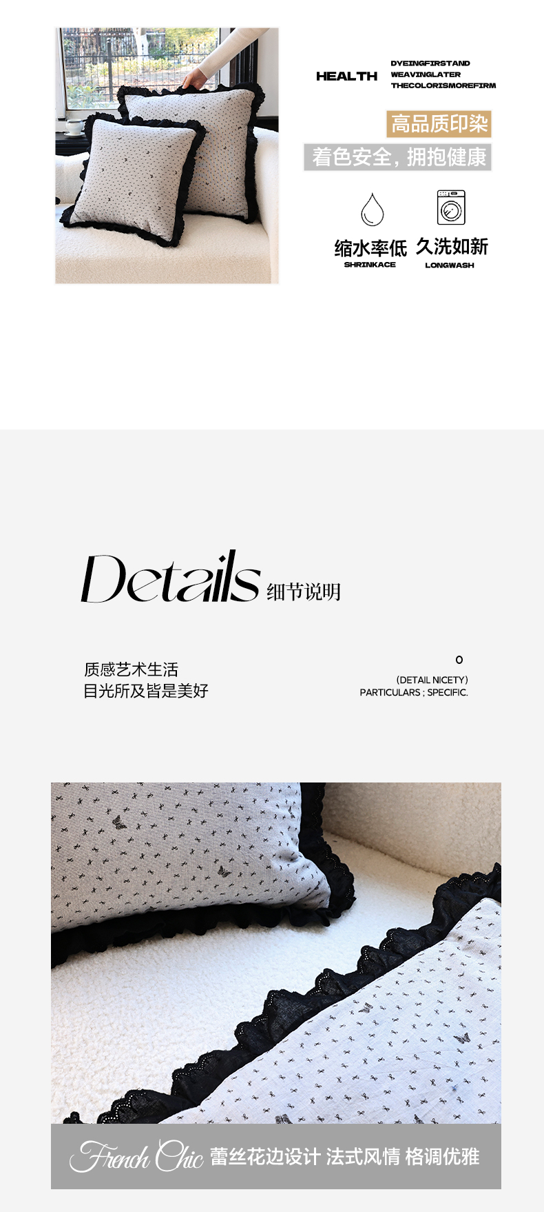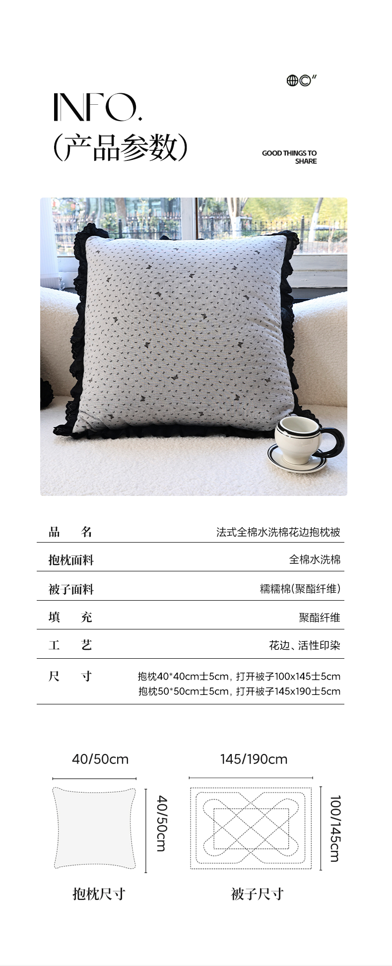 商品名称:番茄+ 2025新款法式全棉黑花边抱枕被系列 蝶梦黑