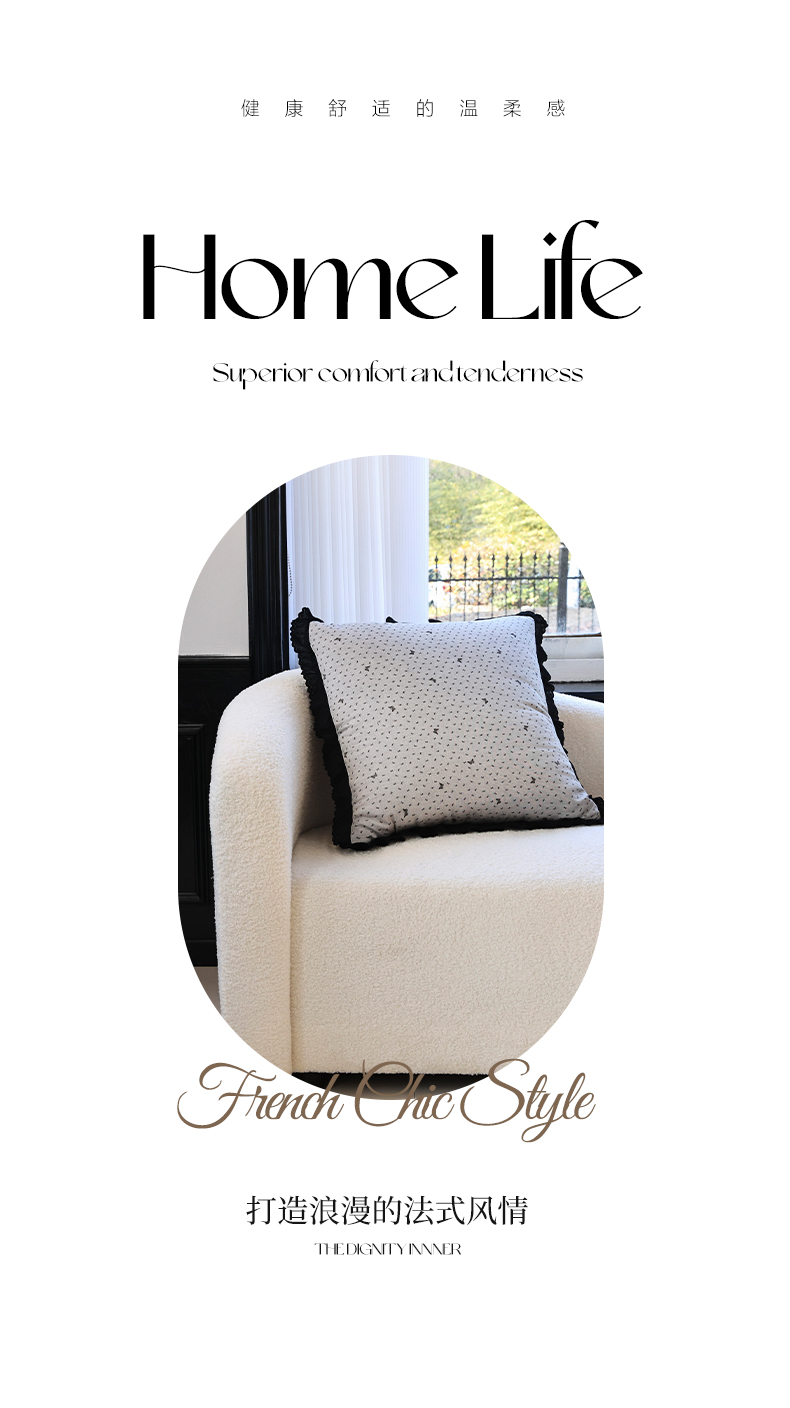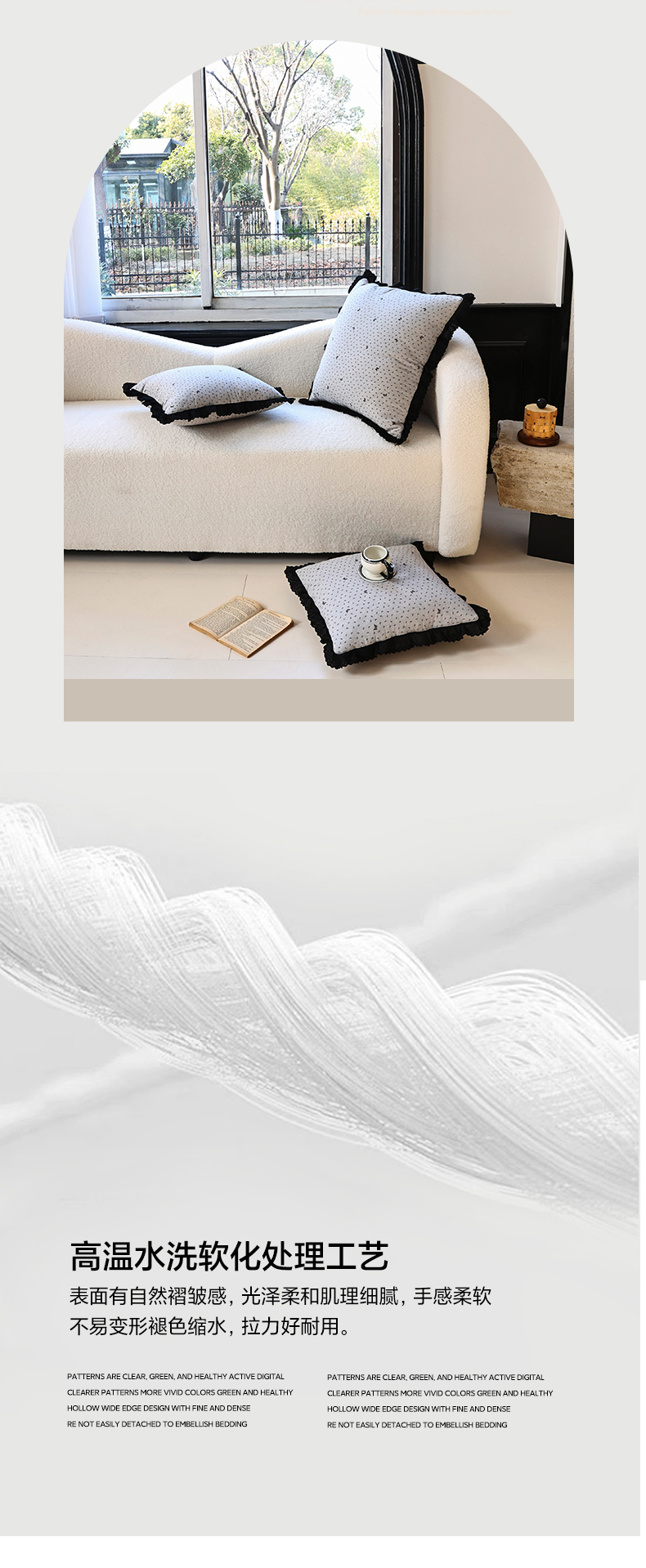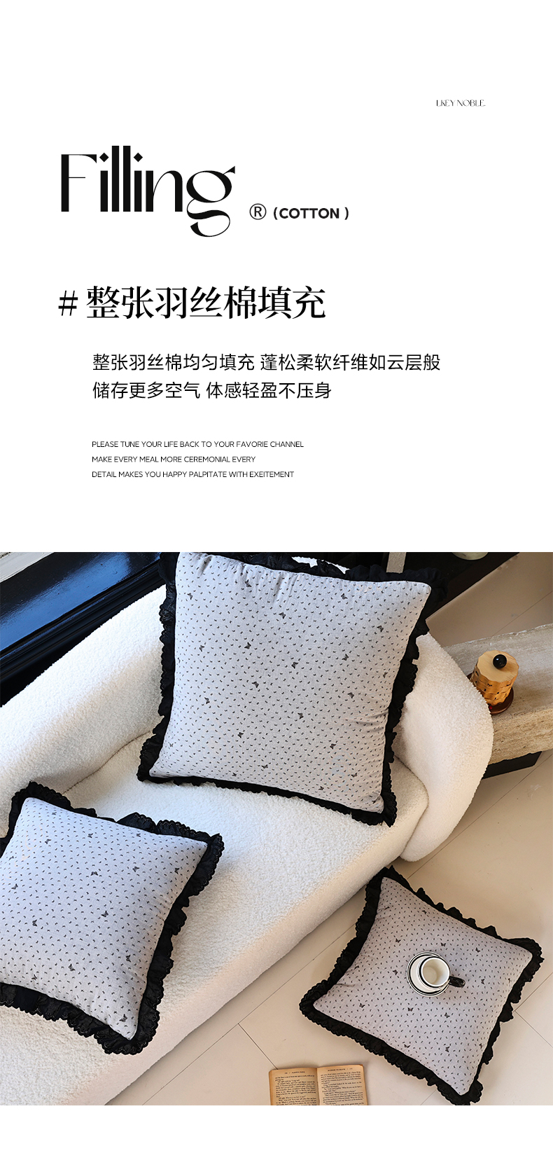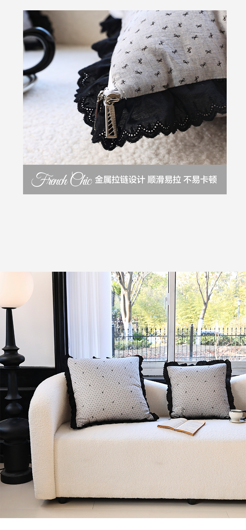 商品名称:番茄+ 2025新款法式全棉黑花边抱枕被系列 蝶梦黑