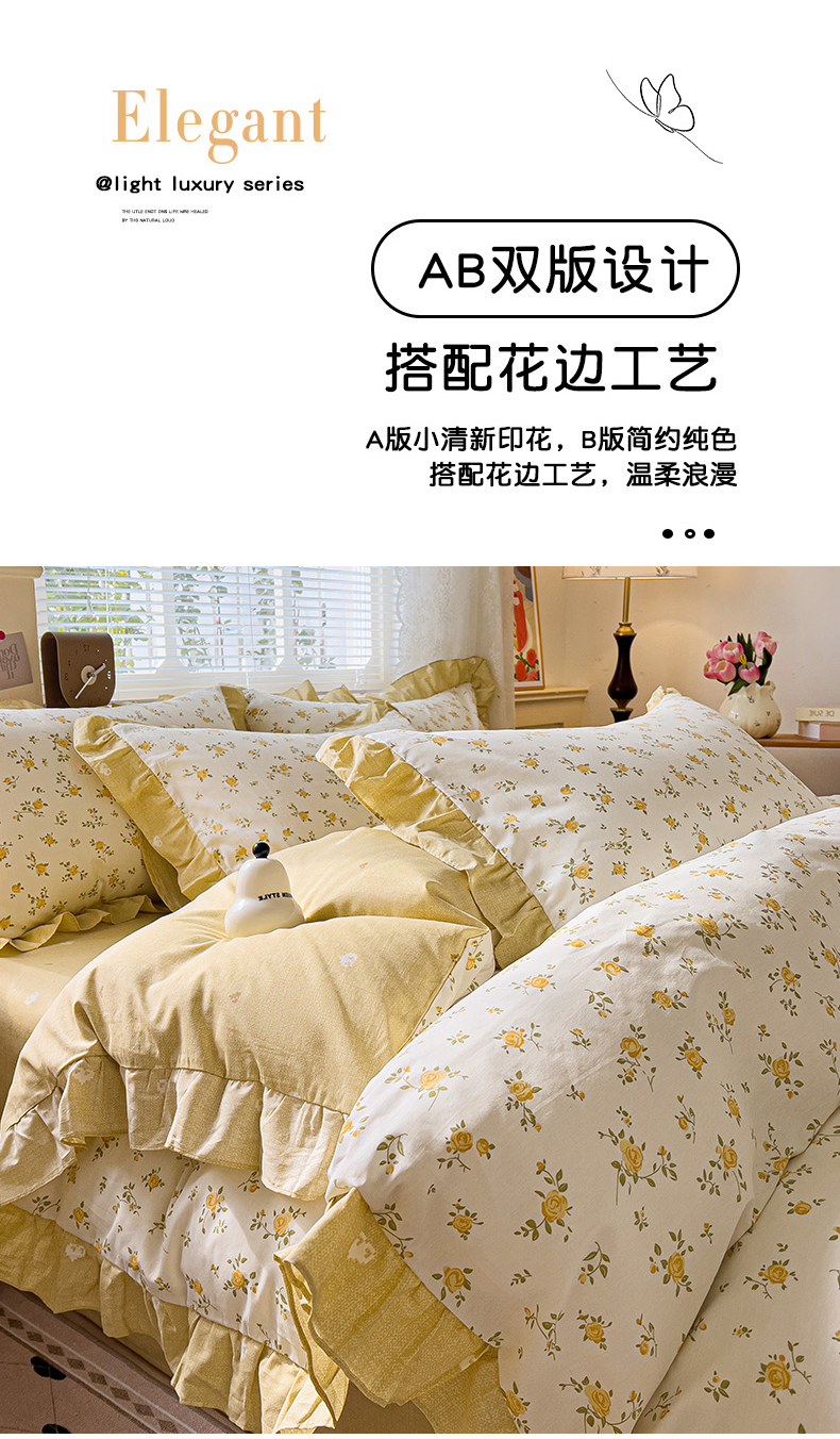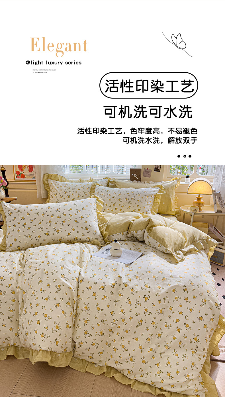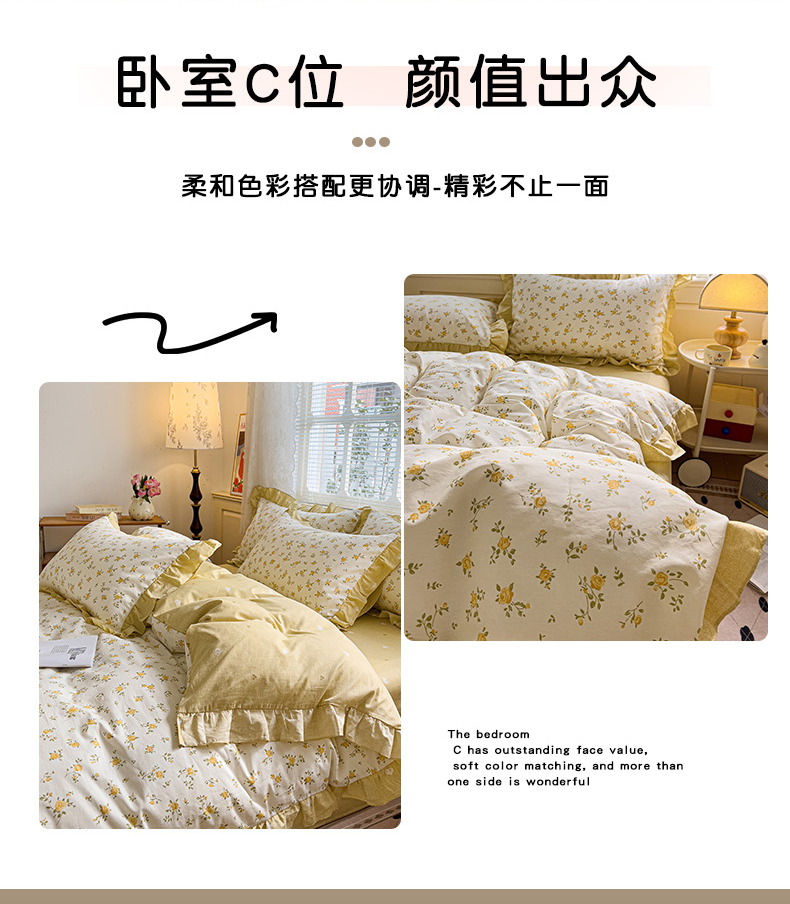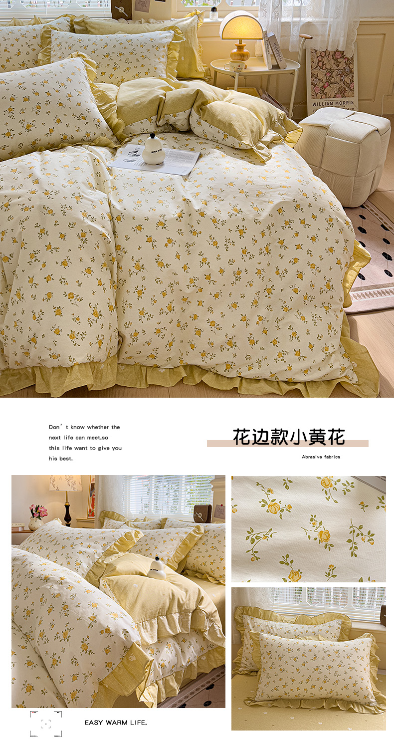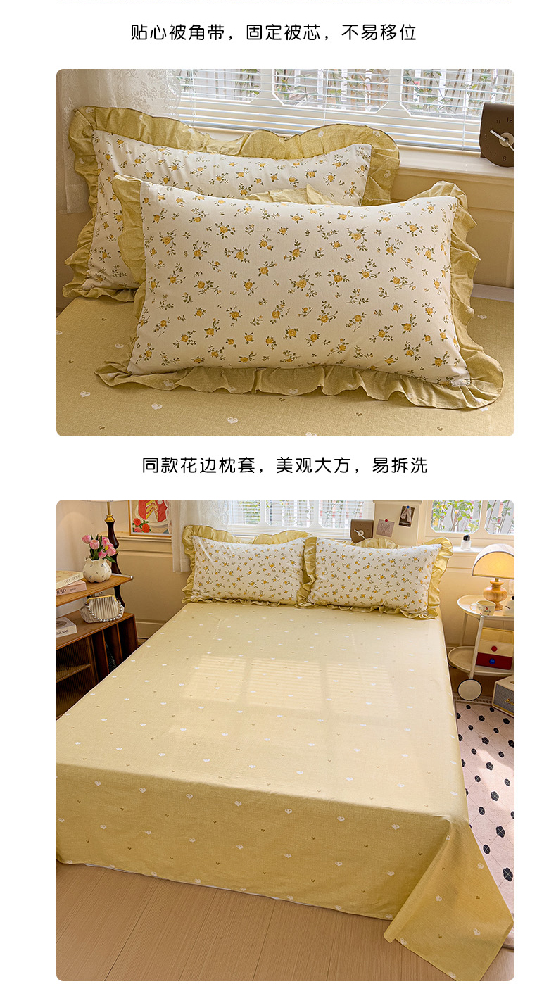 当前位置: 91家纺网 > 商品网购 > 床品套件 > 四件套 > 全棉普通四件套 > 忆生活家纺 2025新款韩版全棉花边四件套 花边款小黄花