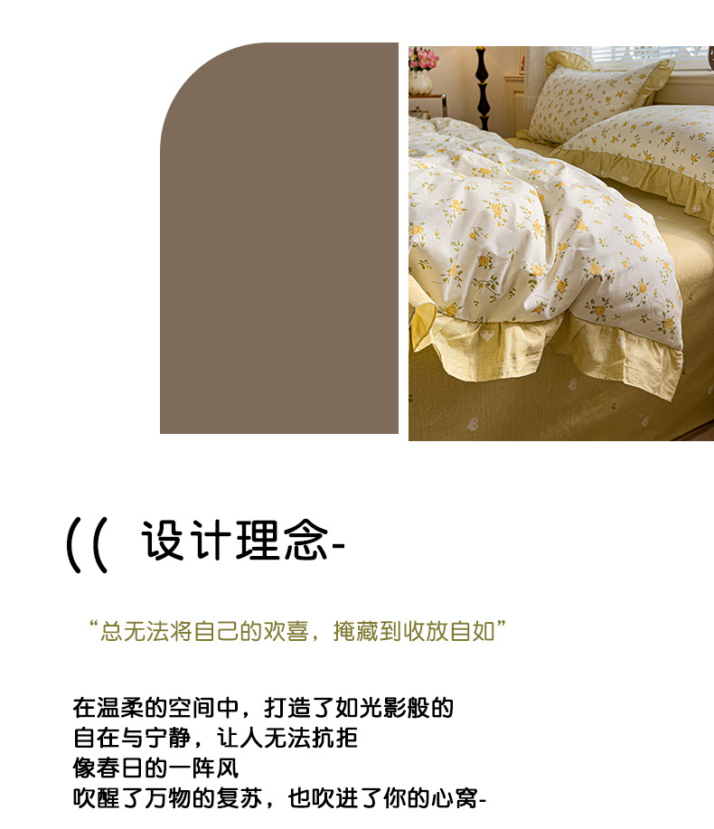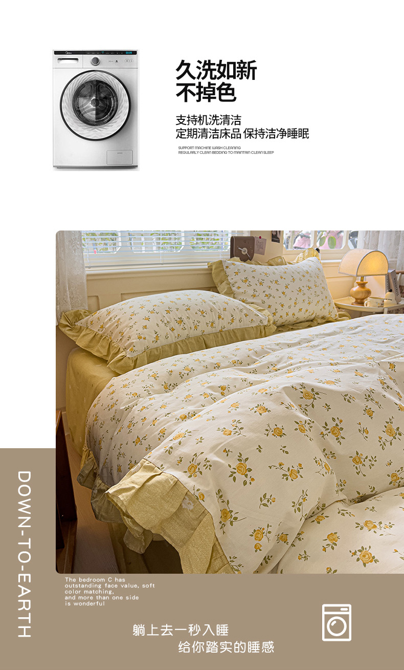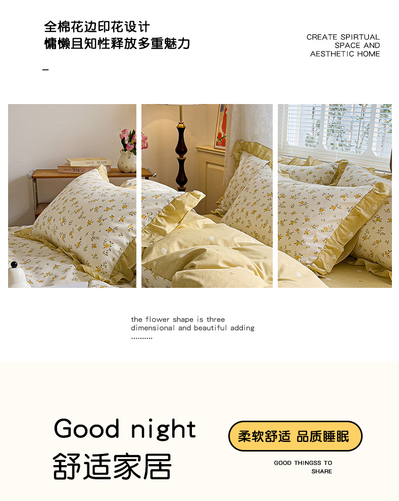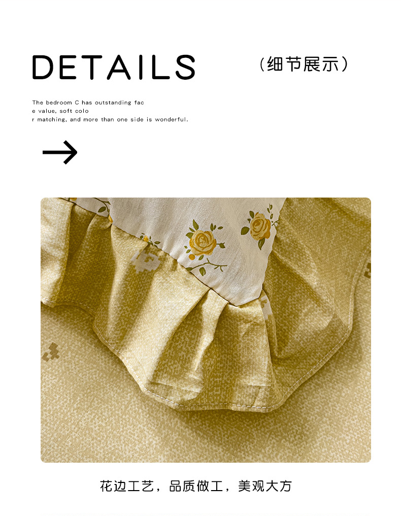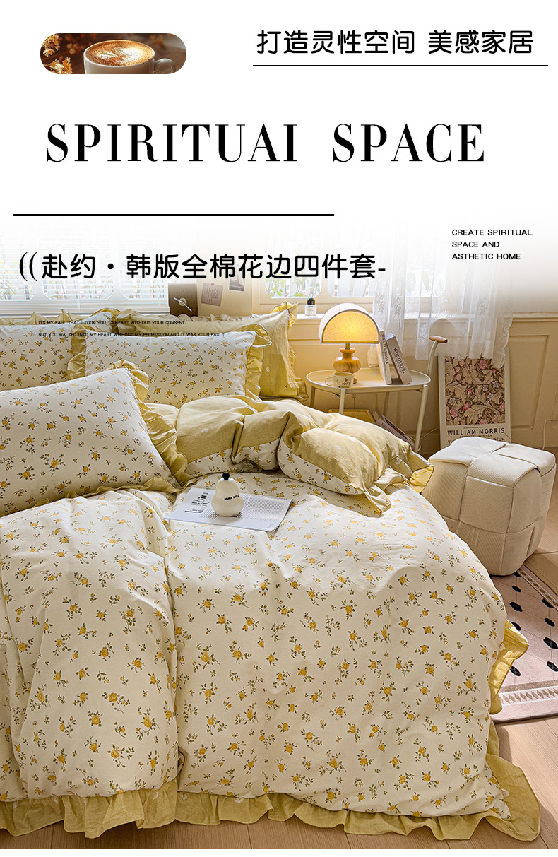 当前位置: 91家纺网 > 商品网购 > 床品套件 > 四件套 > 全棉普通四件套 > 忆生活家纺 2025新款韩版全棉花边四件套 花边款小黄花