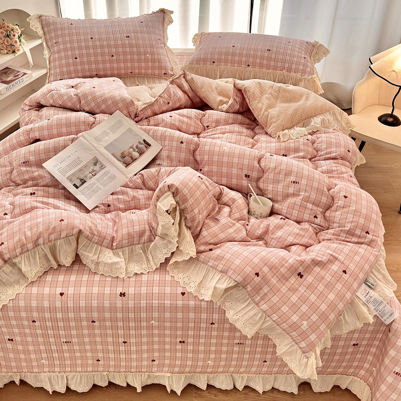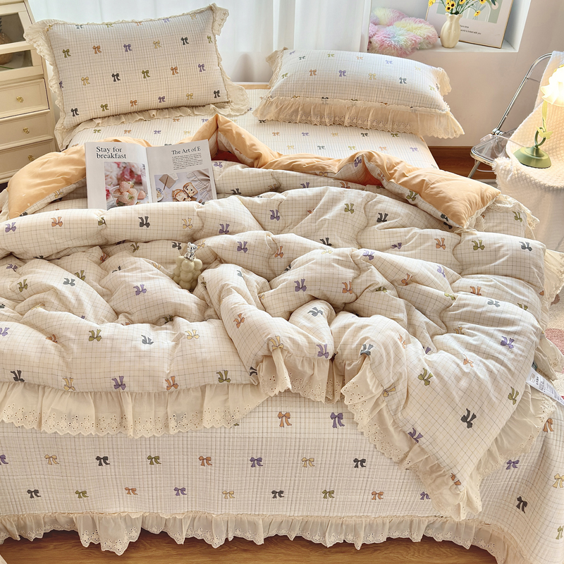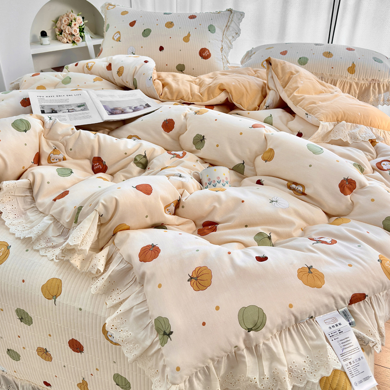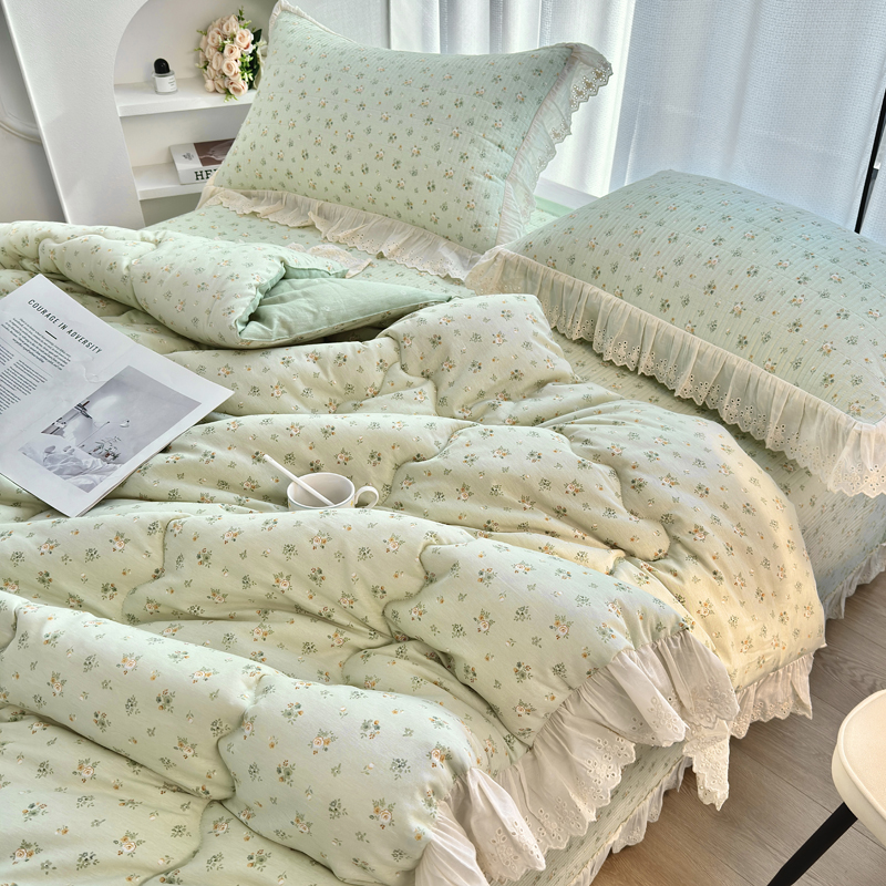 • 91家纺网 家纺一手货源 找家纺 尊妙被业 2025春夏新款全棉纯棉印花法式花边春秋被可机洗 俏颜-蓝