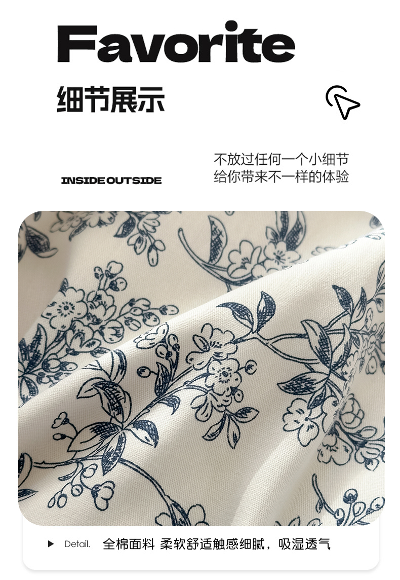 商品名称:清雅福 2025新款13070全棉小清新单被套 小墨兰