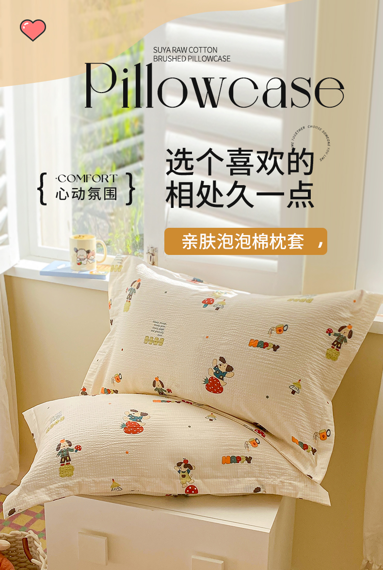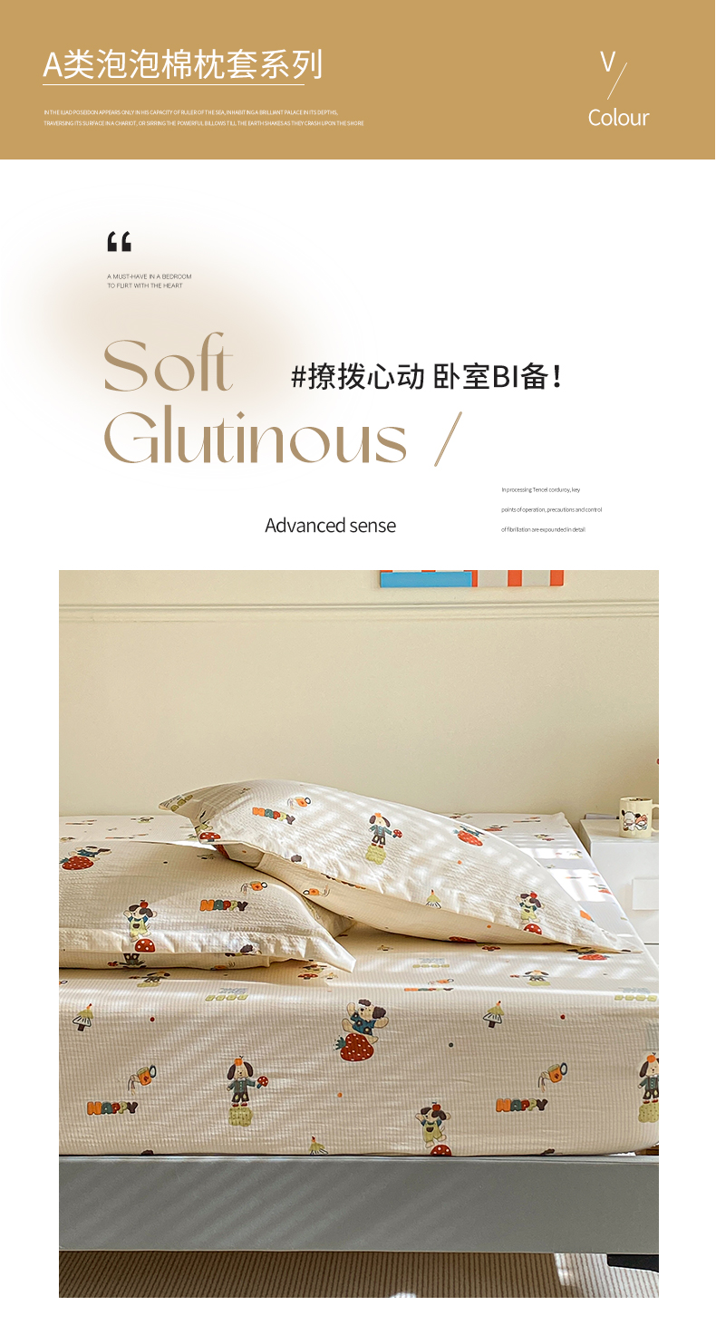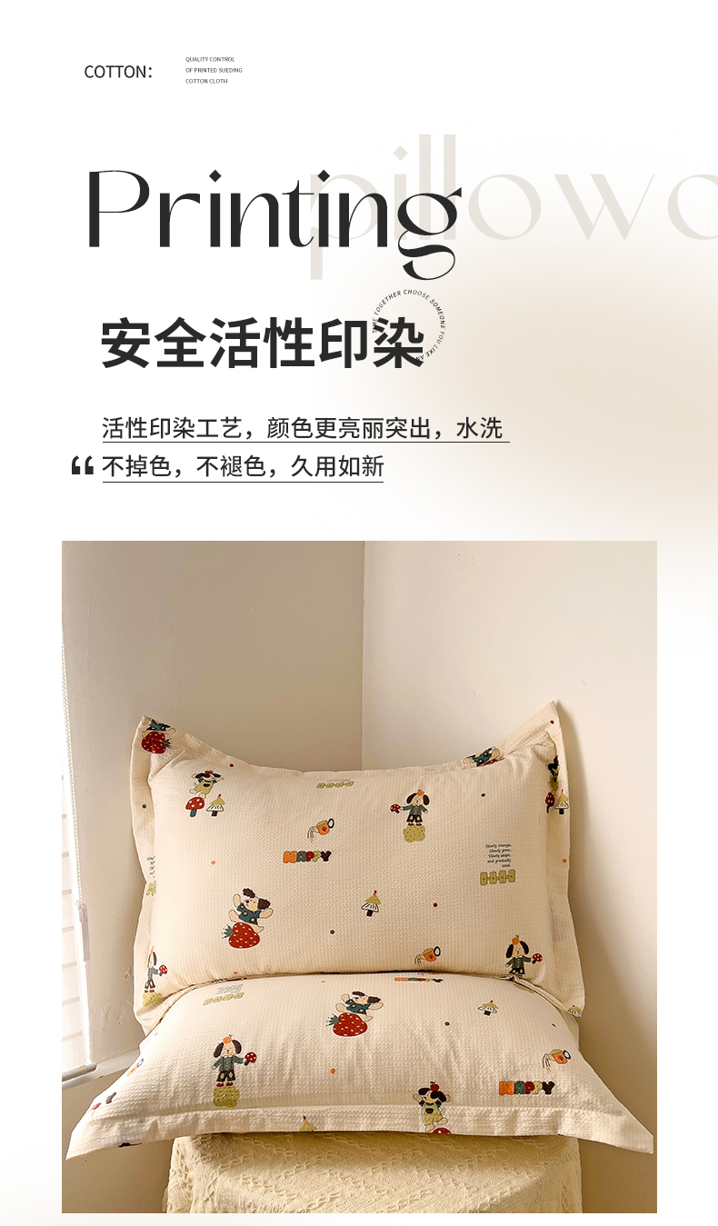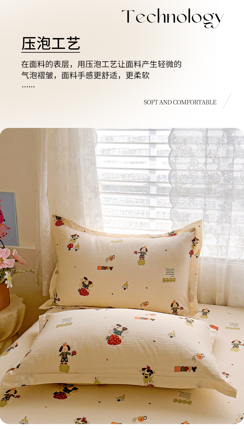 恬澳家纺 2025新款泡泡棉印花枕套 嗨皮狗