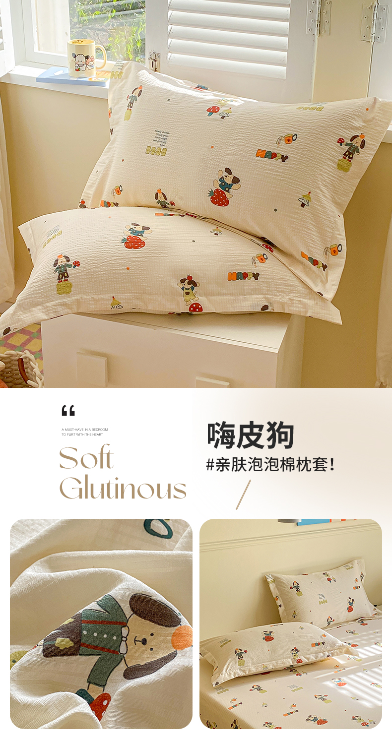 商品名称:恬澳家纺 2025新款泡泡棉印花枕套 嗨皮狗