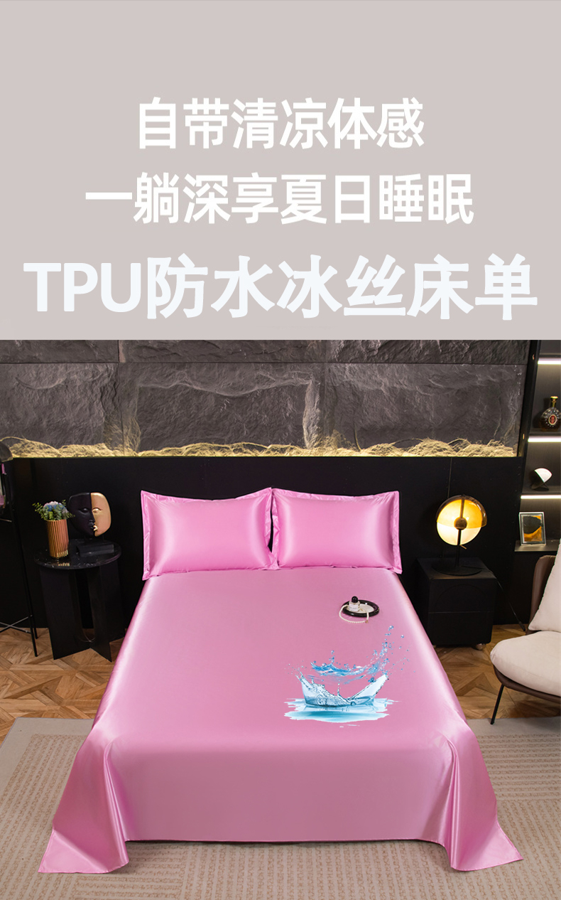 商品名称:梦舒羽 2025新款防水冰丝纯色床单凉爽柔顺宿舍双人床单 防水冰丝床单-粉色