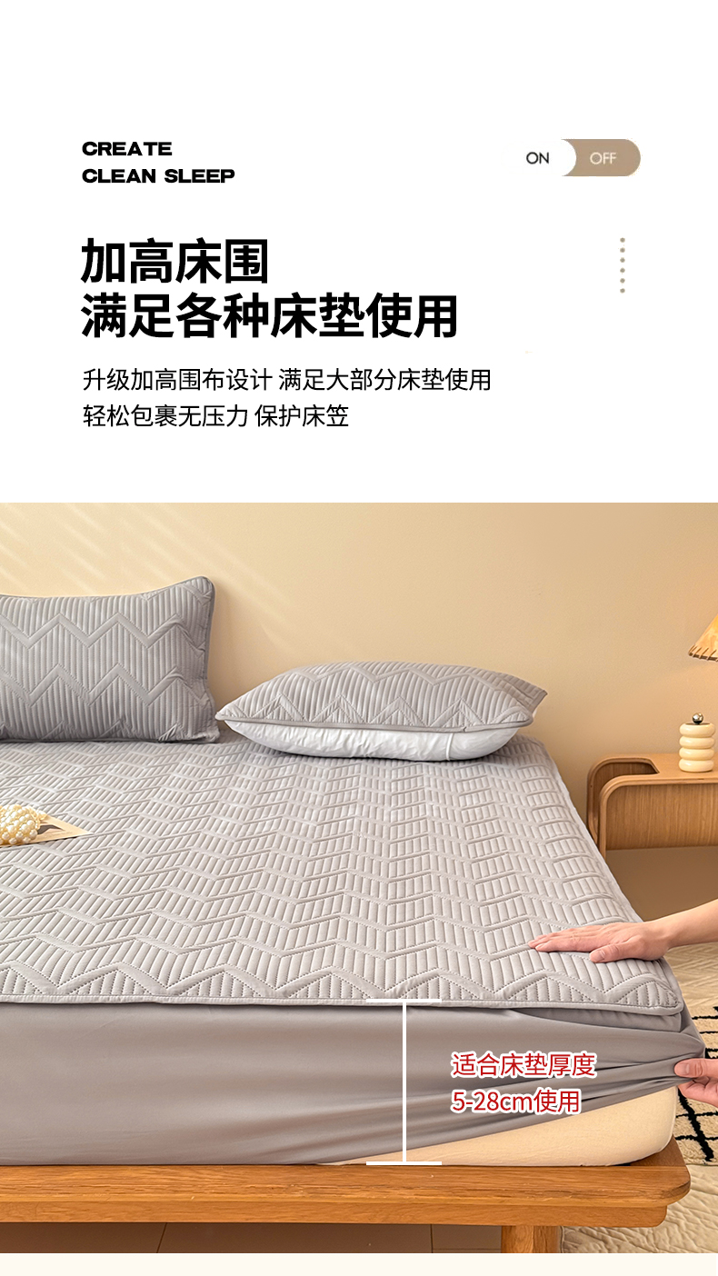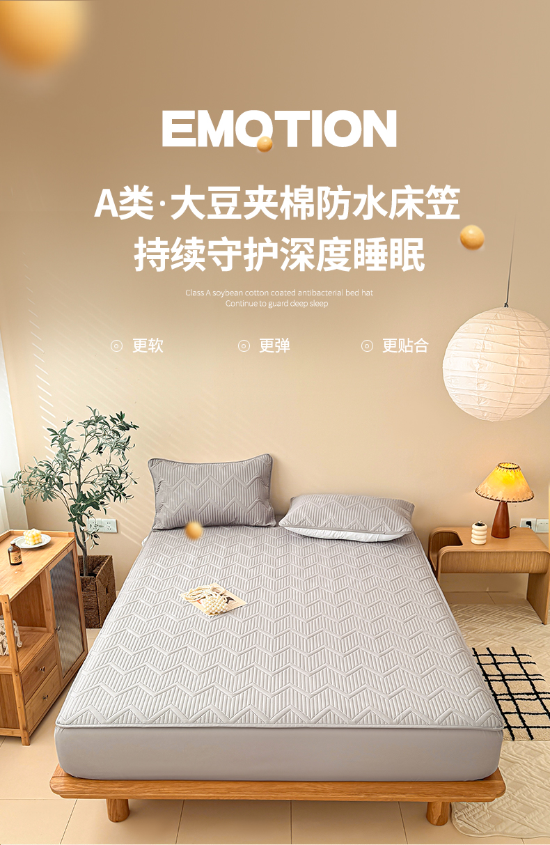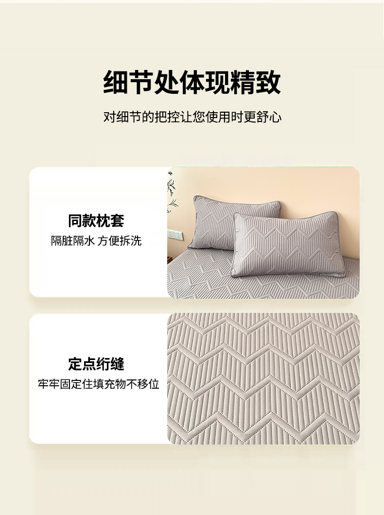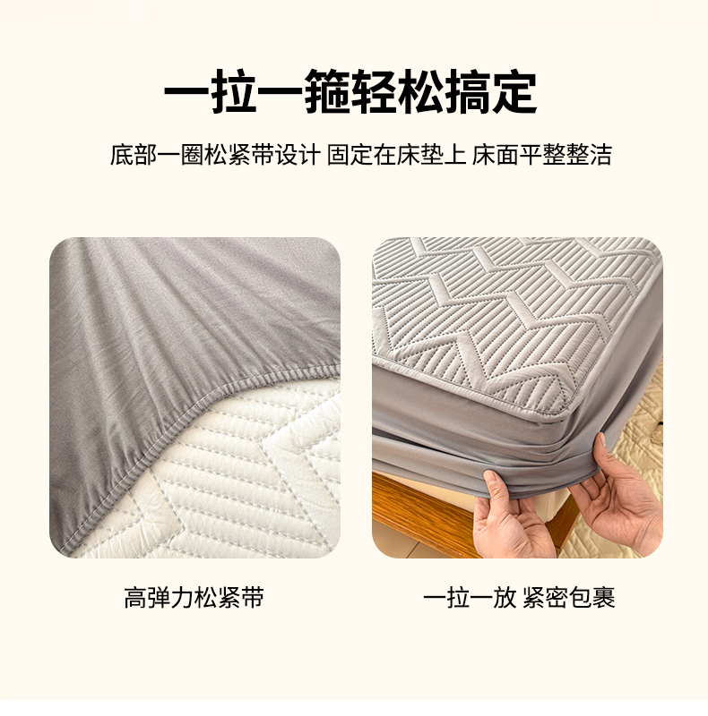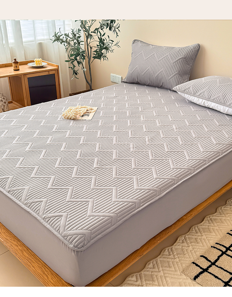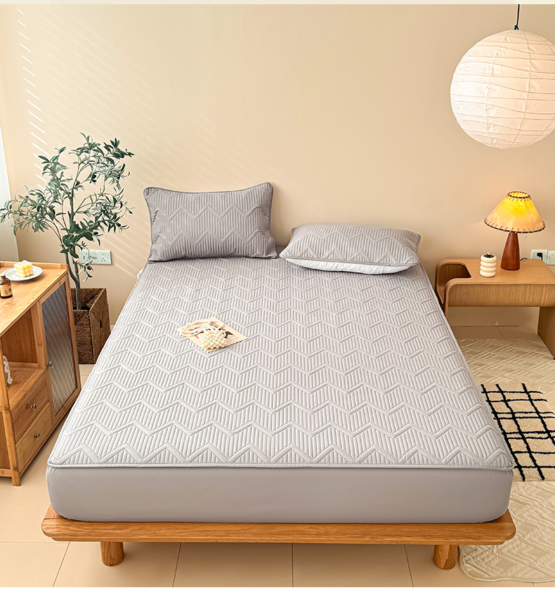 商品名称:曼陀罗 2025新款水洗原棉大豆夹棉防水床笠 水波纹-绅士灰