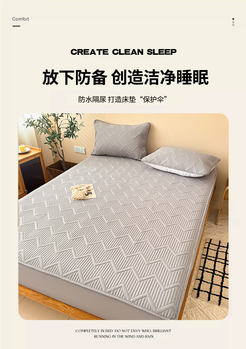 曼陀罗 2025新款水洗原棉大豆夹棉防水床笠 水波纹-绅士灰