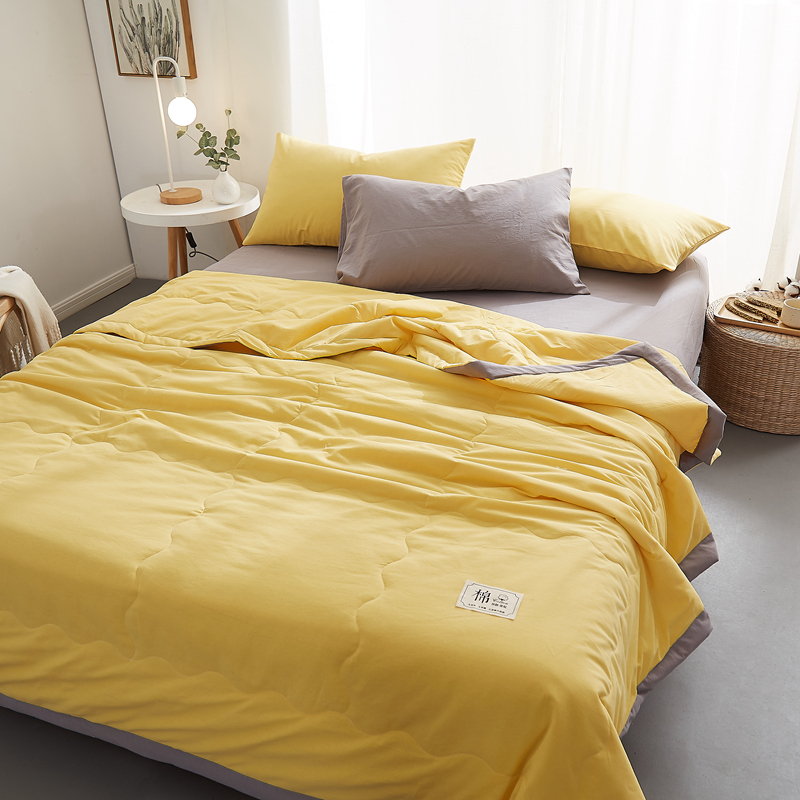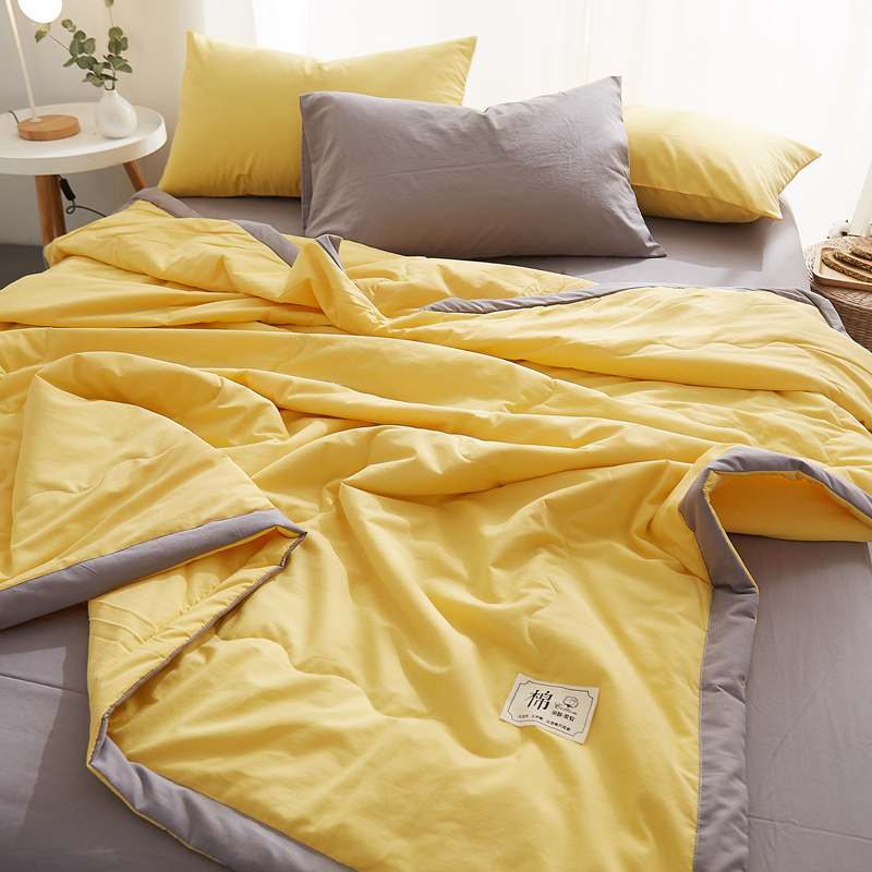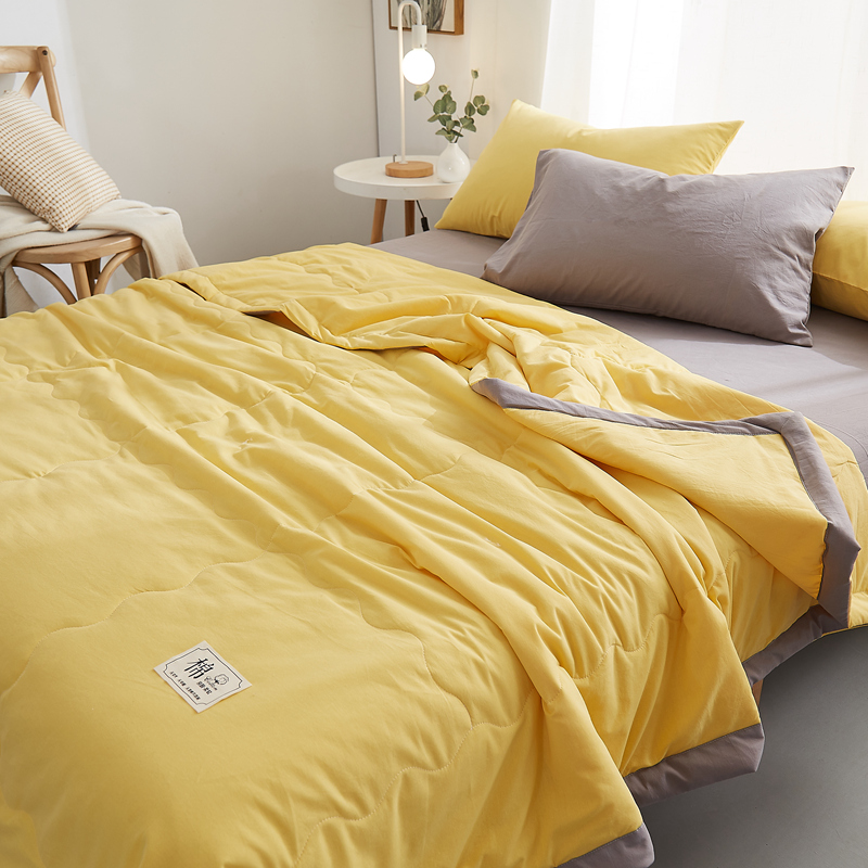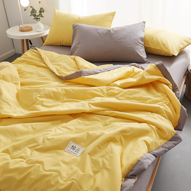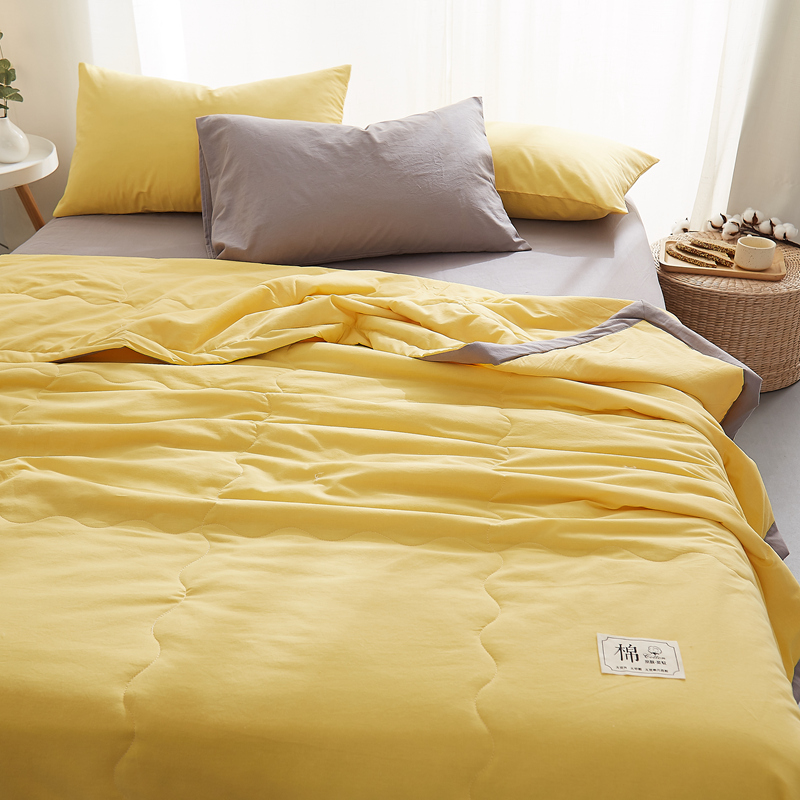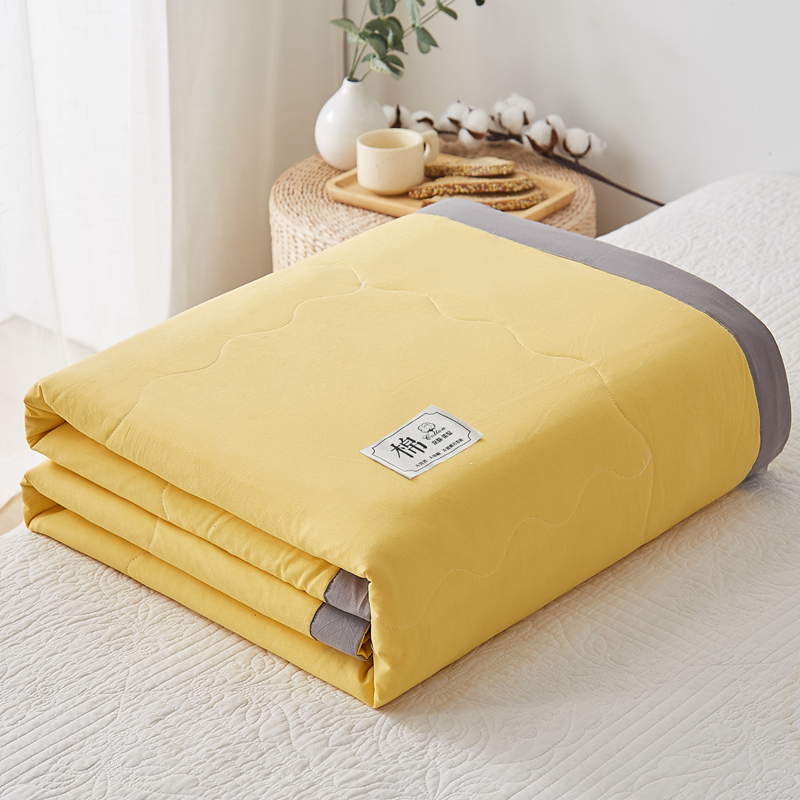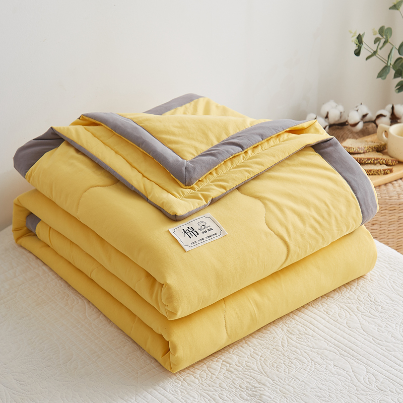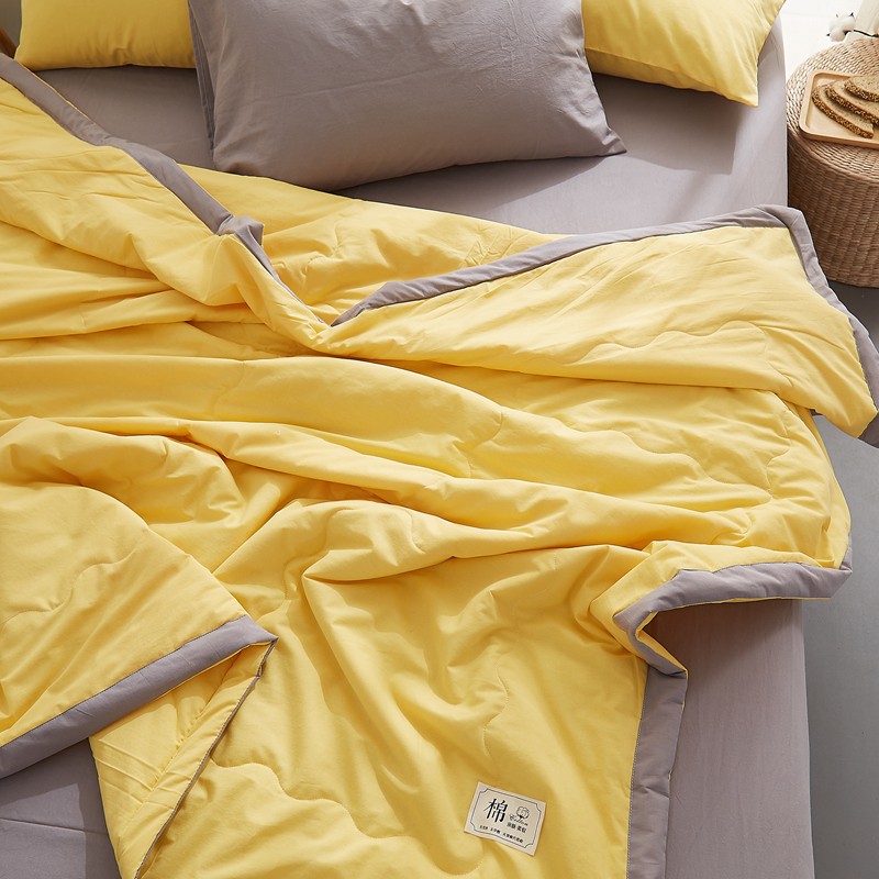 商品名称:暖阳 2025新款全棉水洗棉拼色棉花夏被夏凉被被子被芯 柠檬黄【AB同色】