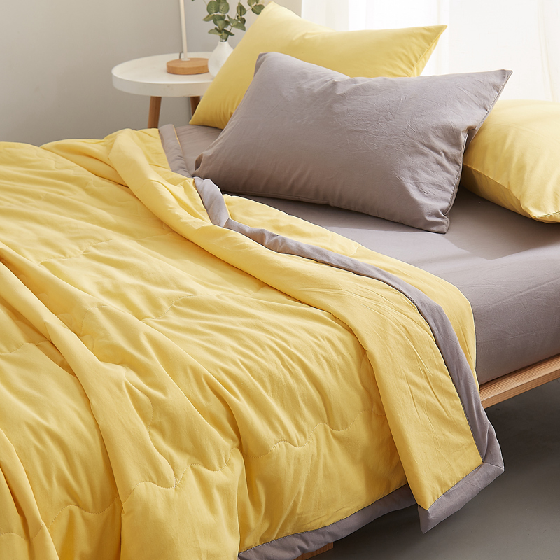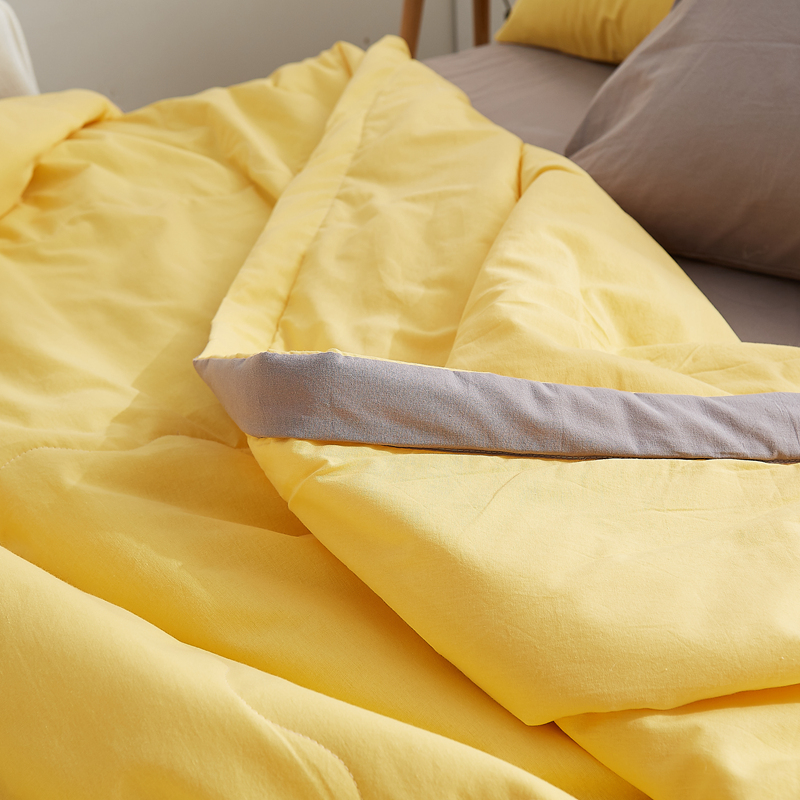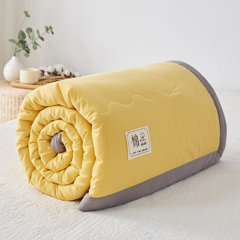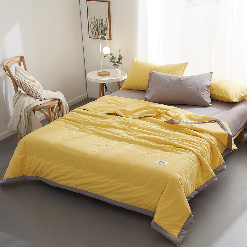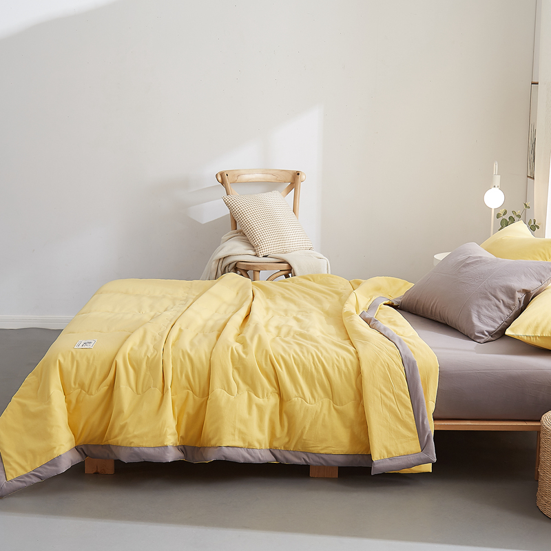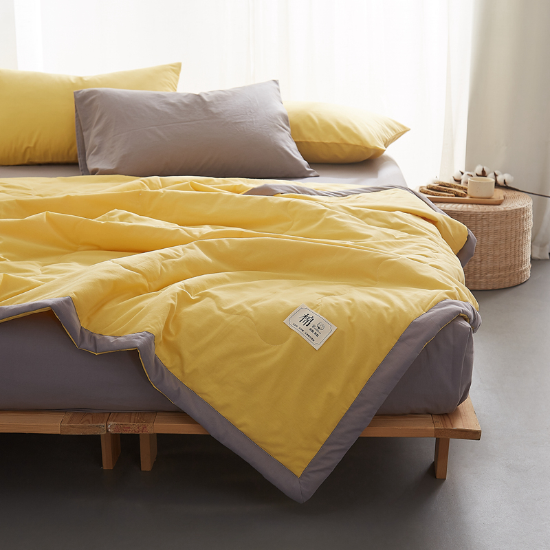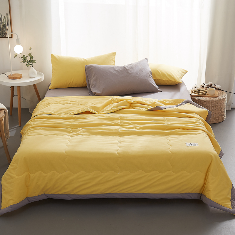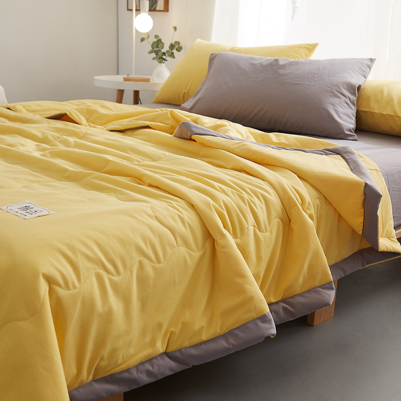 商品名称:暖阳 2025新款全棉水洗棉拼色棉花夏被夏凉被被子被芯 柠檬黄【AB同色】