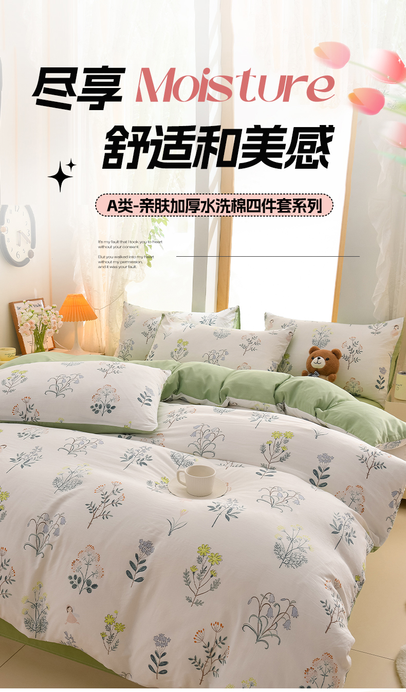 当前位置: 91家纺网 > 商品网购 > 床品套件 > 四件套 > 水洗棉四件套 > 迪拜家纺 2025新款加厚水洗棉四件套 早夏藤子