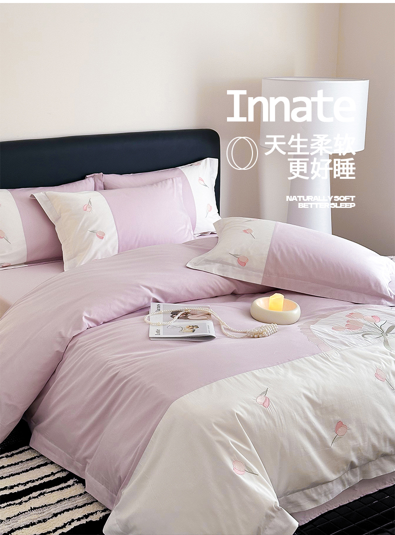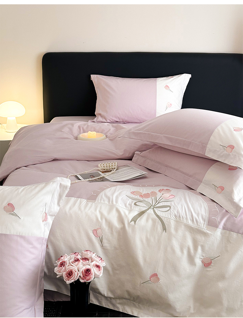 典曼家纺 2025新款A类拼接刺绣四件套-帕兰朵 帕兰朵-紫