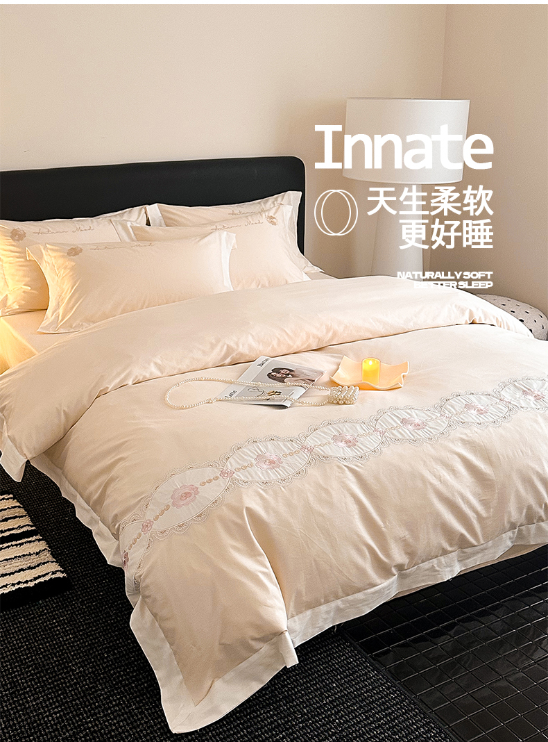 (总)典曼家纺 2025新款亲肤舒适牛奶绒四件套-可可小姐系列,可可小姐-瓷白,可可小姐-水粉