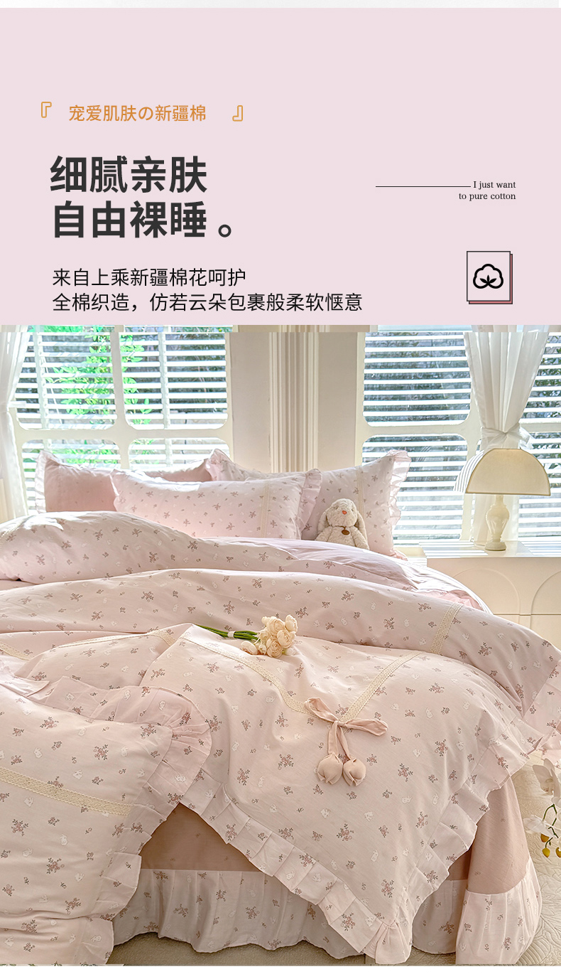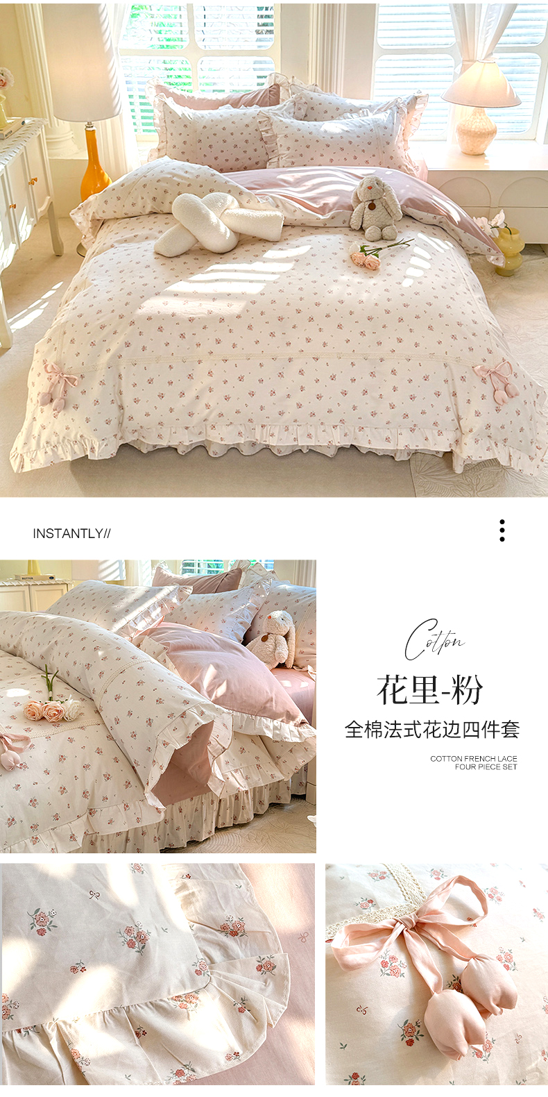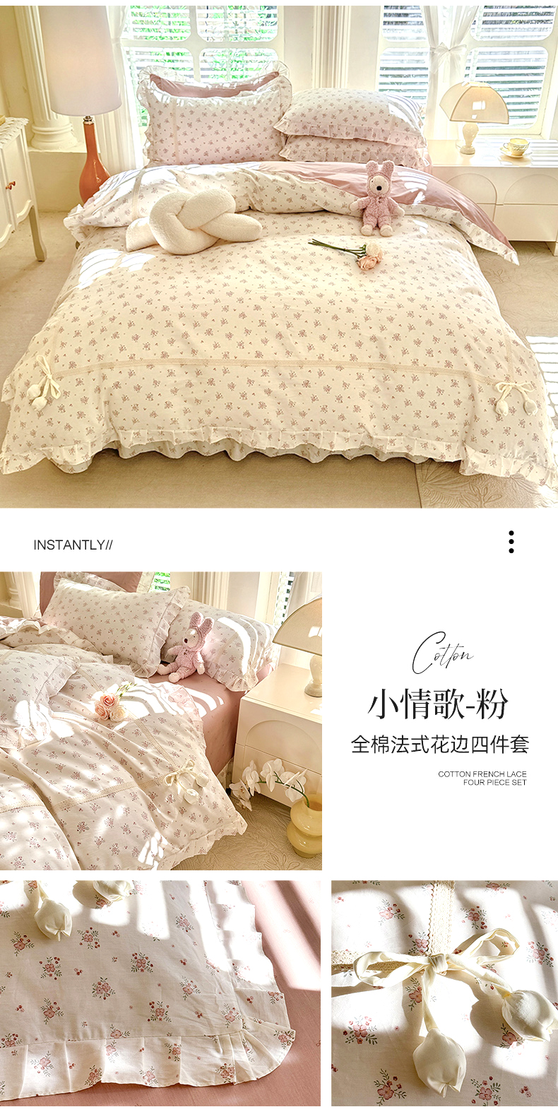 (总)艾唯希2025新款全棉小香风工艺四件套纯棉小花边碎花被套韩式公主风,初朵,春漾,漫丁蔷薇,觅秋,密玲花语,慕归十里,小青藤-米,小樱-咖,雅集,雅蔓花语,樱花,悠然雅居-粉