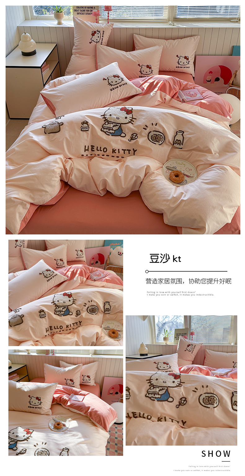(总)金爱家 2025新款A类三丽鸥正版授权云柔水洗棉兔毛贴布绣刺绣软糯系列四件套,云柔水洗棉-贴布绣粉格KT,云柔水洗棉-贴布绣蓝格布丁狗,云柔水洗棉-贴布绣蓝格KT,云柔水洗棉-贴布绣美乐蒂,云柔水洗棉-贴布绣萌萌布丁狗,云柔水洗棉-贴布绣你好大耳狗,云柔水洗棉-贴布绣紫格库洛米