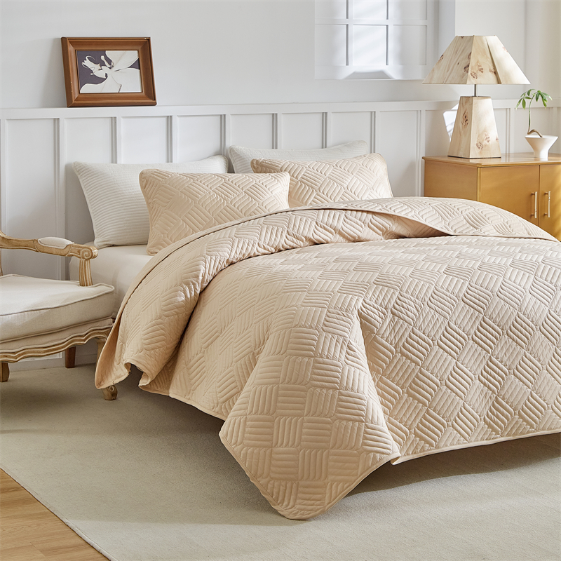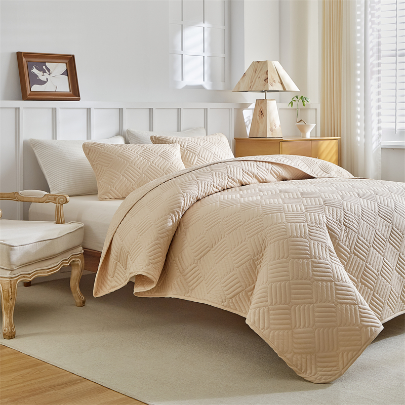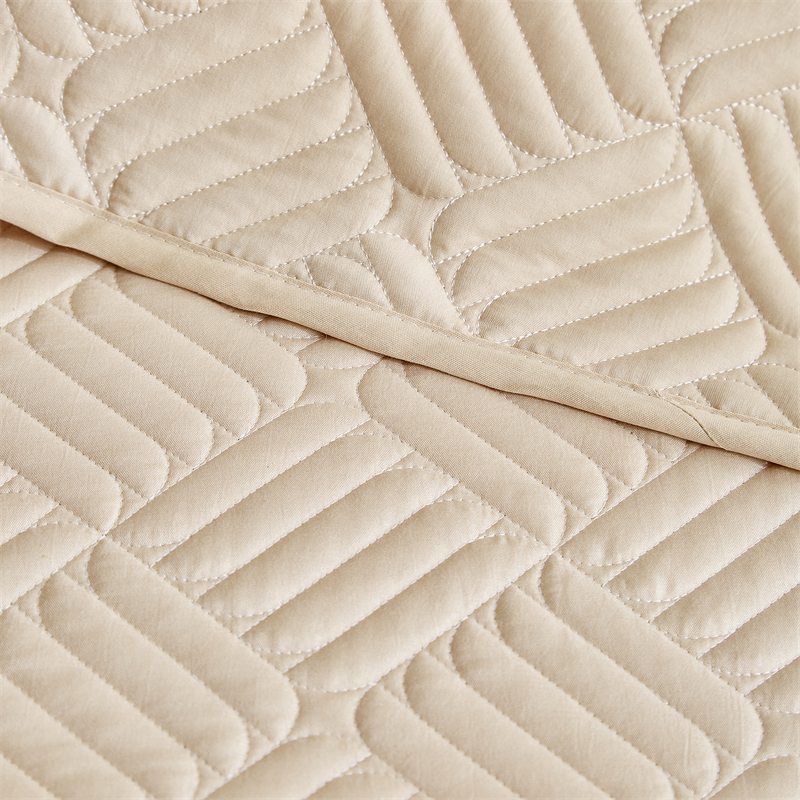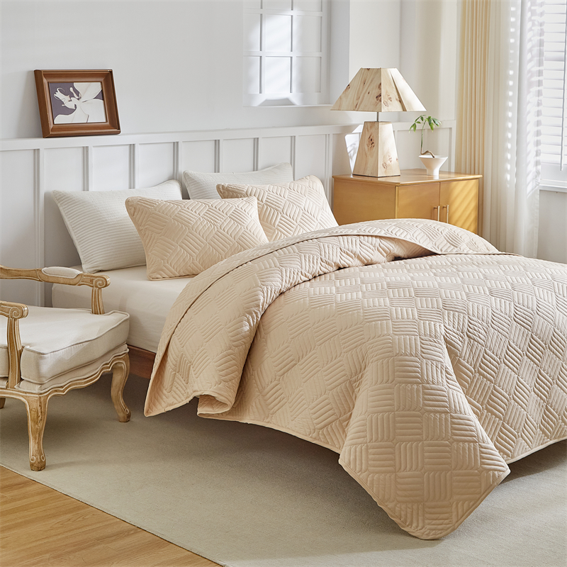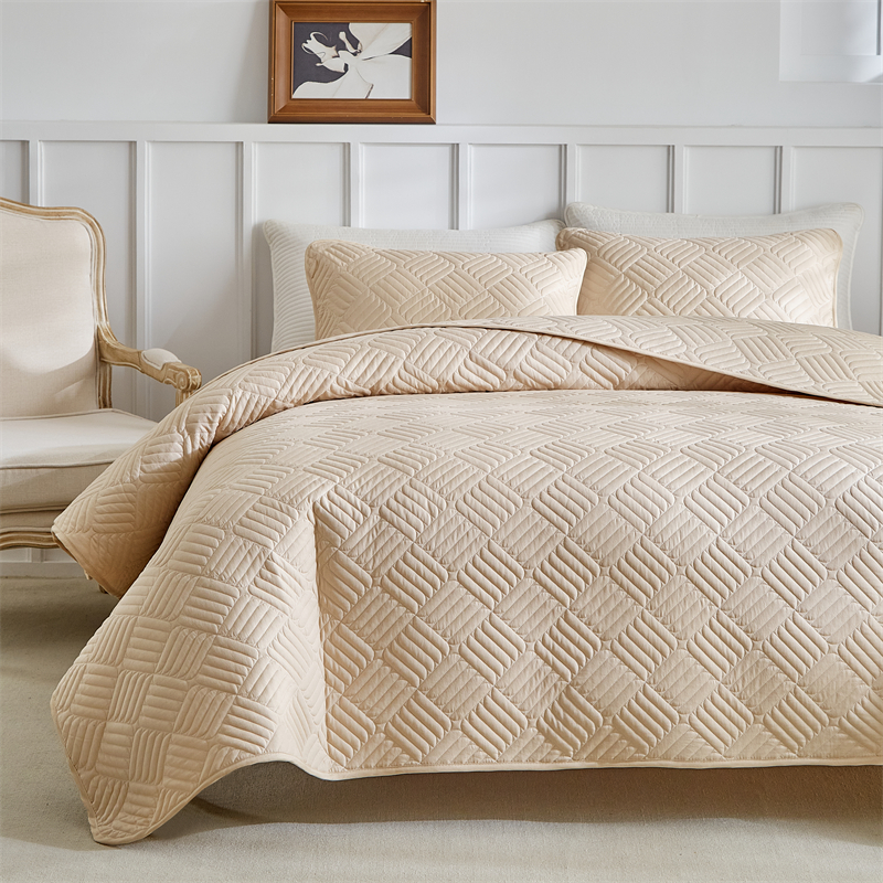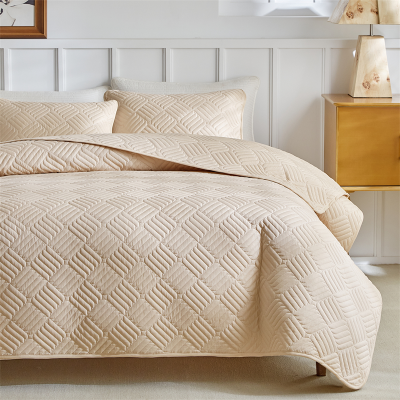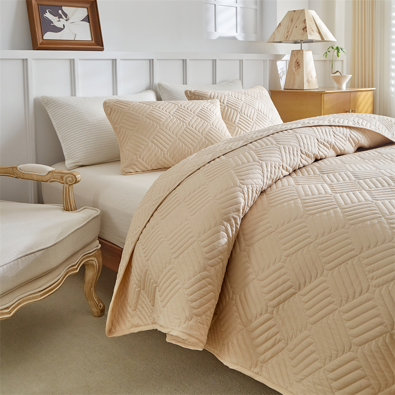 2025新款田字格床盖三件套 国外薄被 田字格-米色