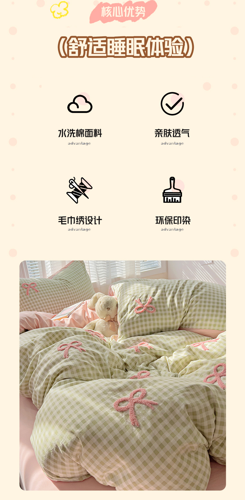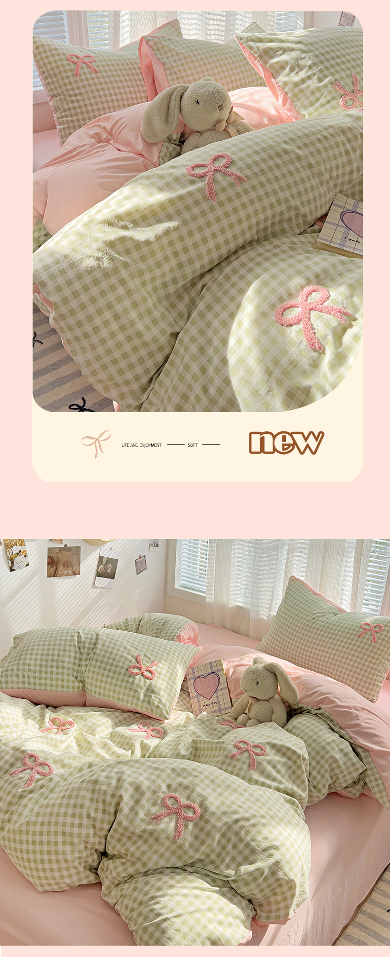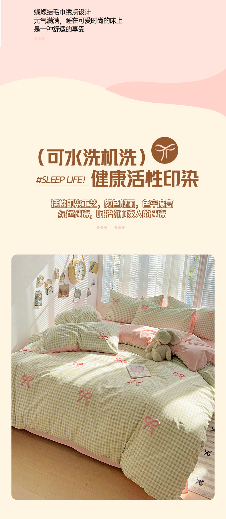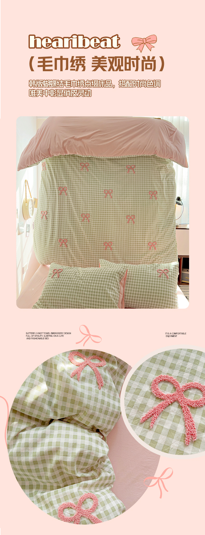 当前位置: 91家纺网 > 商品网购 > 床品套件 > 四件套 > 毛巾绣四件套 > 灰鲸2025新款ins韩系软妹风蝴蝶结毛巾绣四件套 蝴蝶结(绿格+樱花粉)