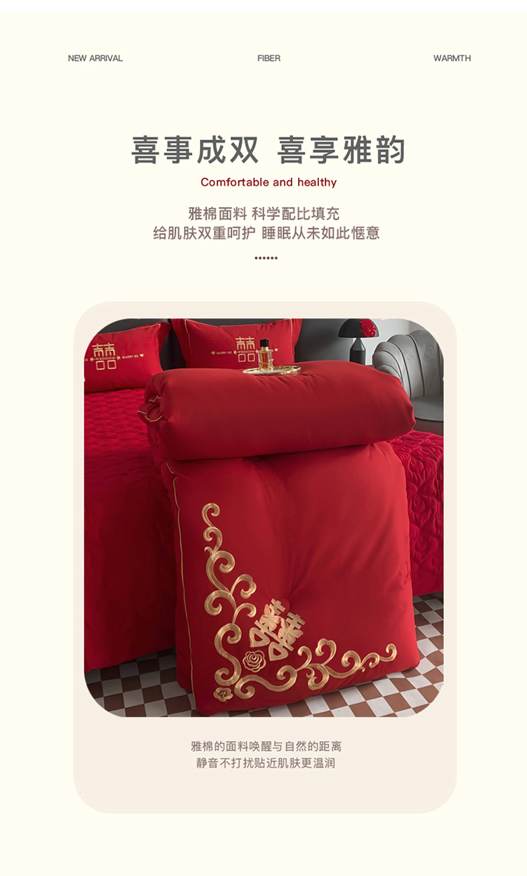 商品名称:甜咪咪婚庆 2025 新款居家婚庆刺绣结婚 春秋冬婚庆喜被 喜