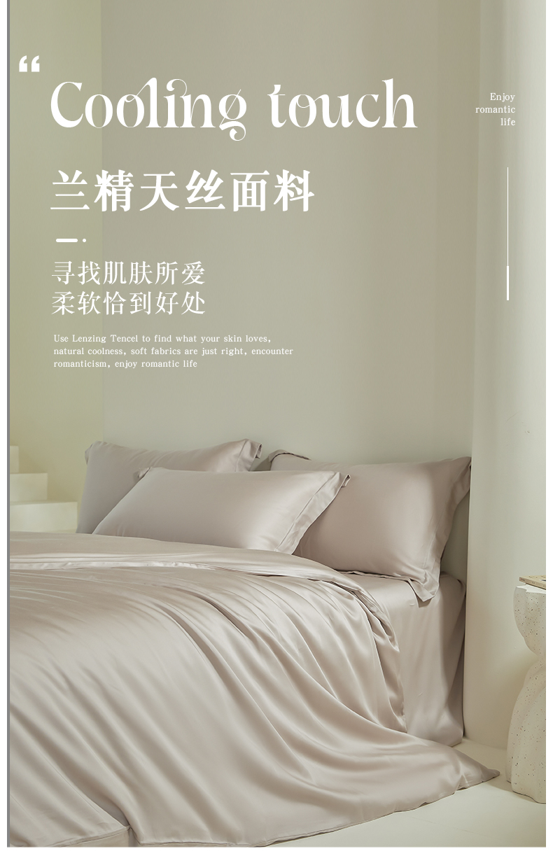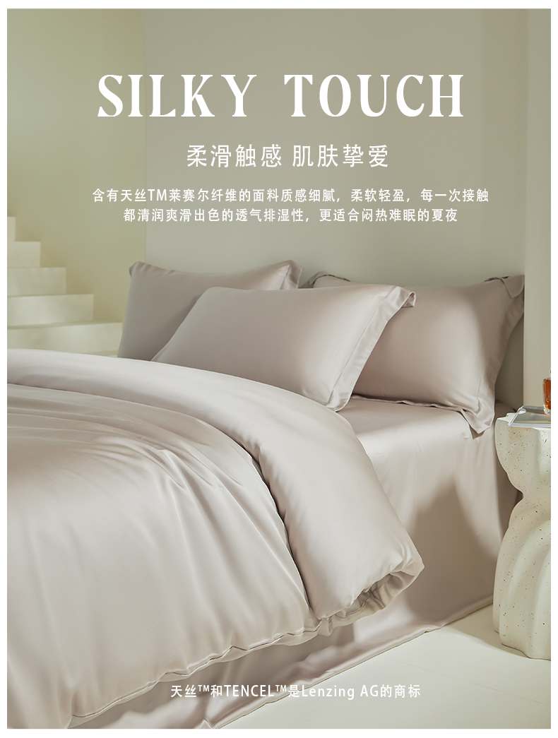 商品名称:618家纺 2025新款60S100支兰精天丝单品-单被套 天丝椰子灰