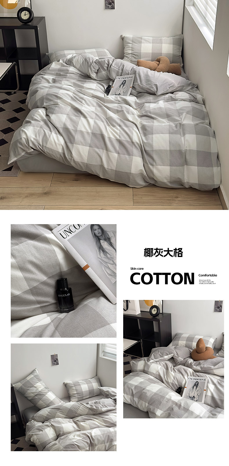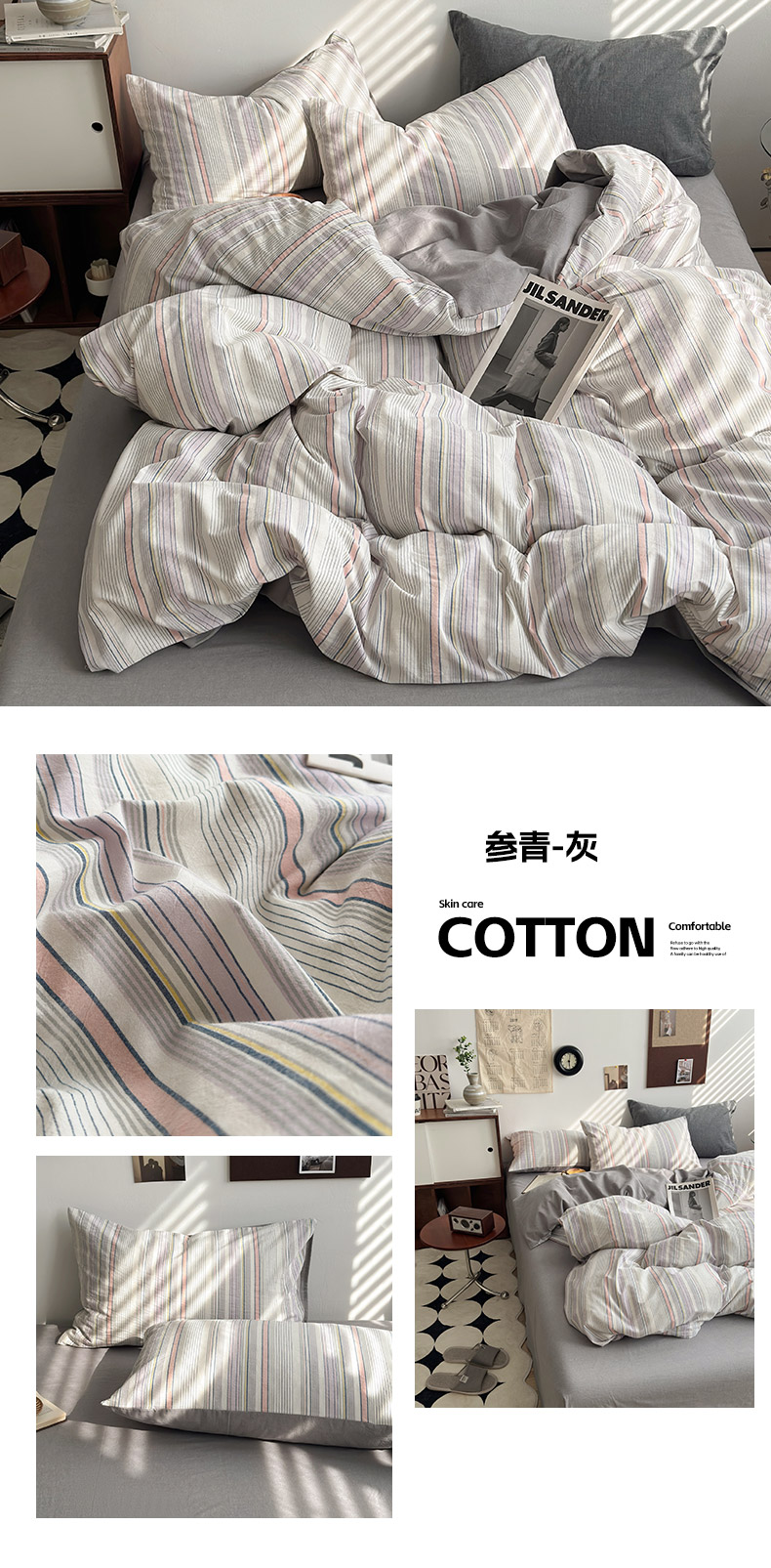 当前位置: 91家纺网 > 商品网购 > 床品套件 > 四件套 > 色织四件套 > 水洗的故事2025新款A类AB版全棉色织水洗棉四件套 参青-灰