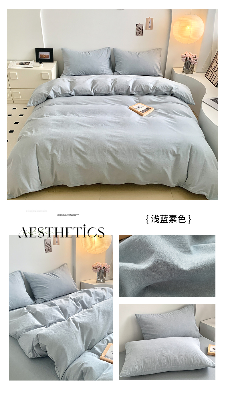 当前位置: 91家纺网 > 商品网购 > 床品套件 > 四件套 > 色织四件套 > 水洗的故事 2025新款色织水洗棉多巴胺纯色款四件套 湖绿