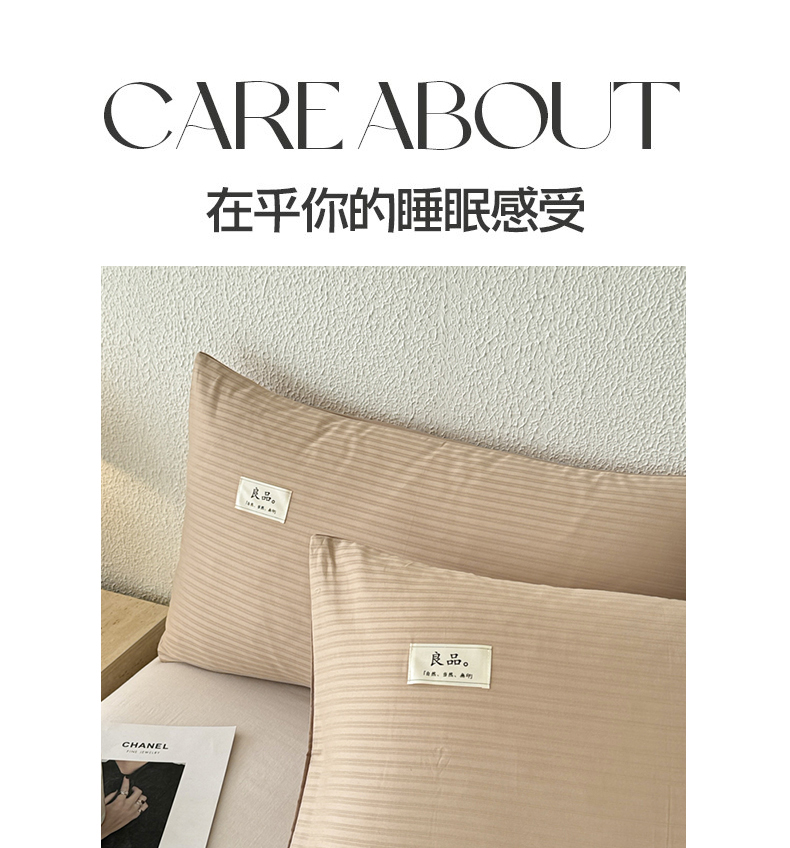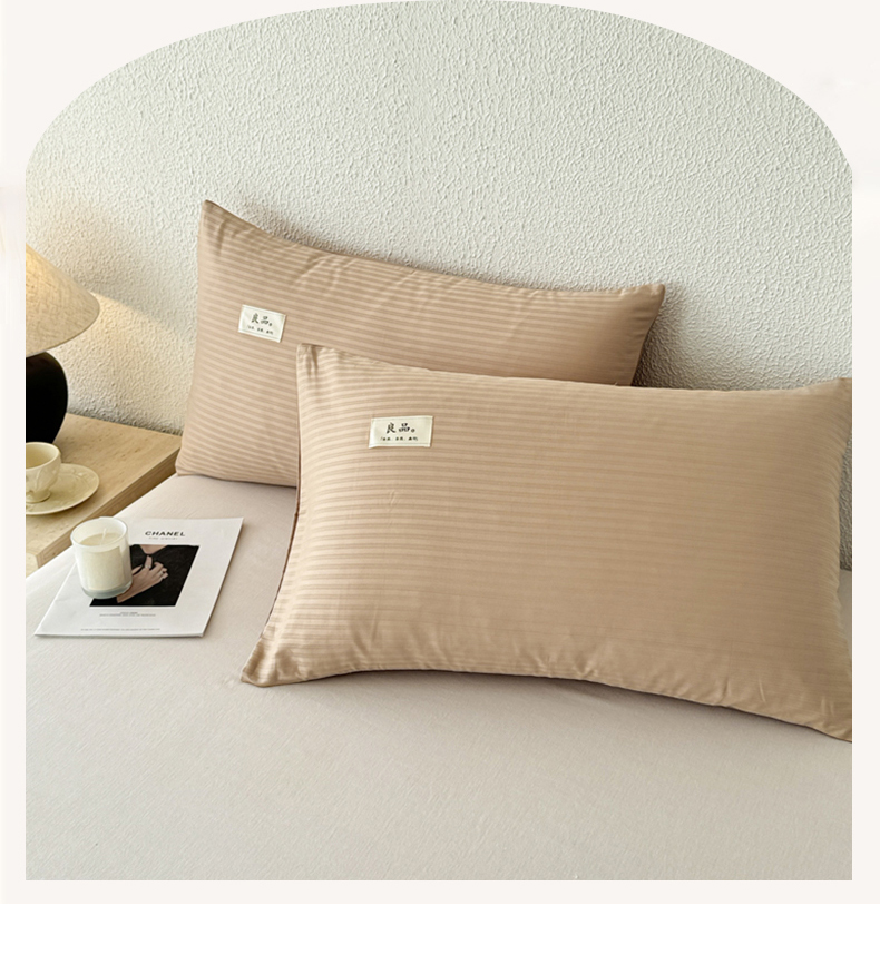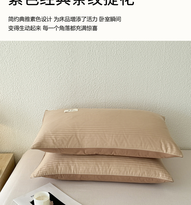 商品名称:眠博士 2025新款高支高密60支全棉条纹提花单枕套 枕套-提花雅咖