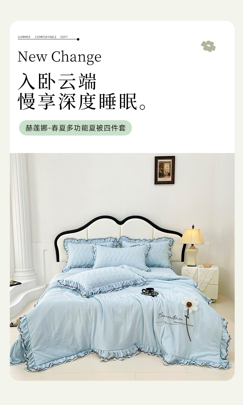 金绣美居 2025春夏韩版被套床盖款多功能夏被四件套-赫莲娜(控价不低于149) 天空蓝