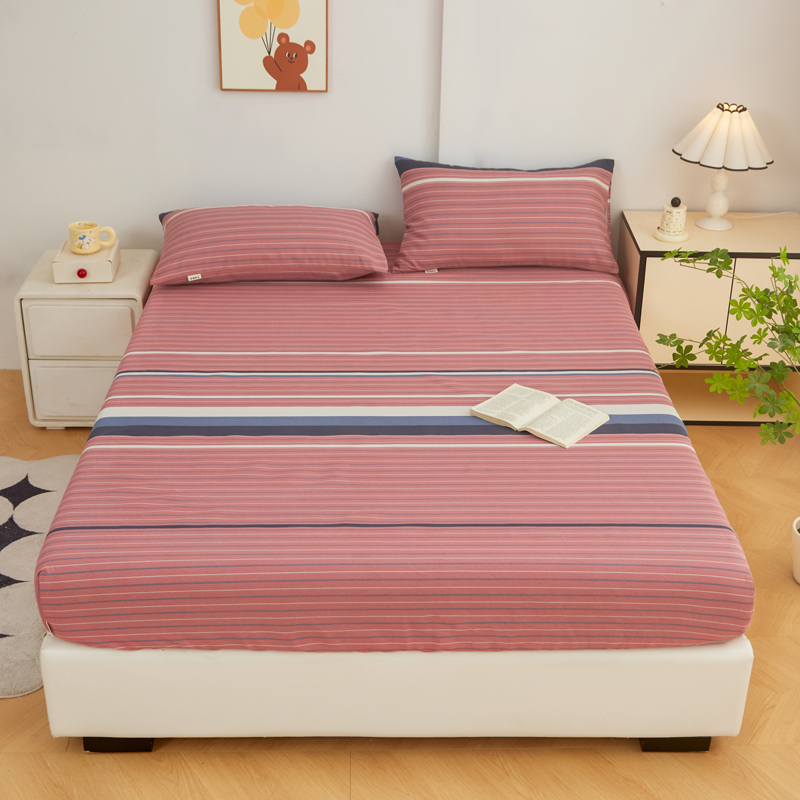 • 91家纺网 家纺一手货源 找家纺 首爱家纺 2025新款锦柔老粗布印花床笠 粉色云涧