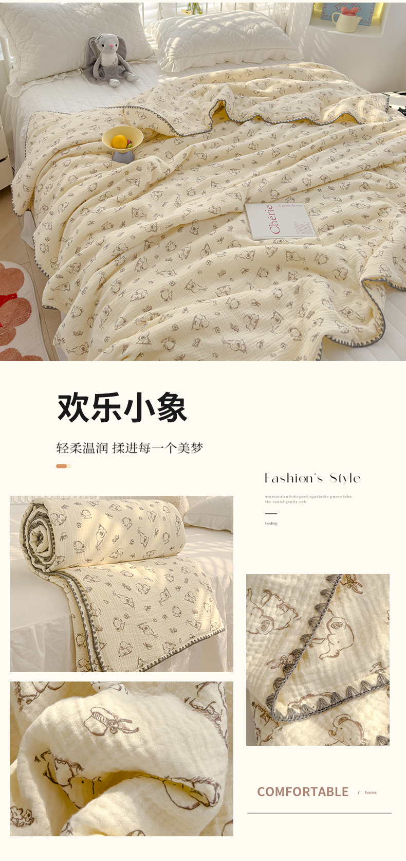商品名称:芯恋 2025新款母婴级全棉皱皱纱儿童被双层纱夏被 欢乐小象