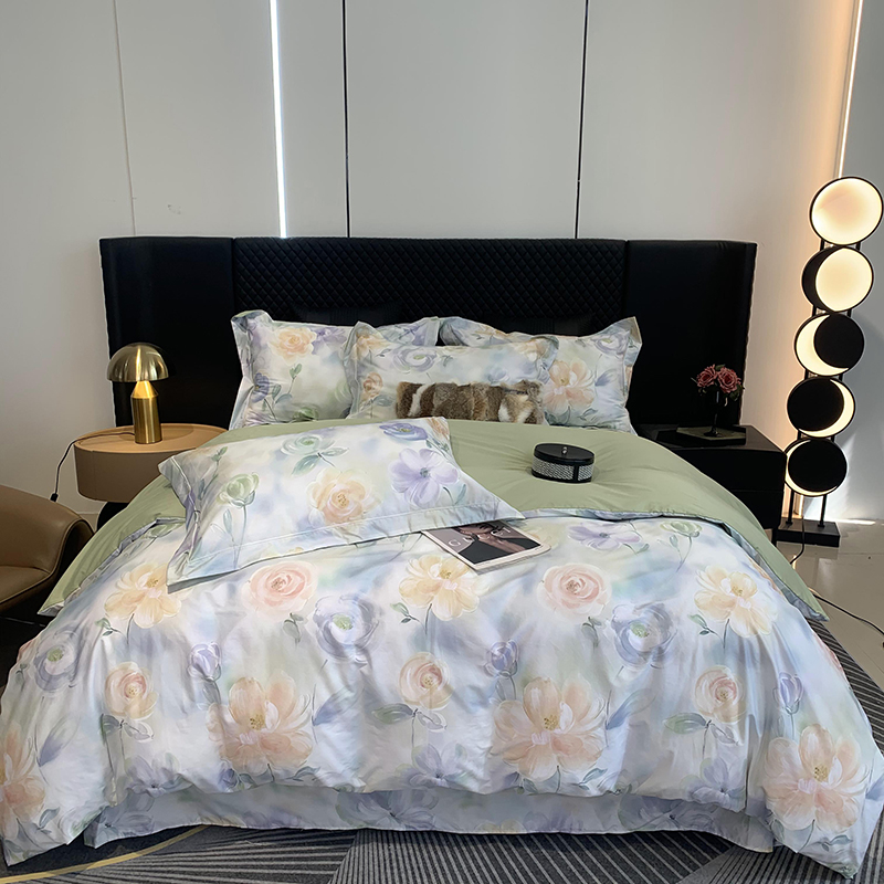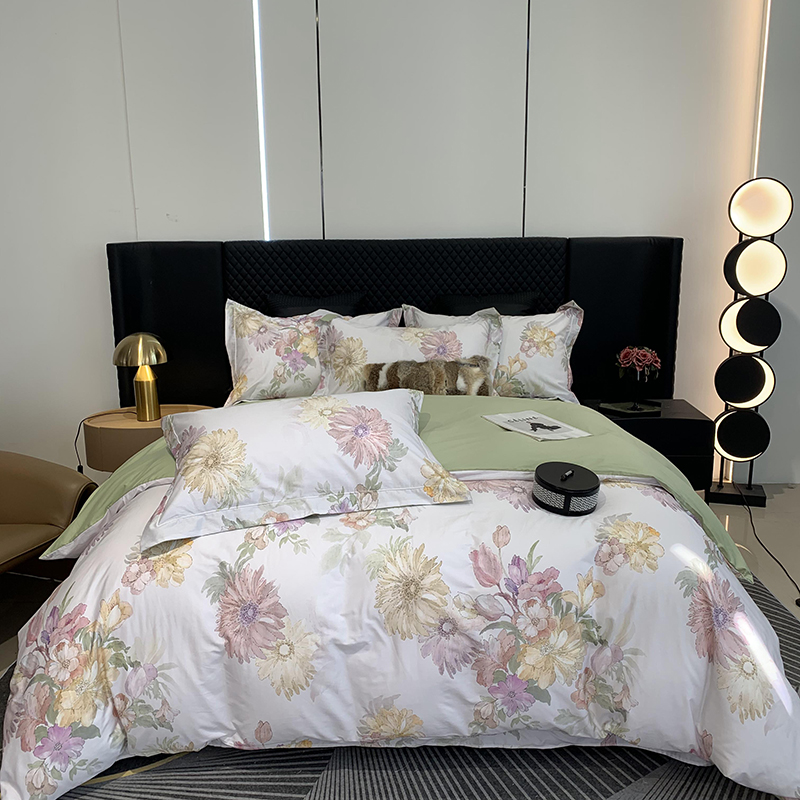 莱豫家纺 2025新款50支长绒棉数码印花四件套 花田暖玉