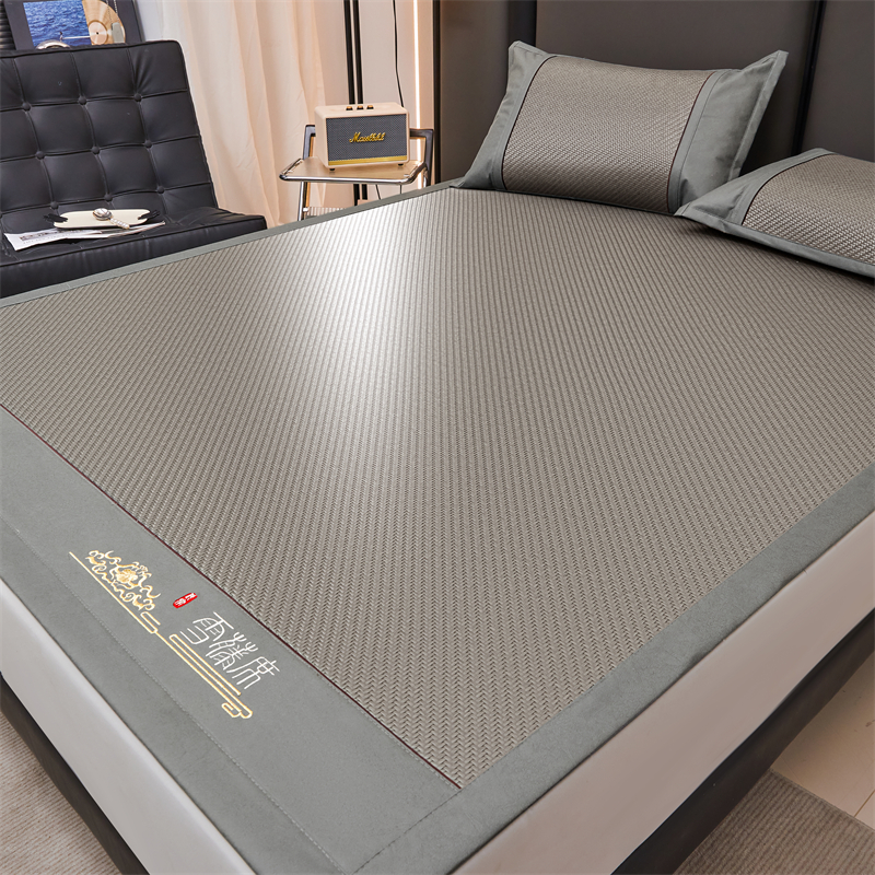 (总)能好家纺 2025新款三明治冰藤席凉席小米花系列,灰色,金色,绿色