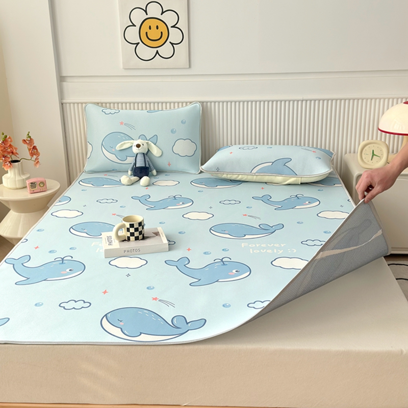 柏薇 2025新款三明治网眼印花凉席套件 鲸鱼宝宝