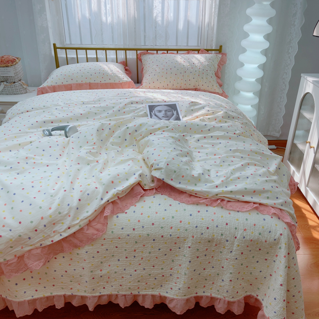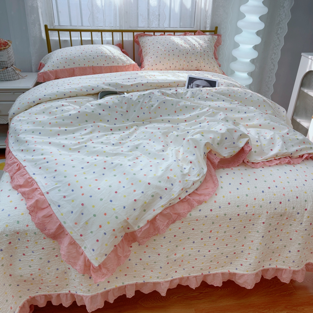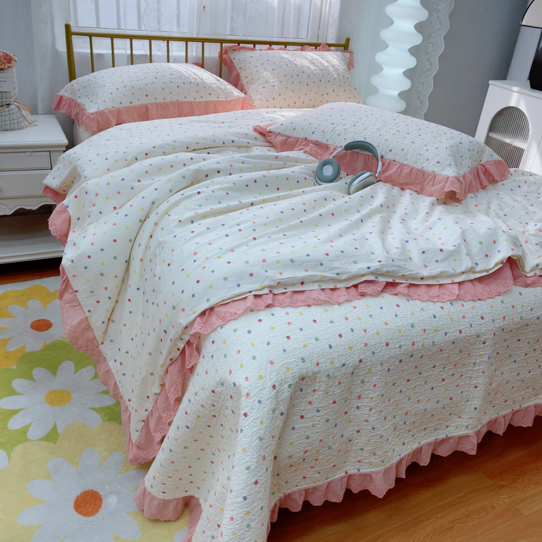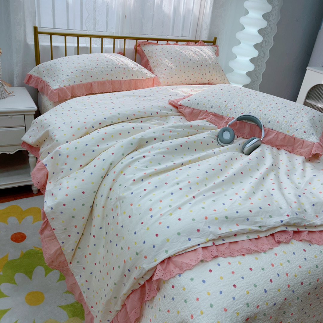 商品名称:暖居 2025春夏款高温砂洗棉花床盖三件套被套四件套同款纯棉夏被空调被四季 彩色波点