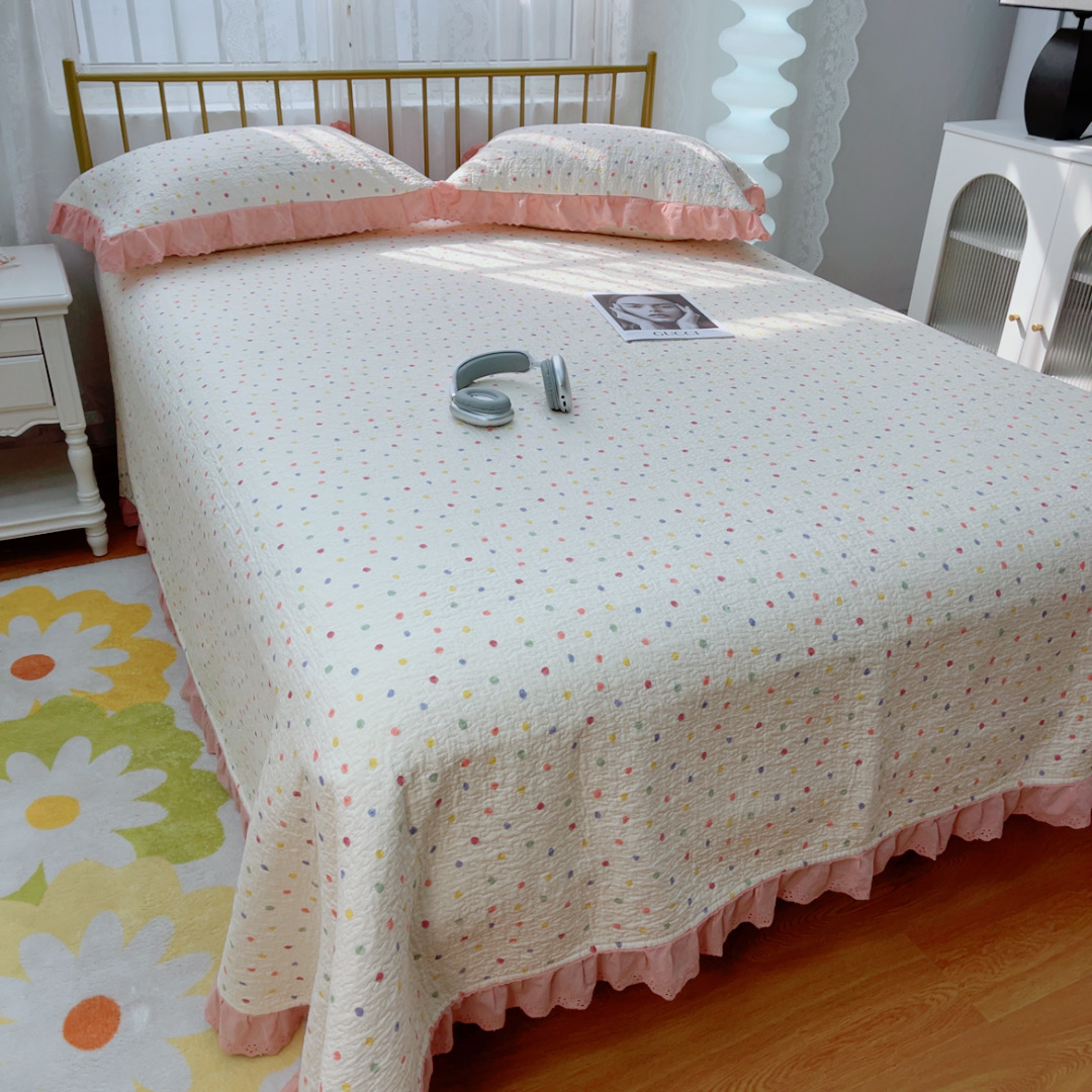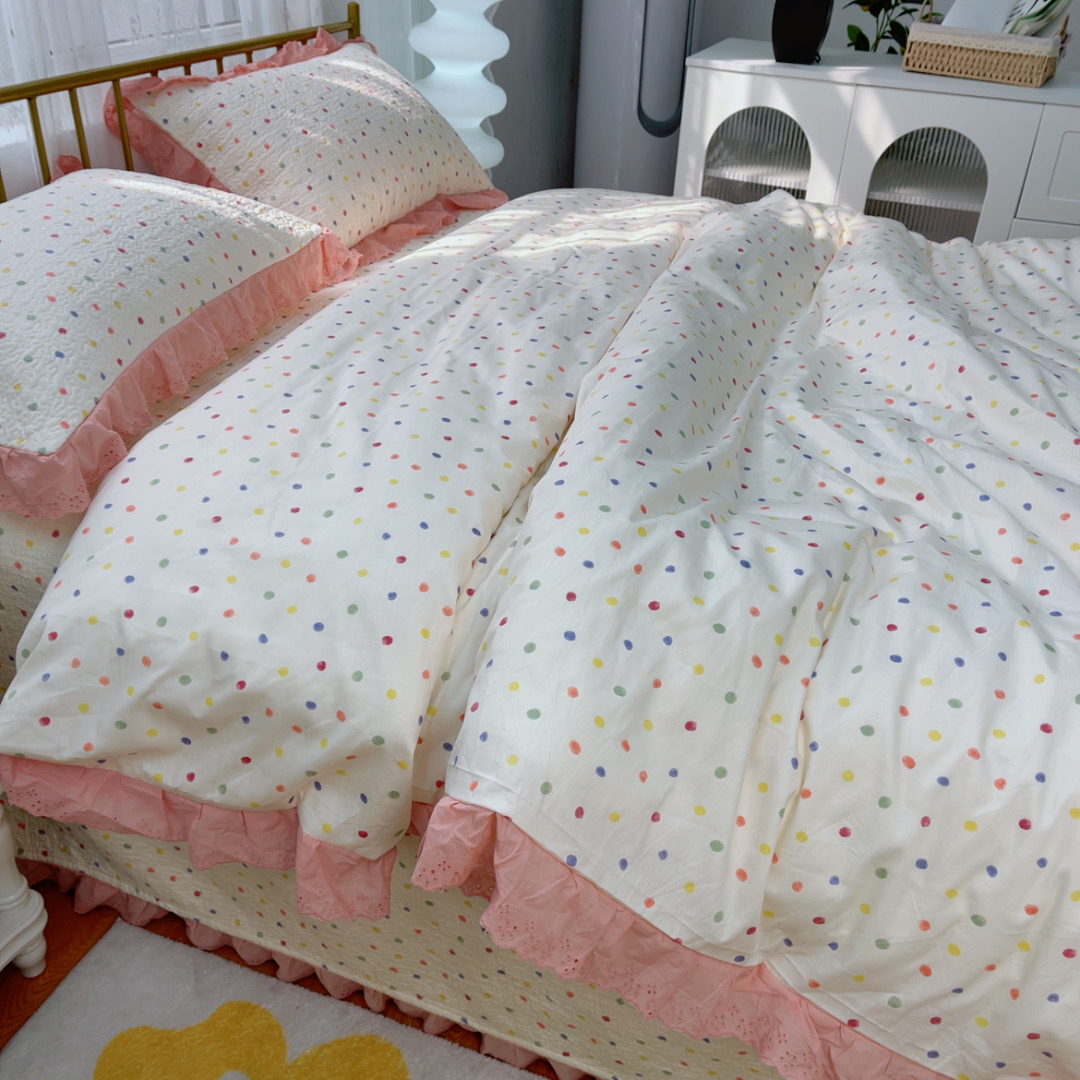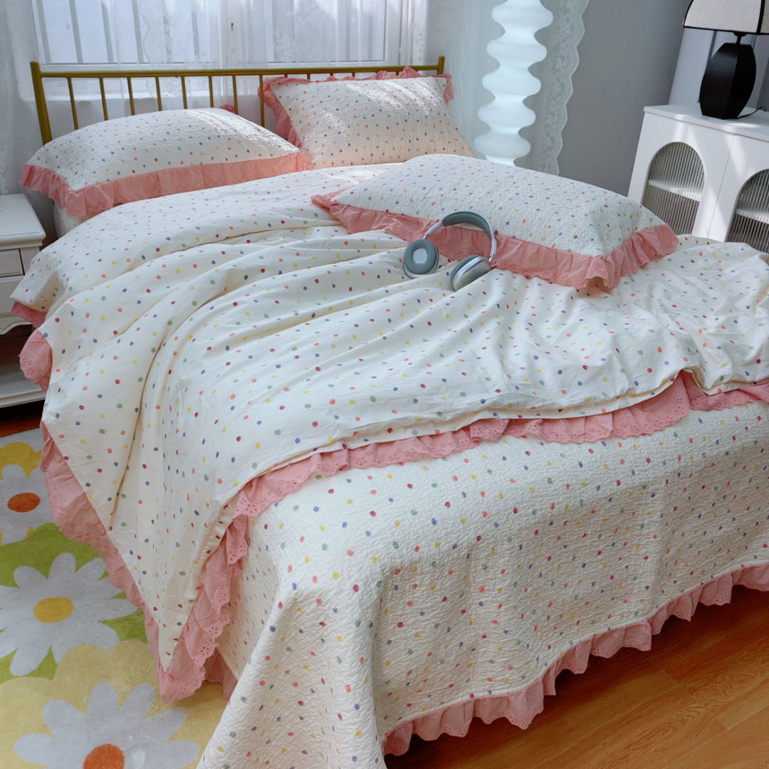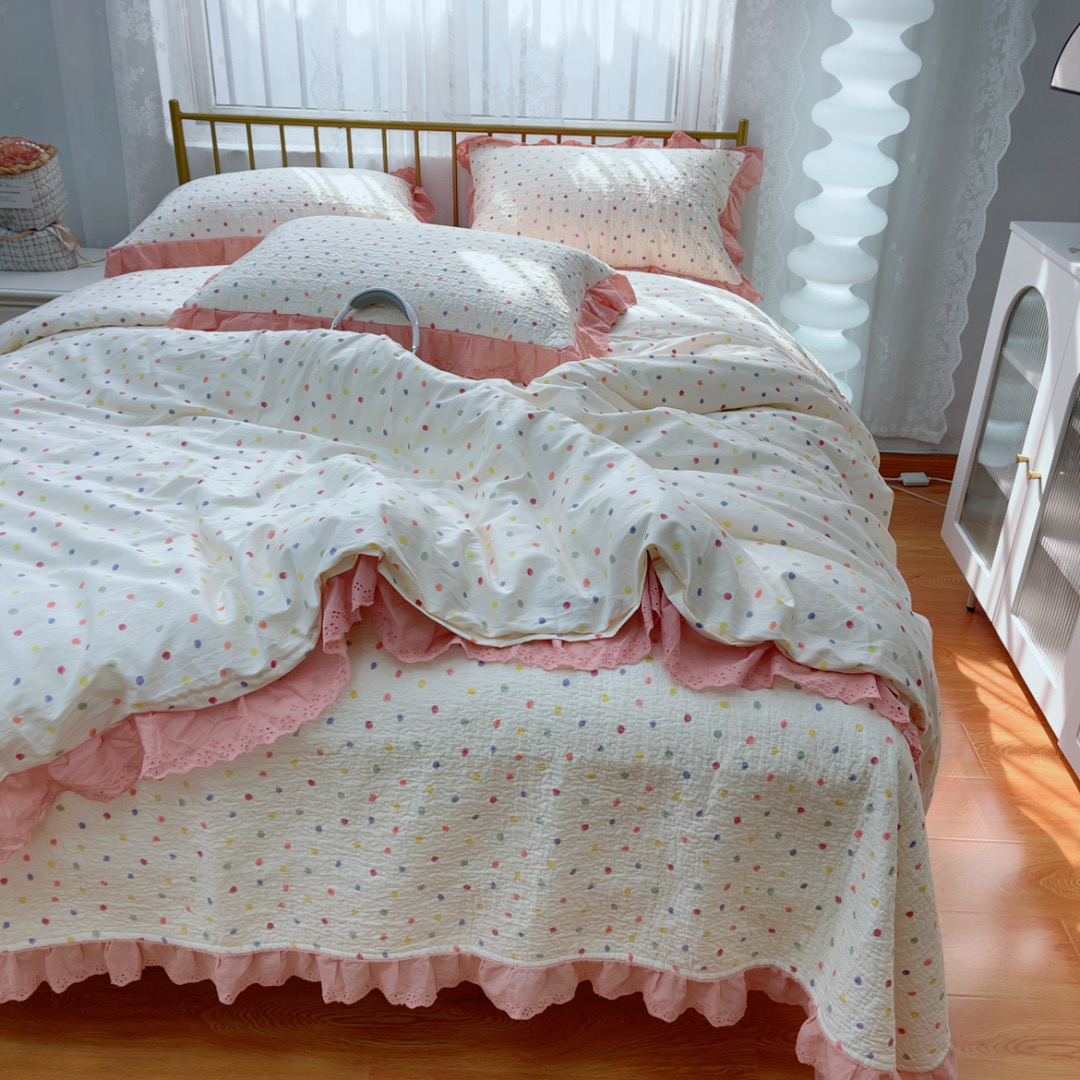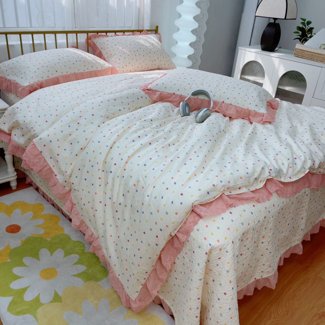 商品名称:暖居 2025春夏款高温砂洗棉花床盖三件套被套四件套同款纯棉夏被空调被四季 彩色波点