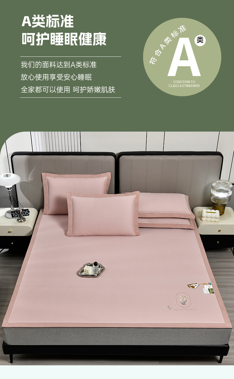 (总)2023新款超精密冰丝席-小斜纹系列-床笠款藤席凉席竹席,粉色,蓝色,绿色,银灰