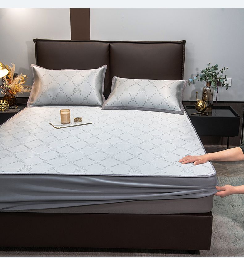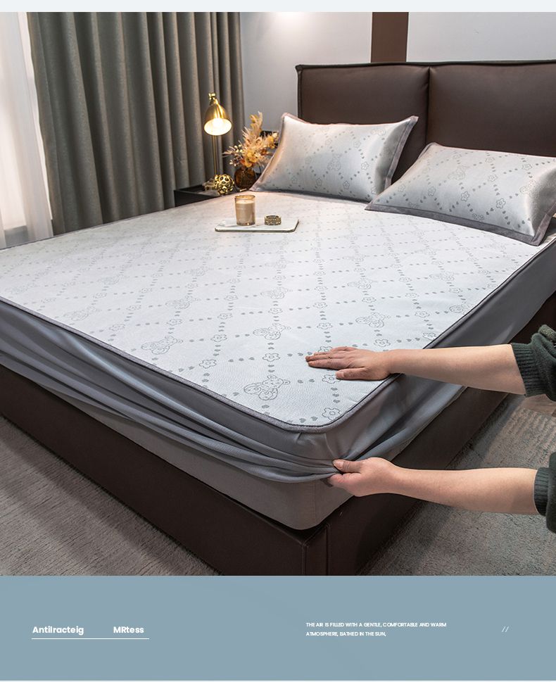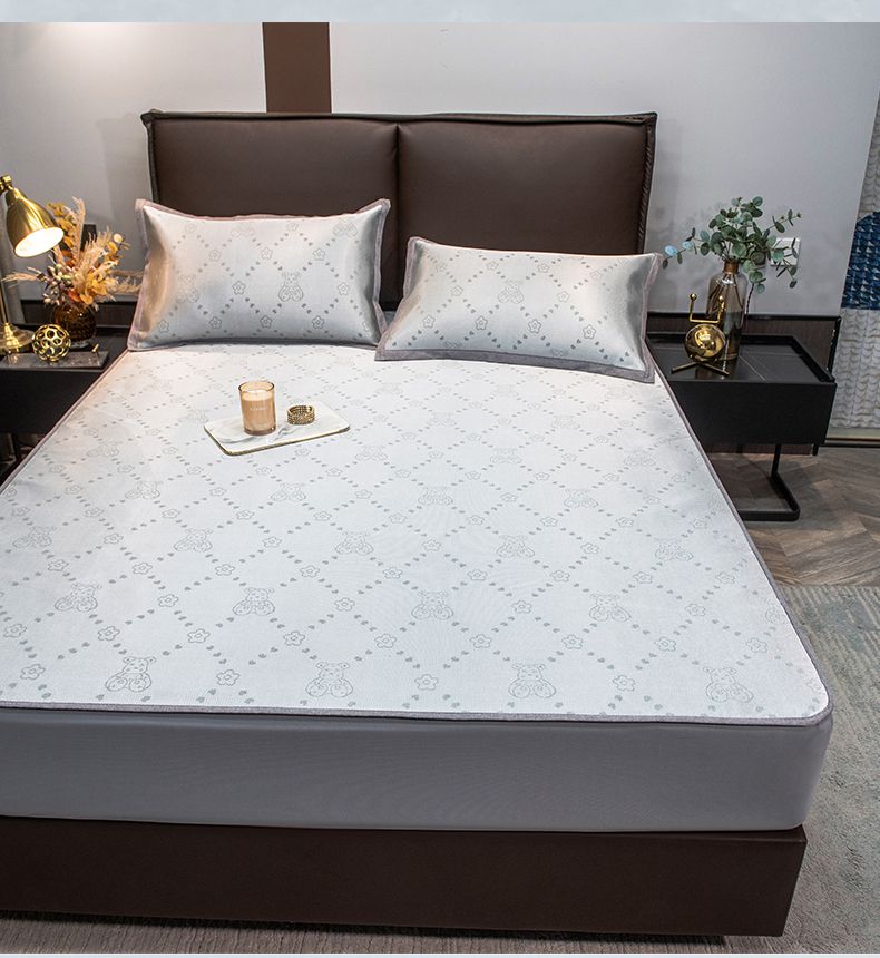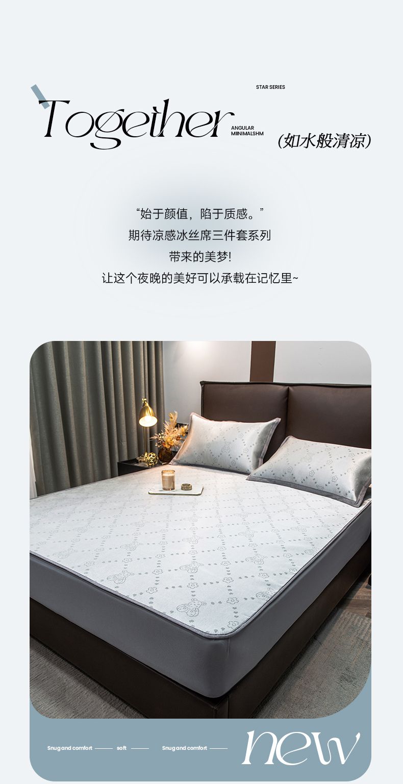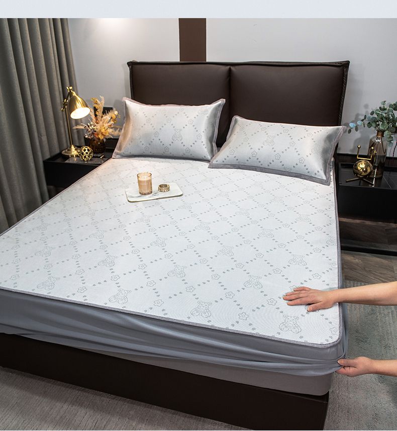 摩妮卡 2025新款高精密粗冰丝席床笠款三件套 贝贝熊-暮云灰