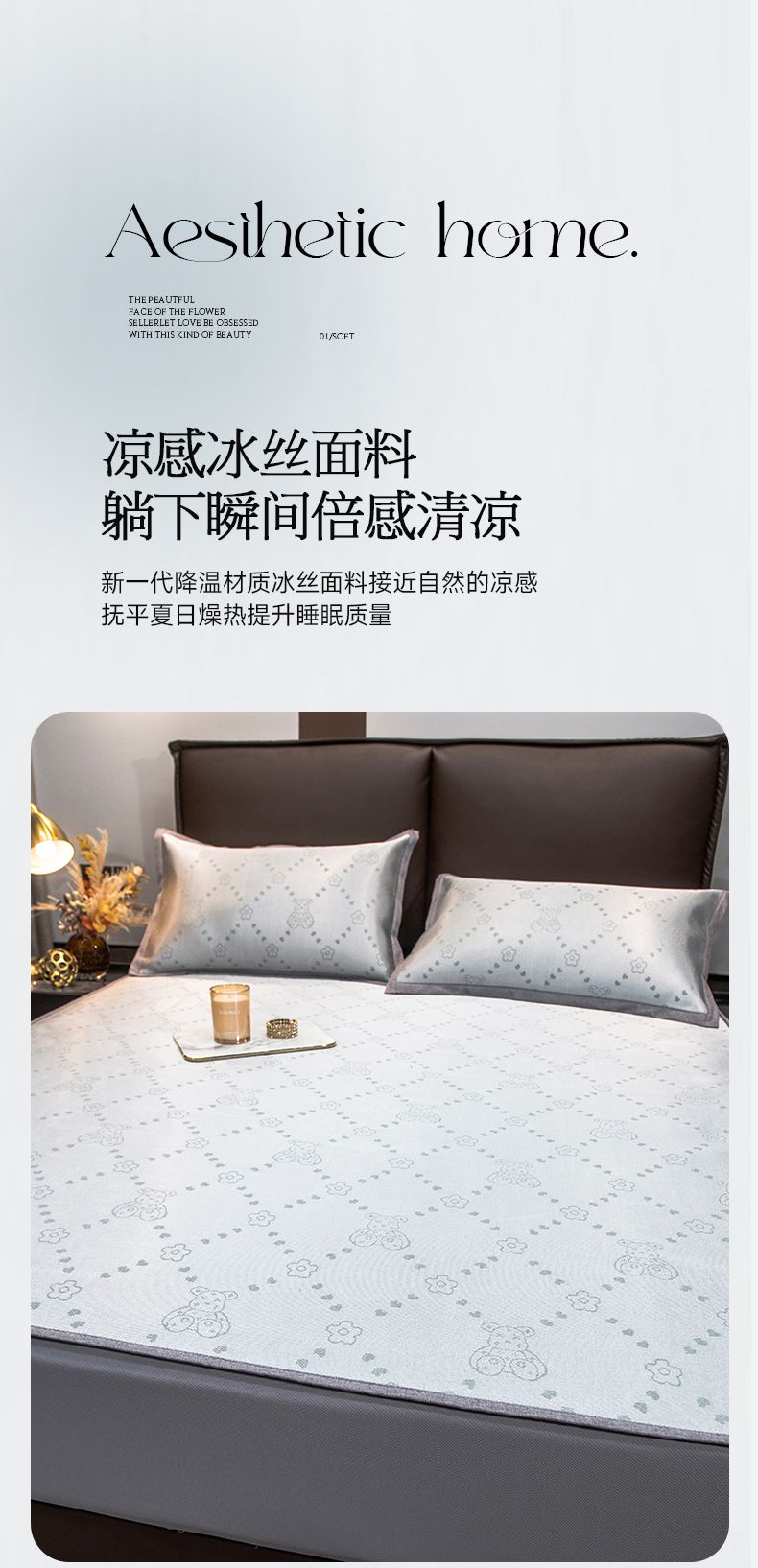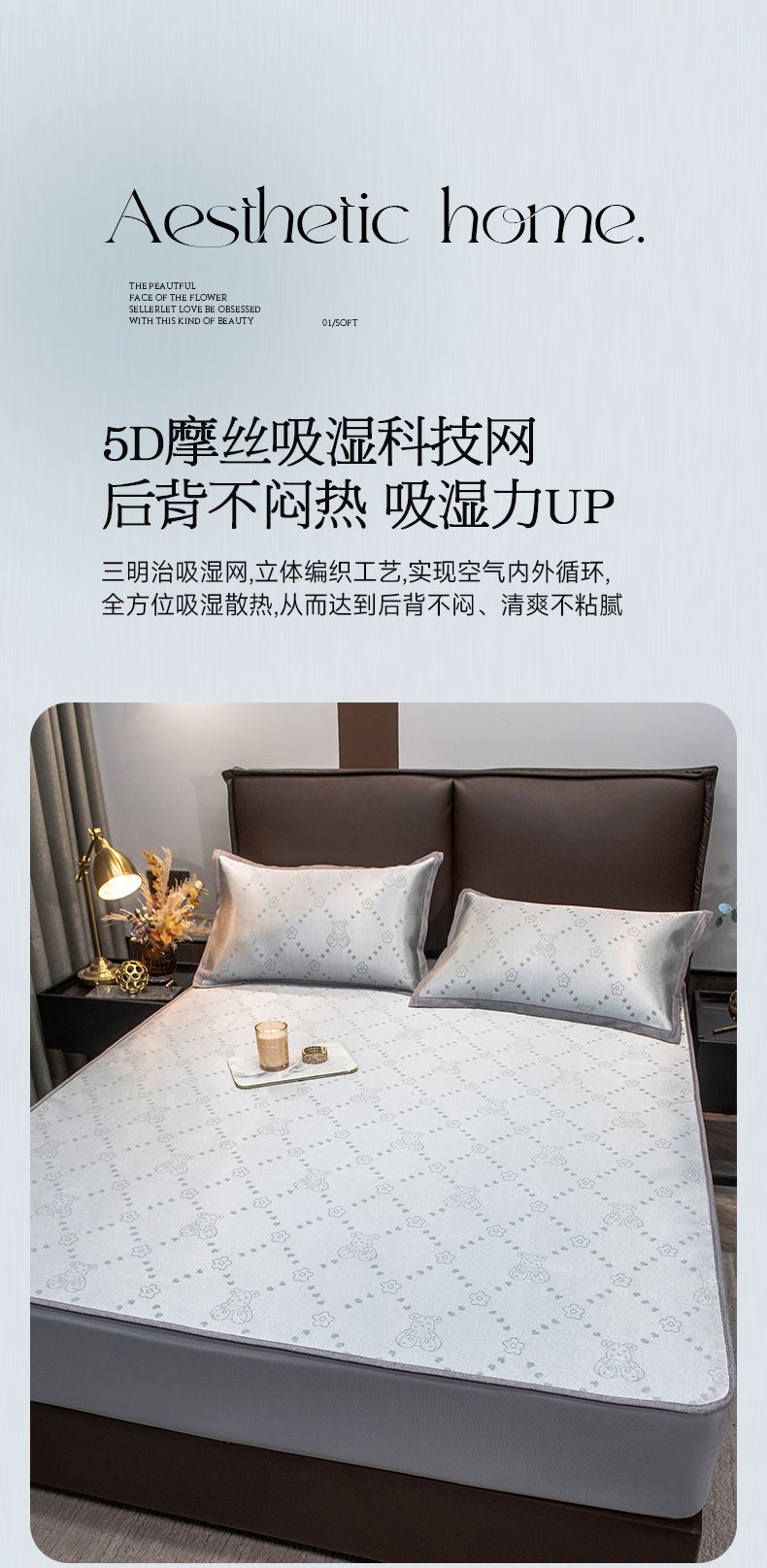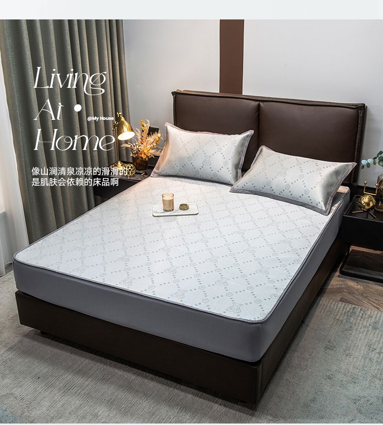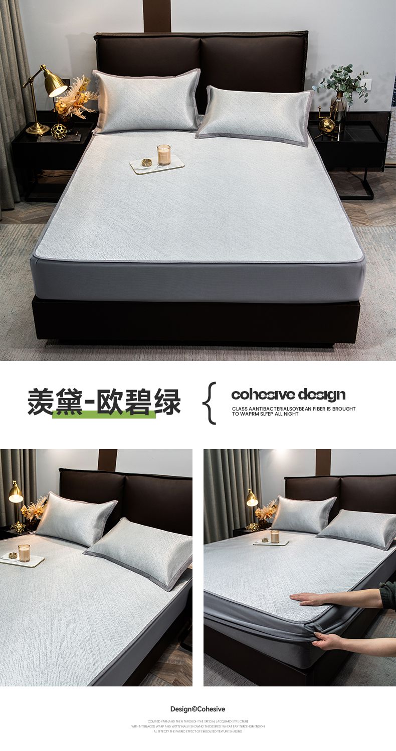 摩妮卡 2025新款高精密粗冰丝席床笠款三件套 贝贝熊-暮云灰