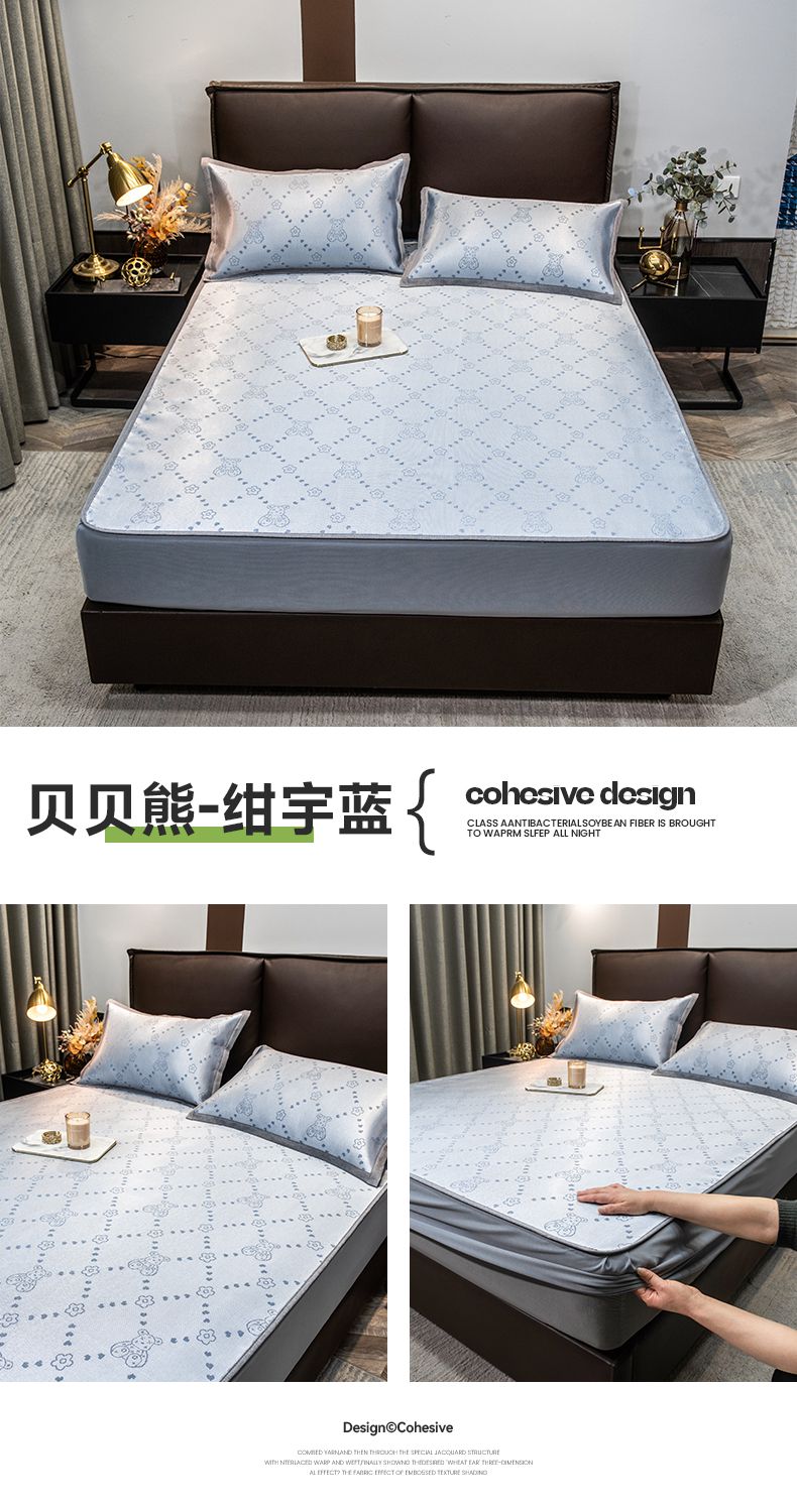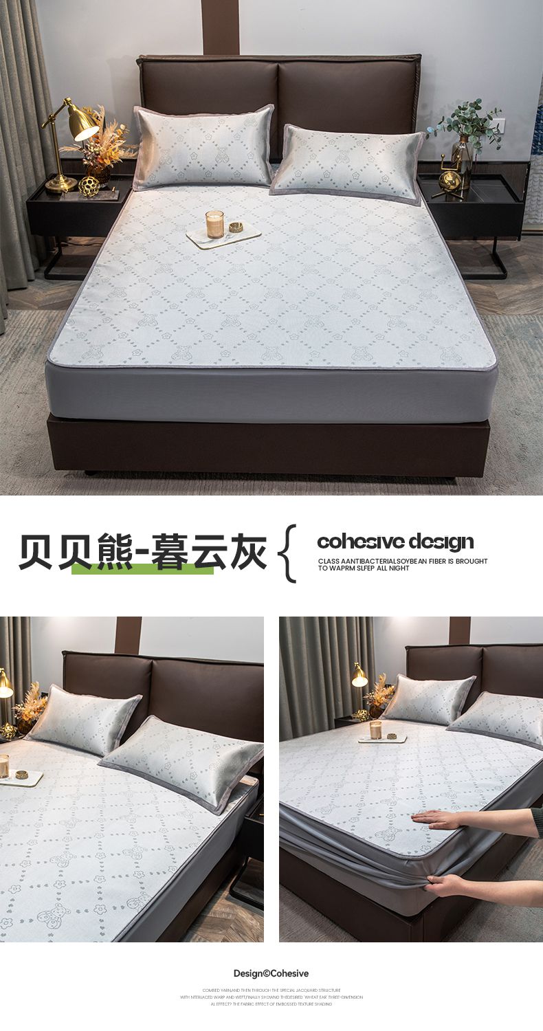 商品名称:摩妮卡 2025新款高精密粗冰丝席床笠款三件套 贝贝熊-暮云灰