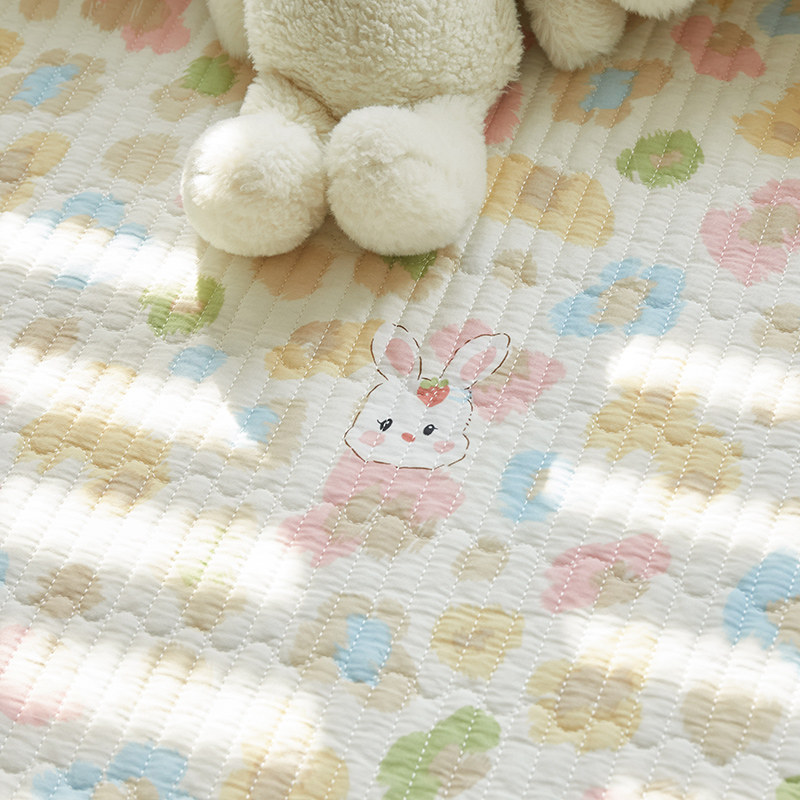 商品名称:舒居家纺 2025新款双面全棉酵素砂洗床盖 迷彩花兔