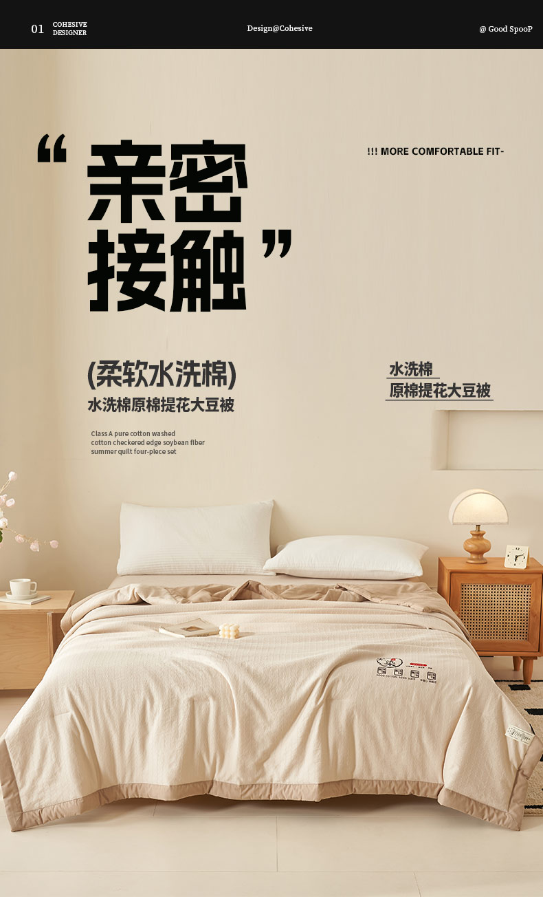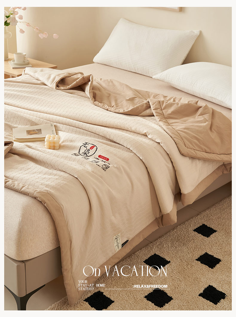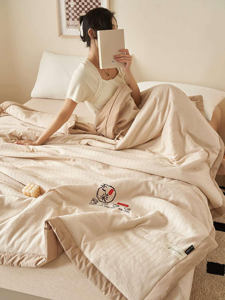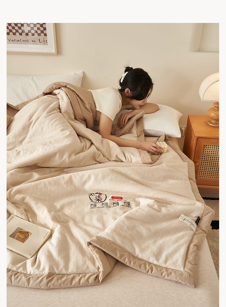 商品名称:子由家居 2025新款水洗棉原棉提花大豆夏被被子被芯 原棉-驼色