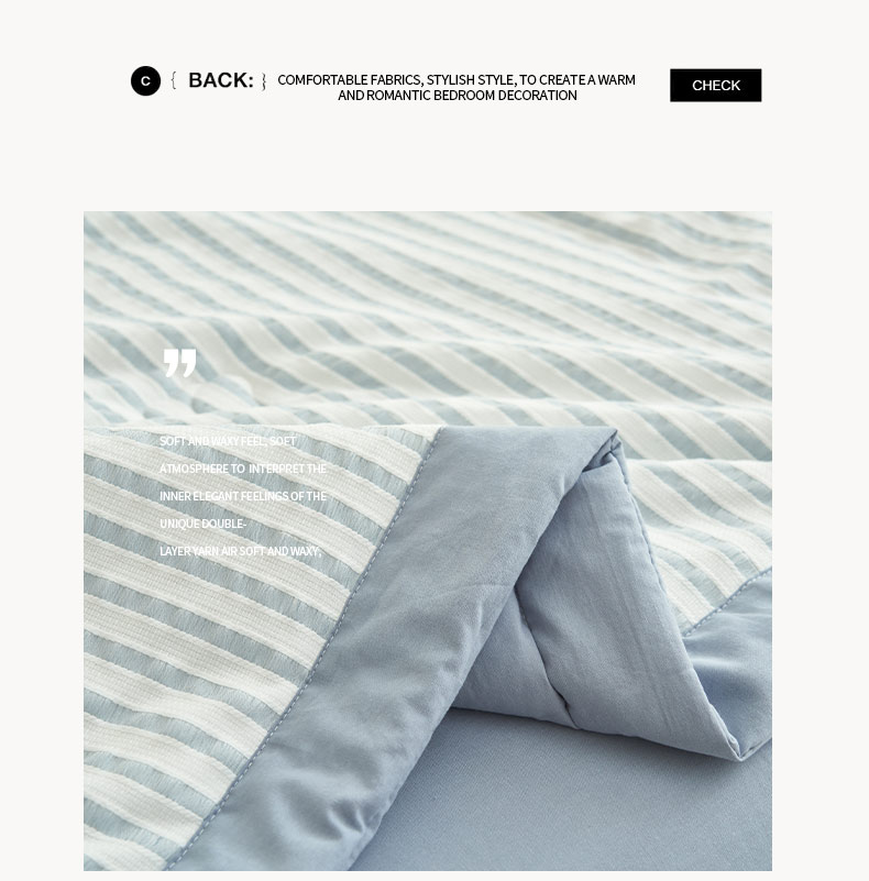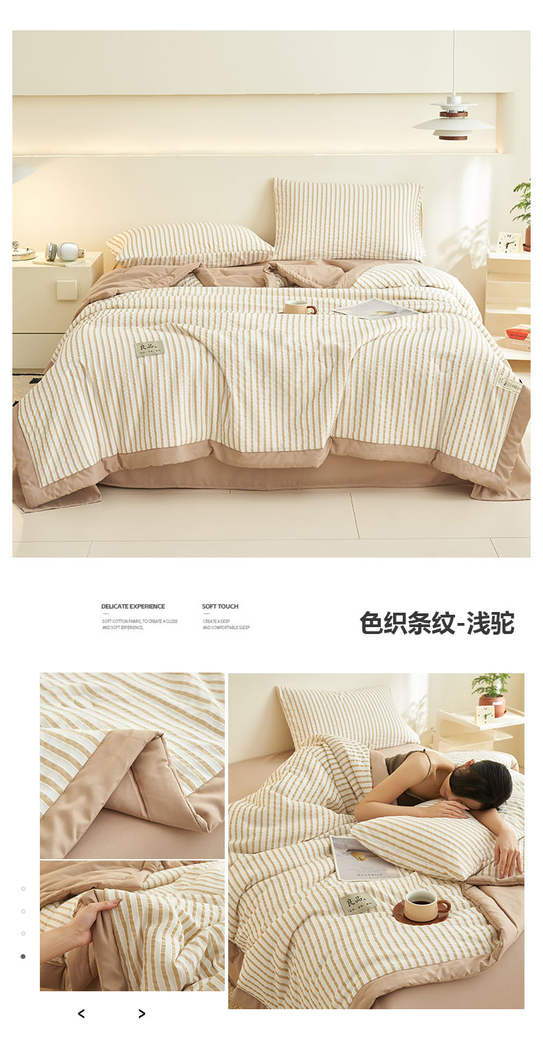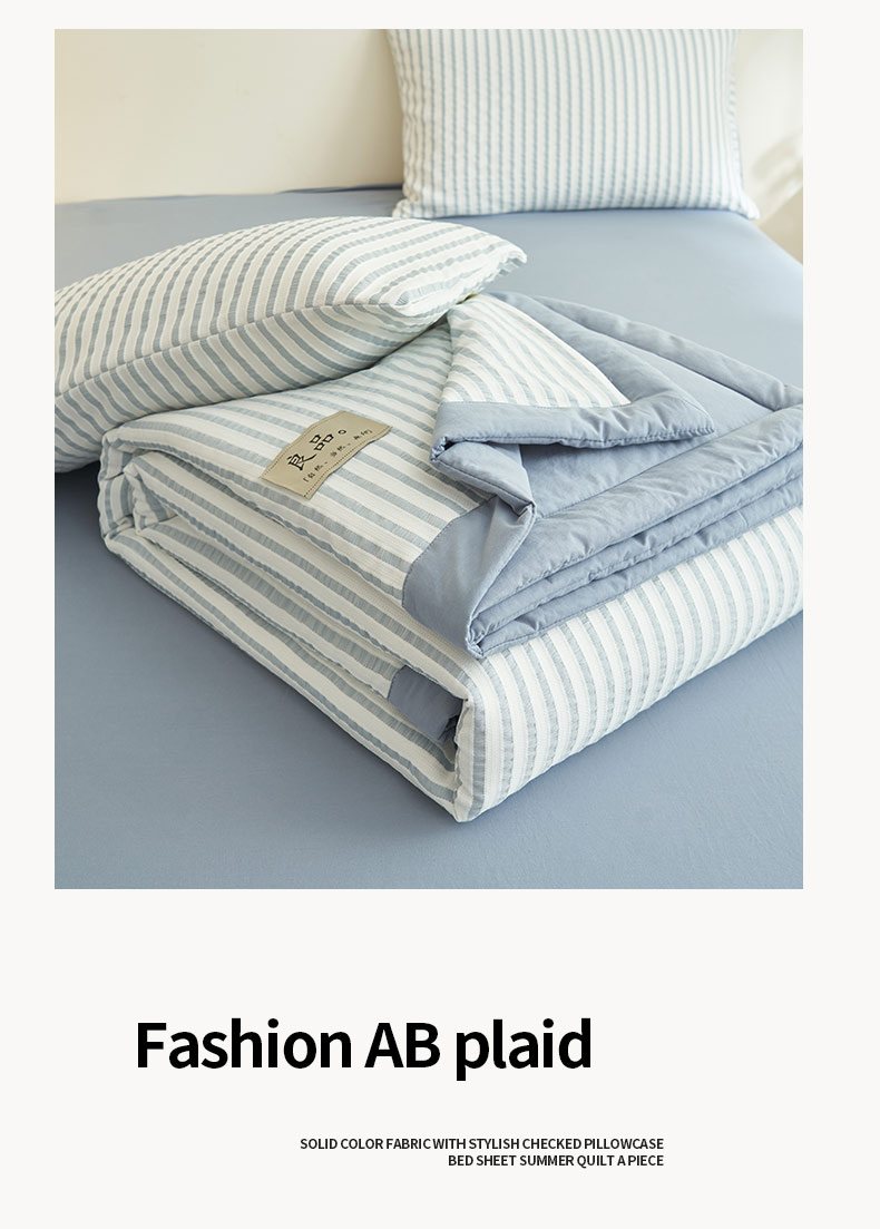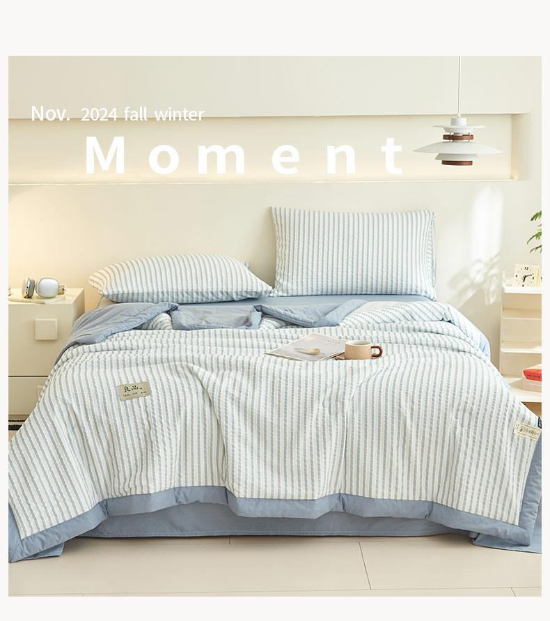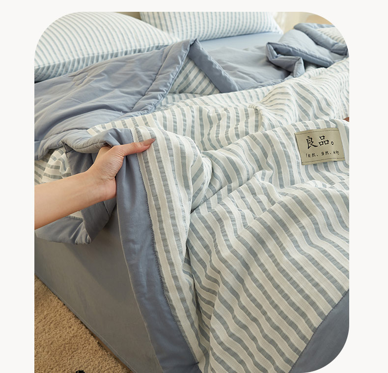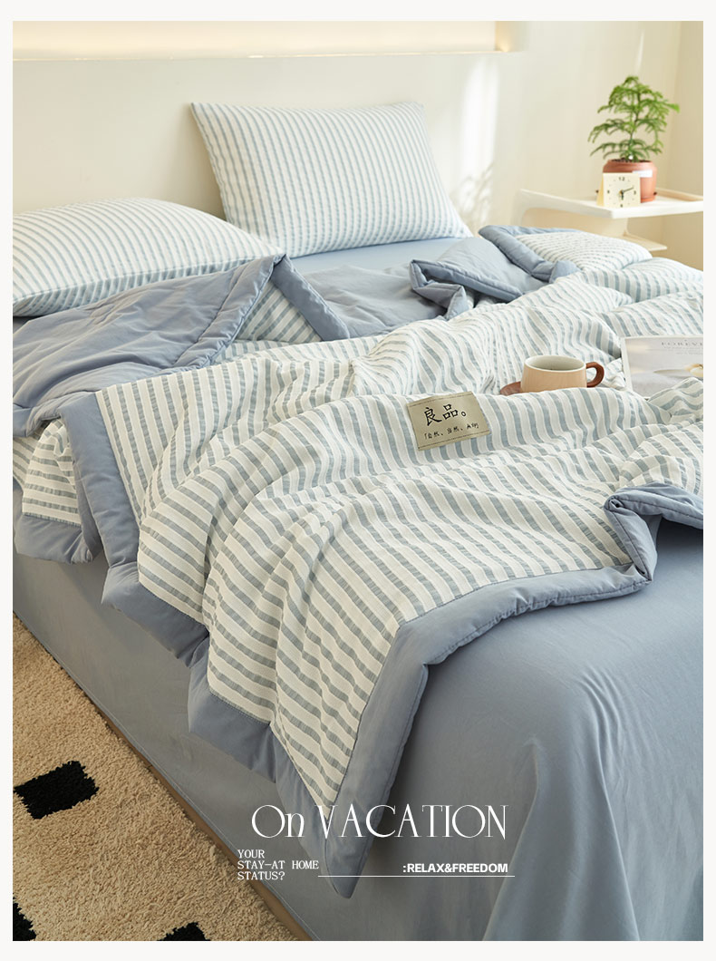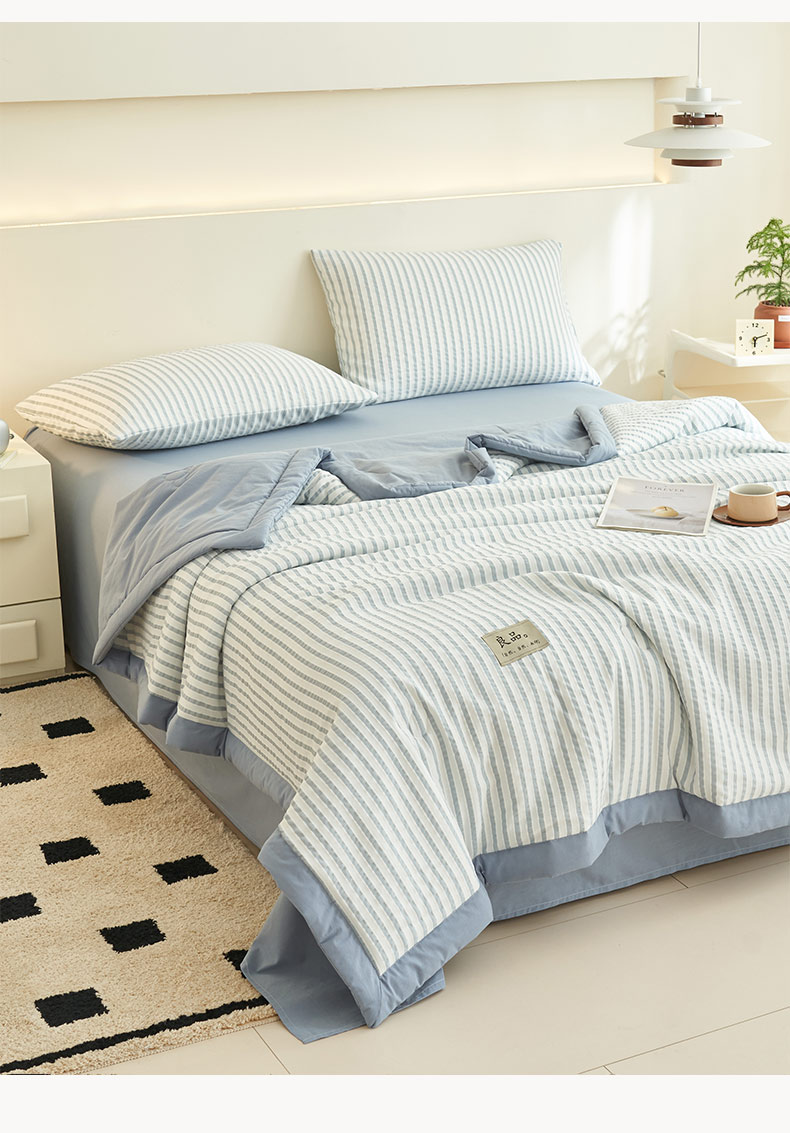 • 91家纺网 家纺一手货源 找家纺 子由家居 2025新款色织条纹提花大豆夏被四件套 色织条纹-浅蓝